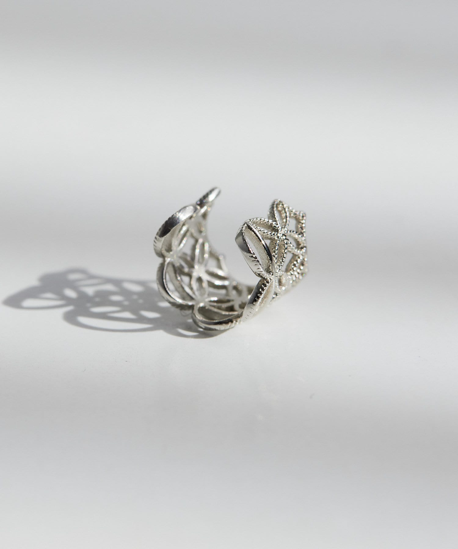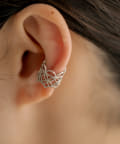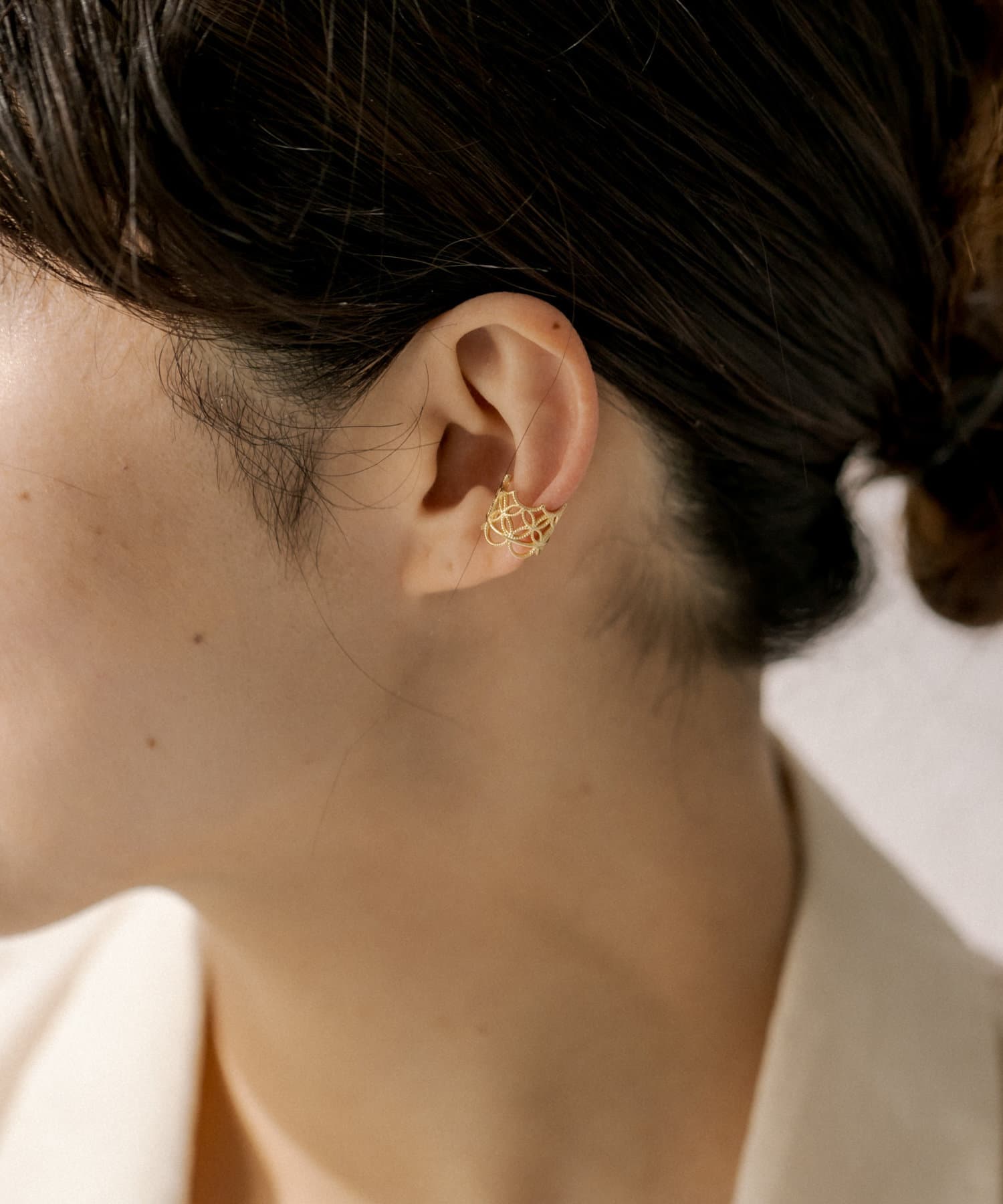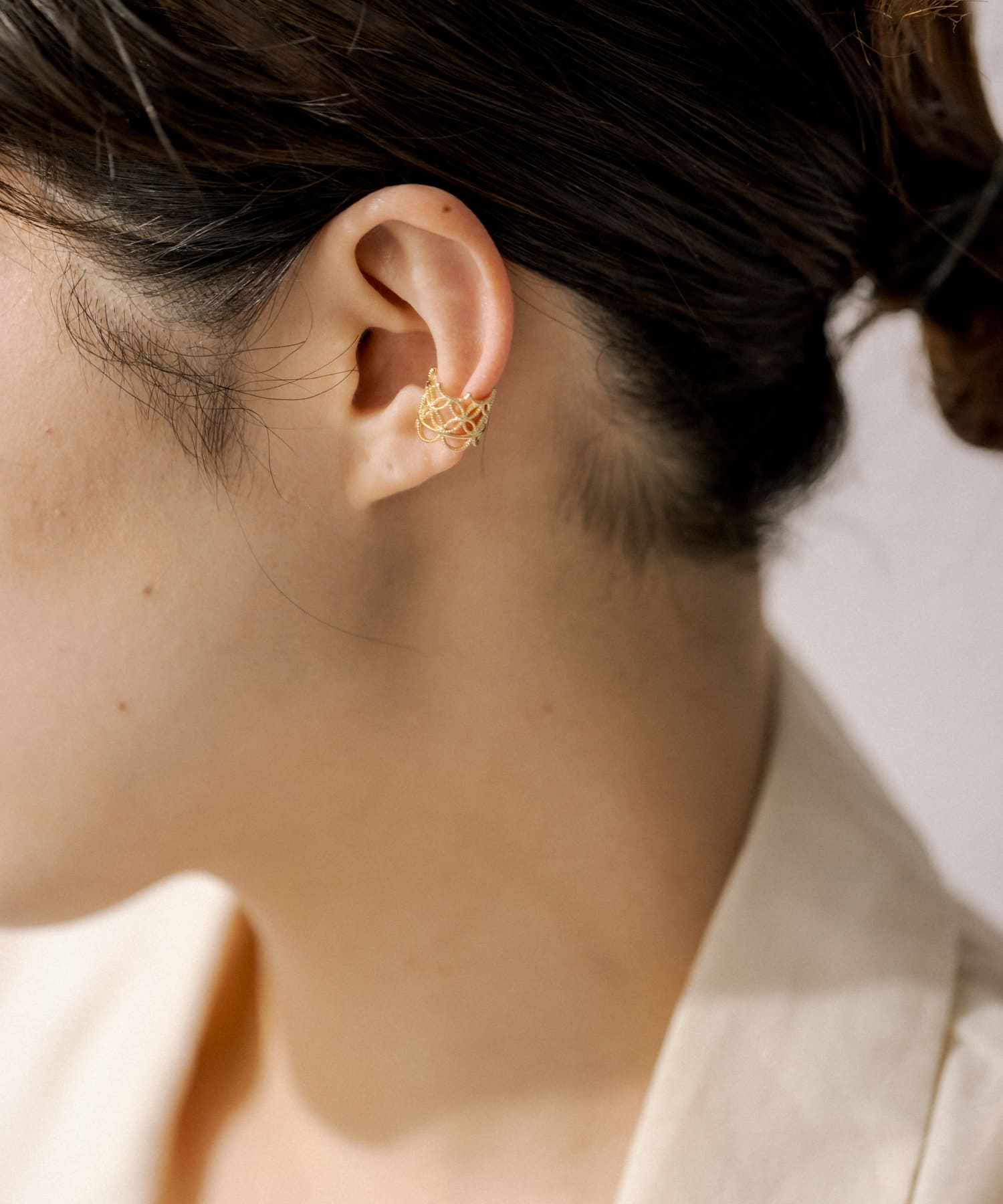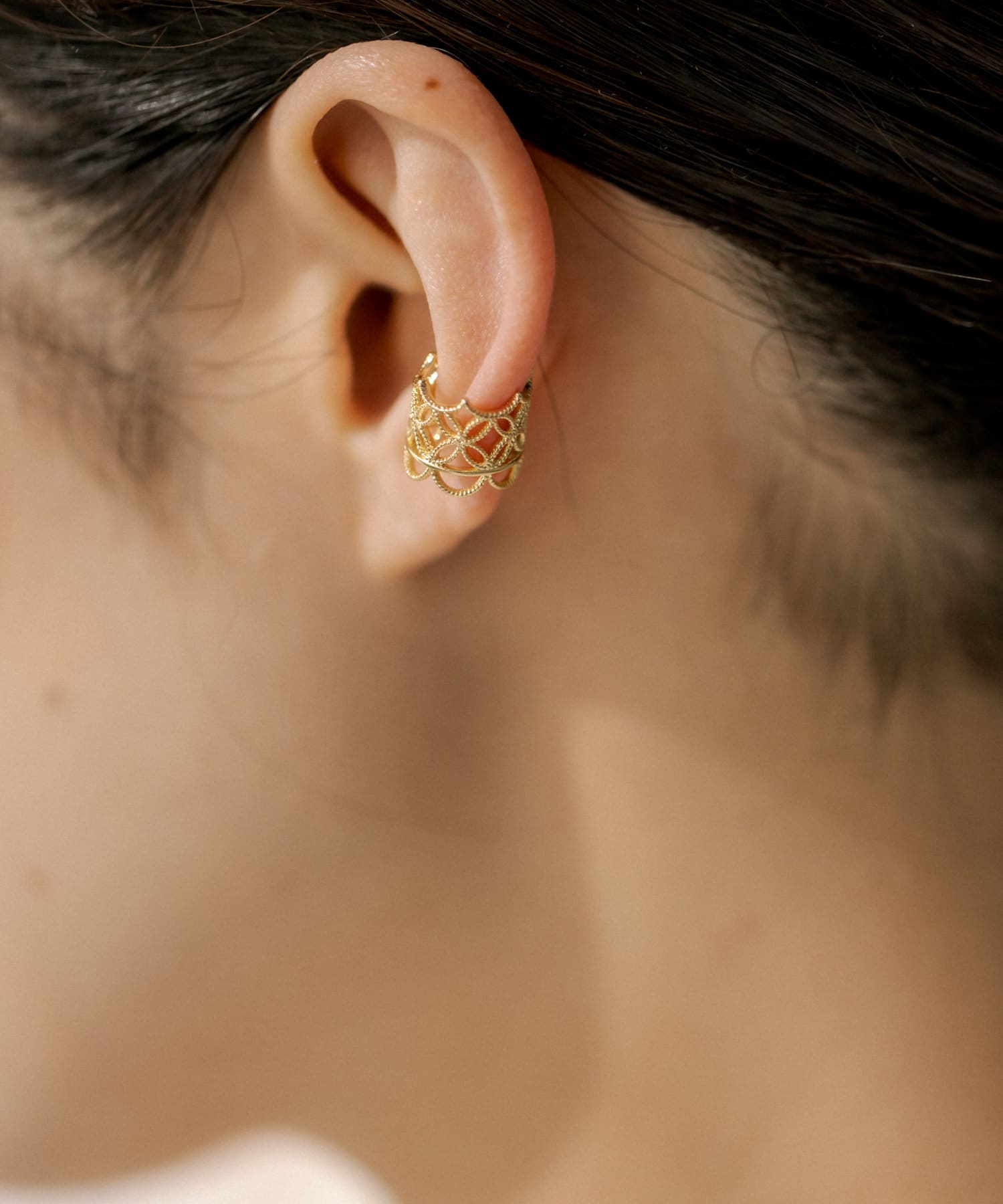 レースをふわっと耳にまとったような、繊細なデザインが美しいイヤーカフ。