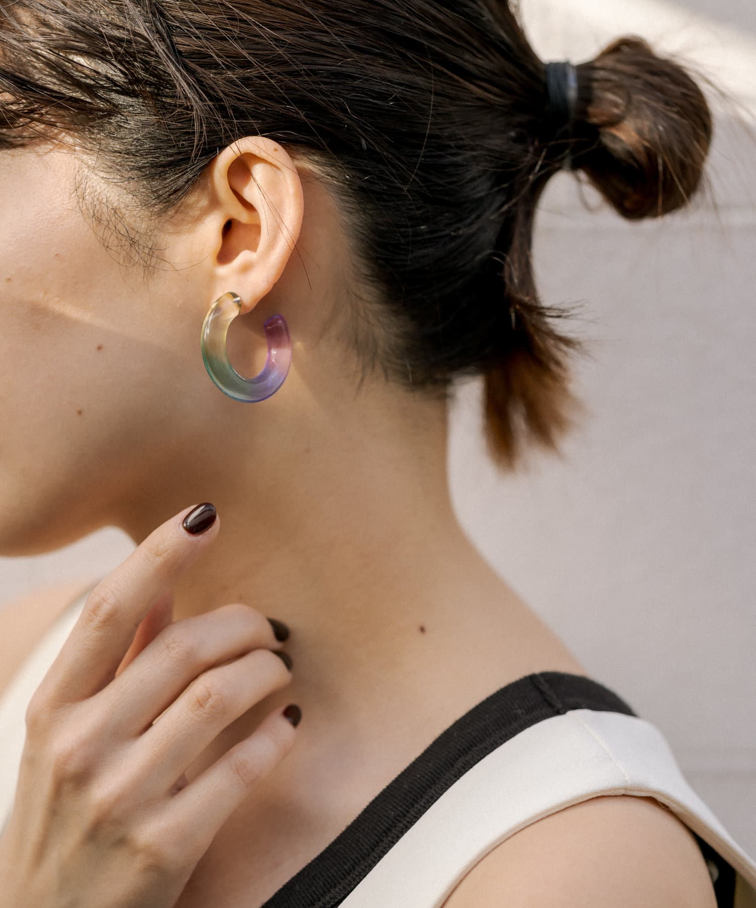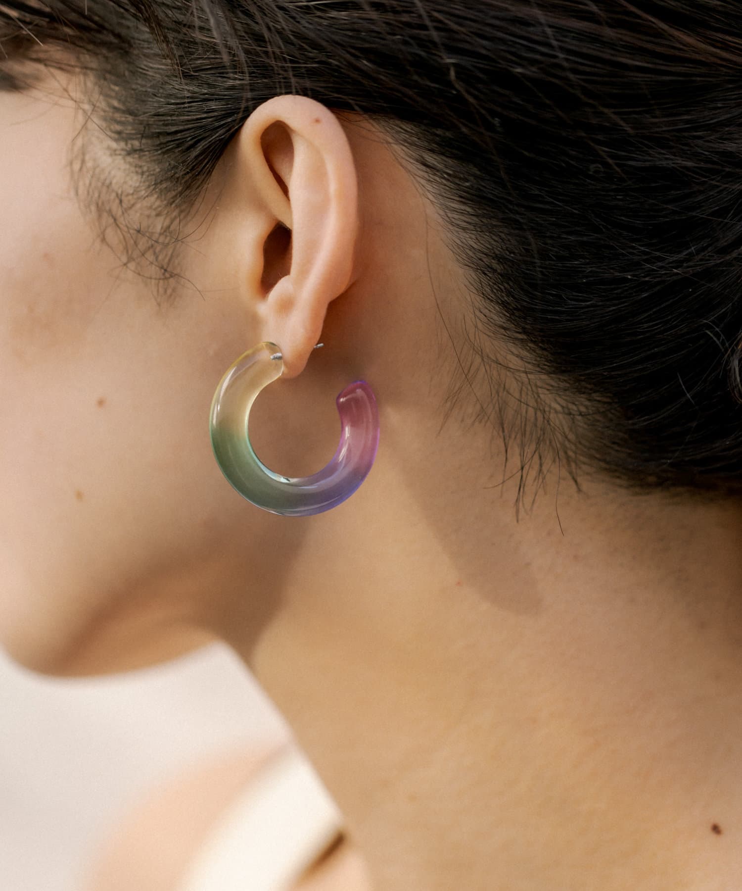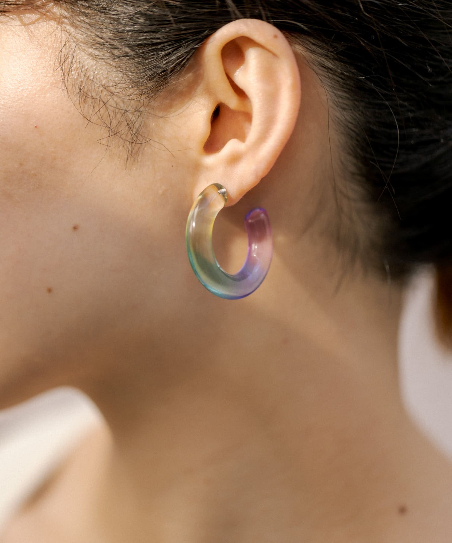 横顔を彩るカラフルグラデーションの軽やかピアス
