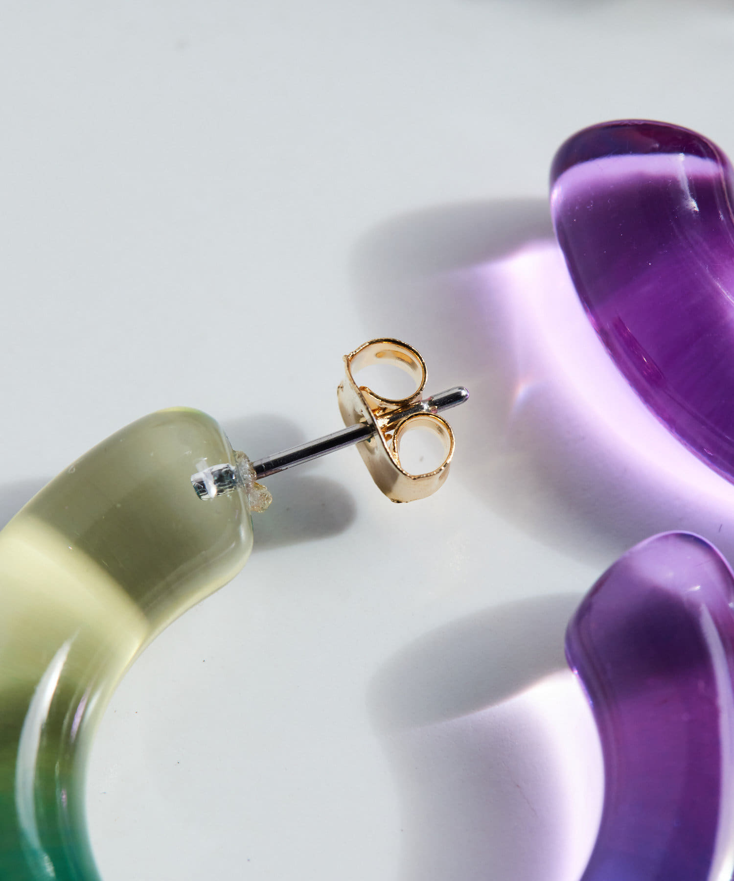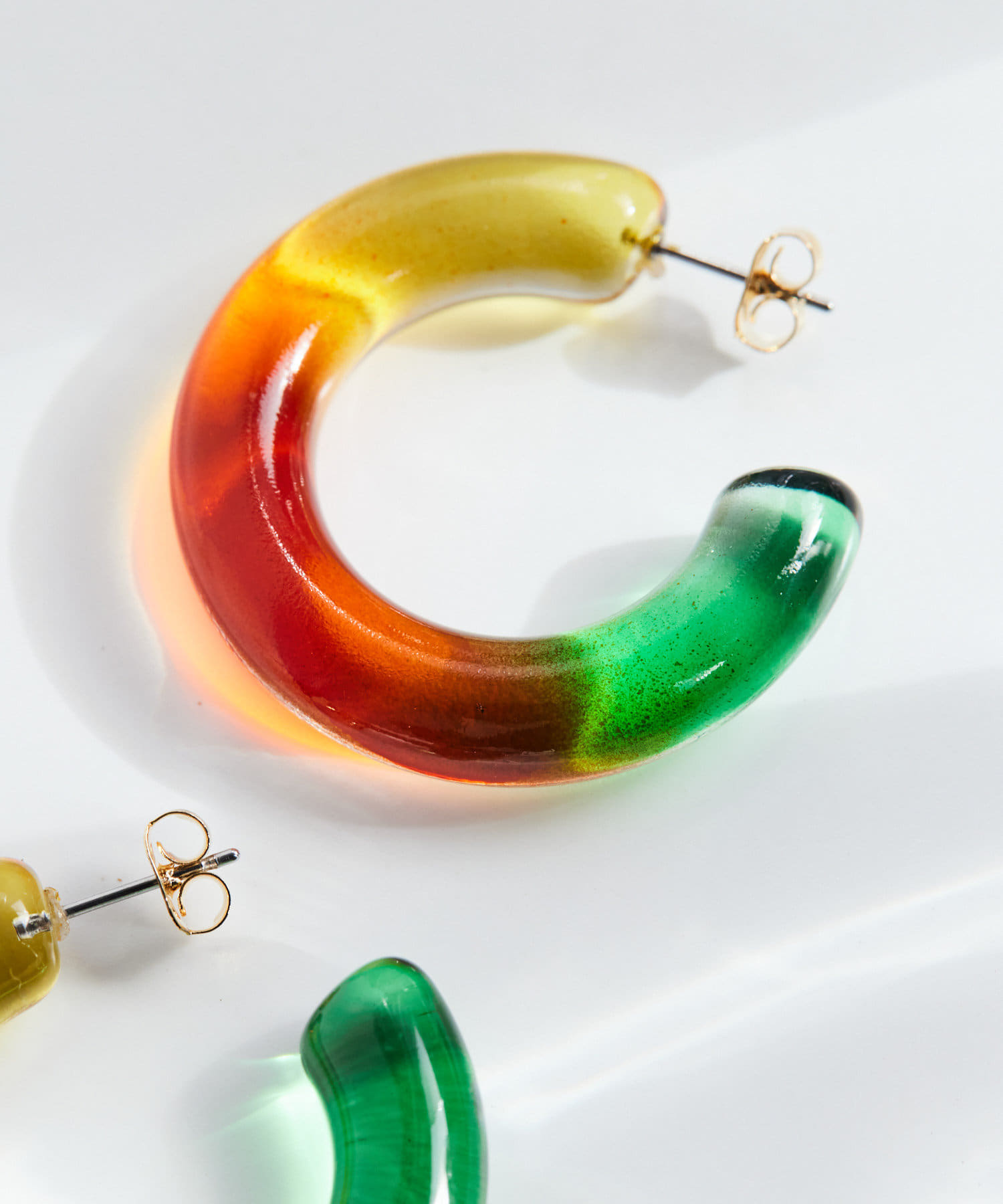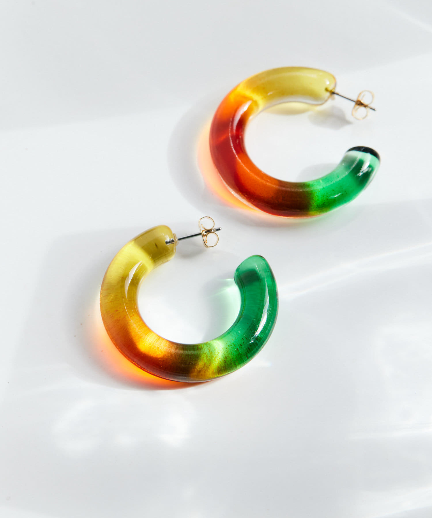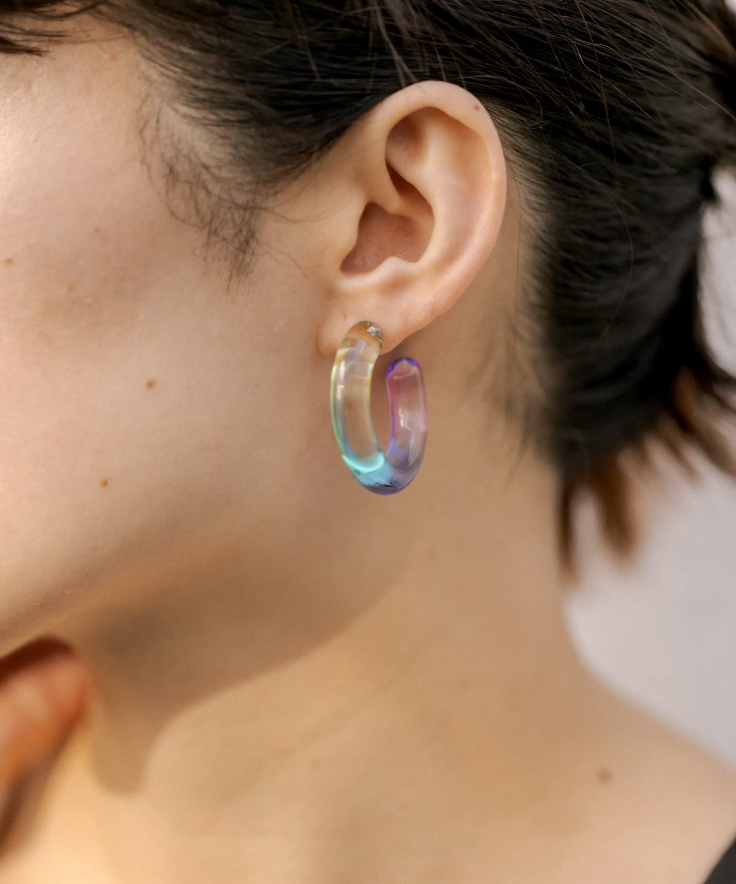 横顔を彩るカラフルグラデーションの軽やかピアス