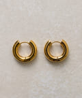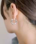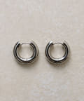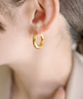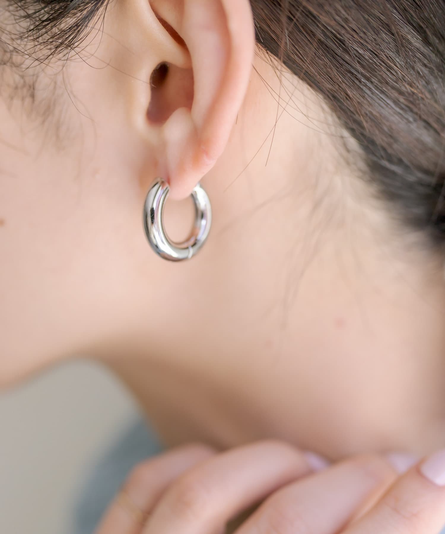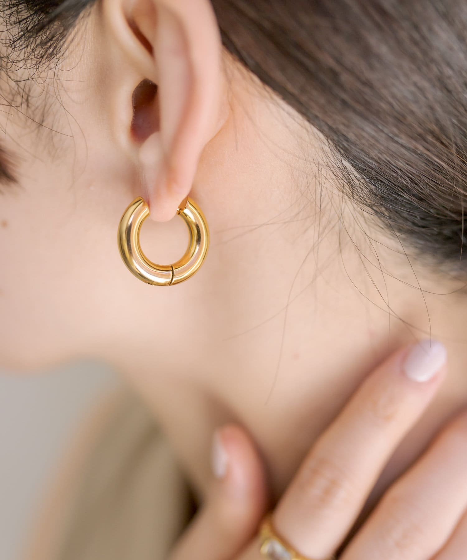 幅広のラインで構成されたフープピアスはシンプルデザインでありながらも確かな存在感。