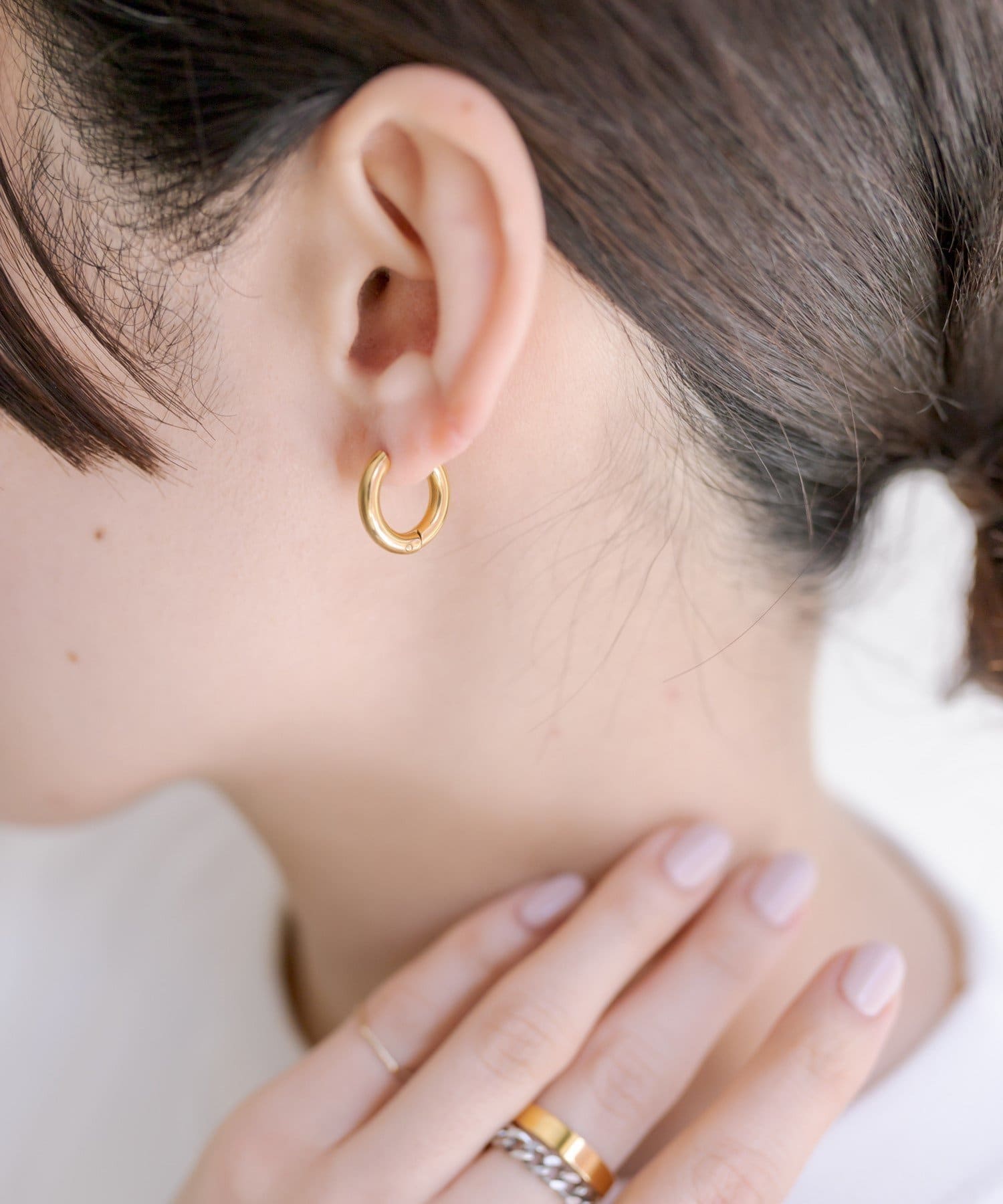 丸みを帯びたフープが艶やかに輝き、横顔に華やかさをプラスしてくれます。