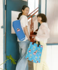 マスコットキャラクター「Mr. P」の総柄プリントトートバッグ。