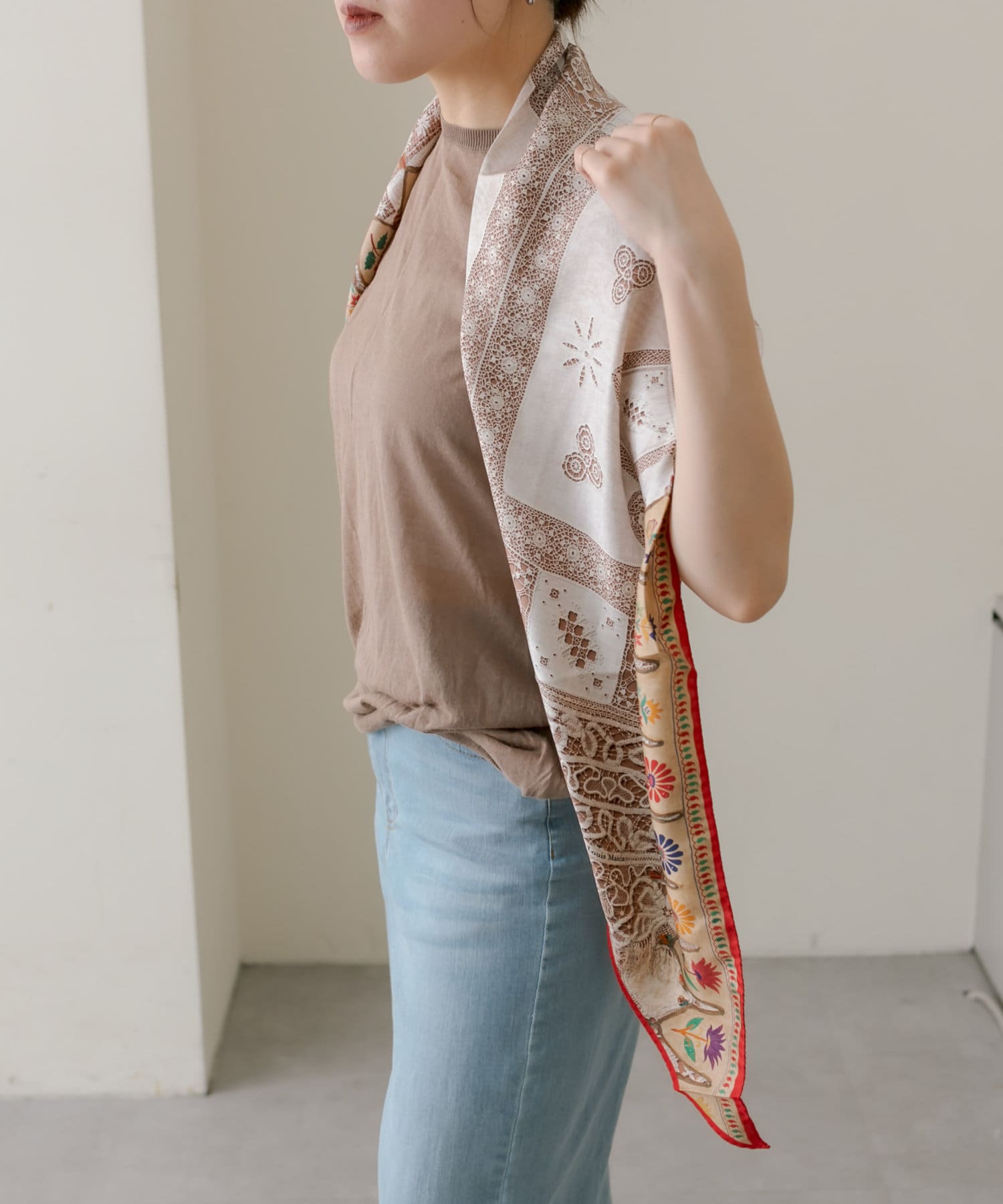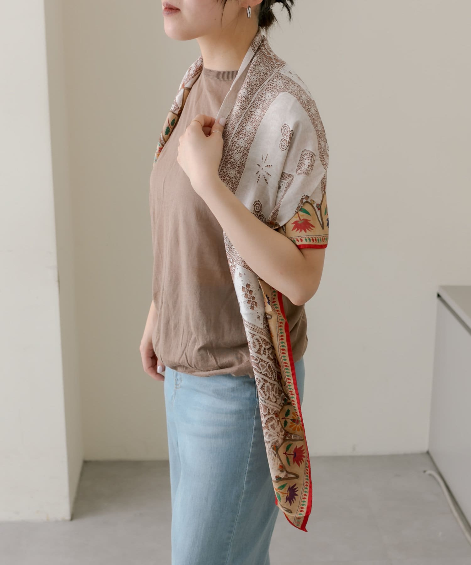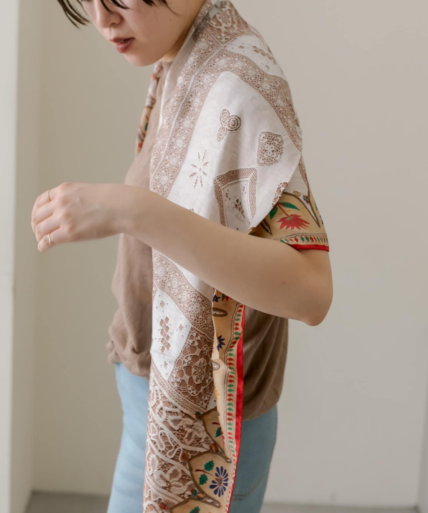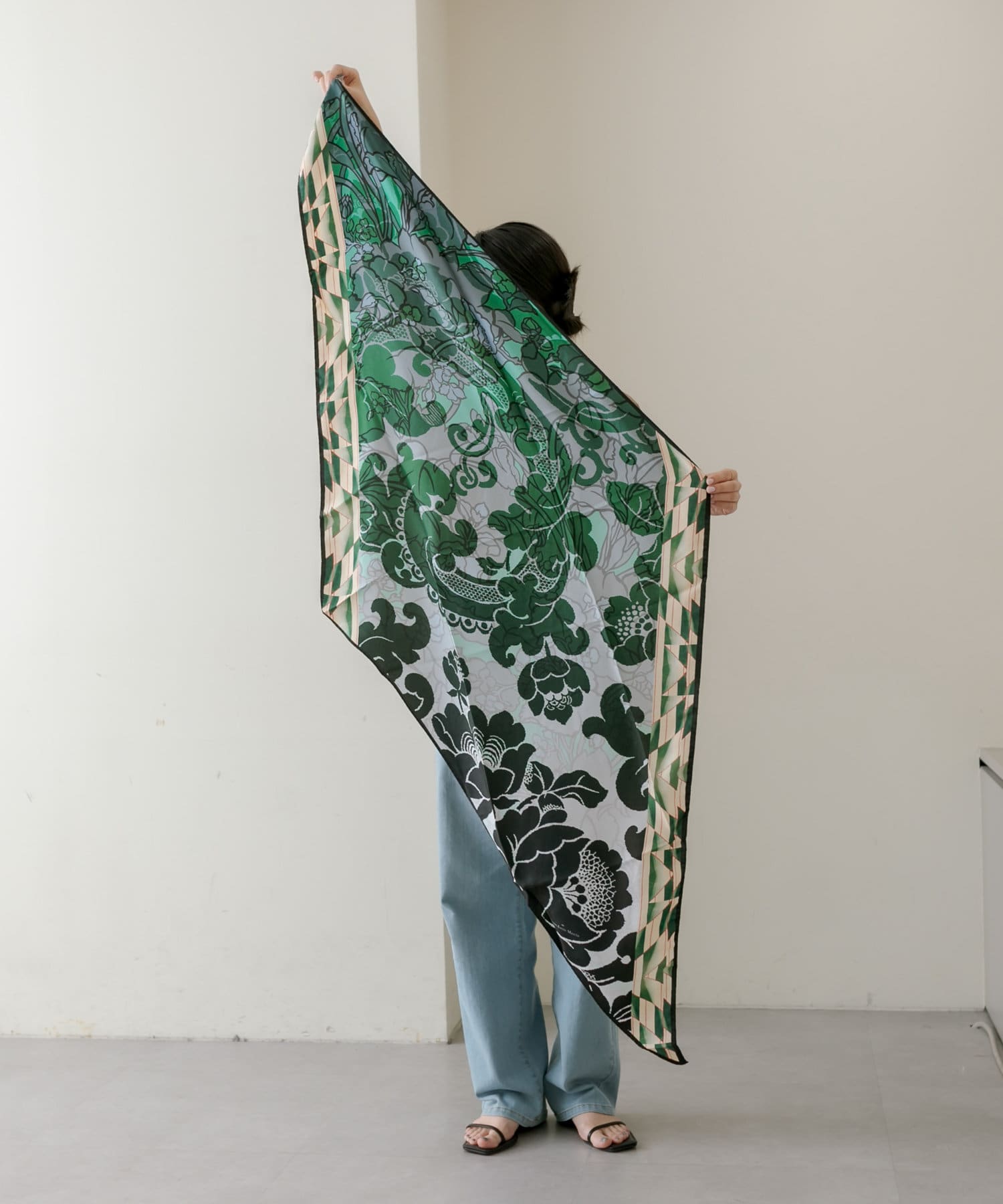シルク100%【Pierre Louis Mascia(ピエール=ルイ・マシア)】ALOEUW/変形シルクスカーフ