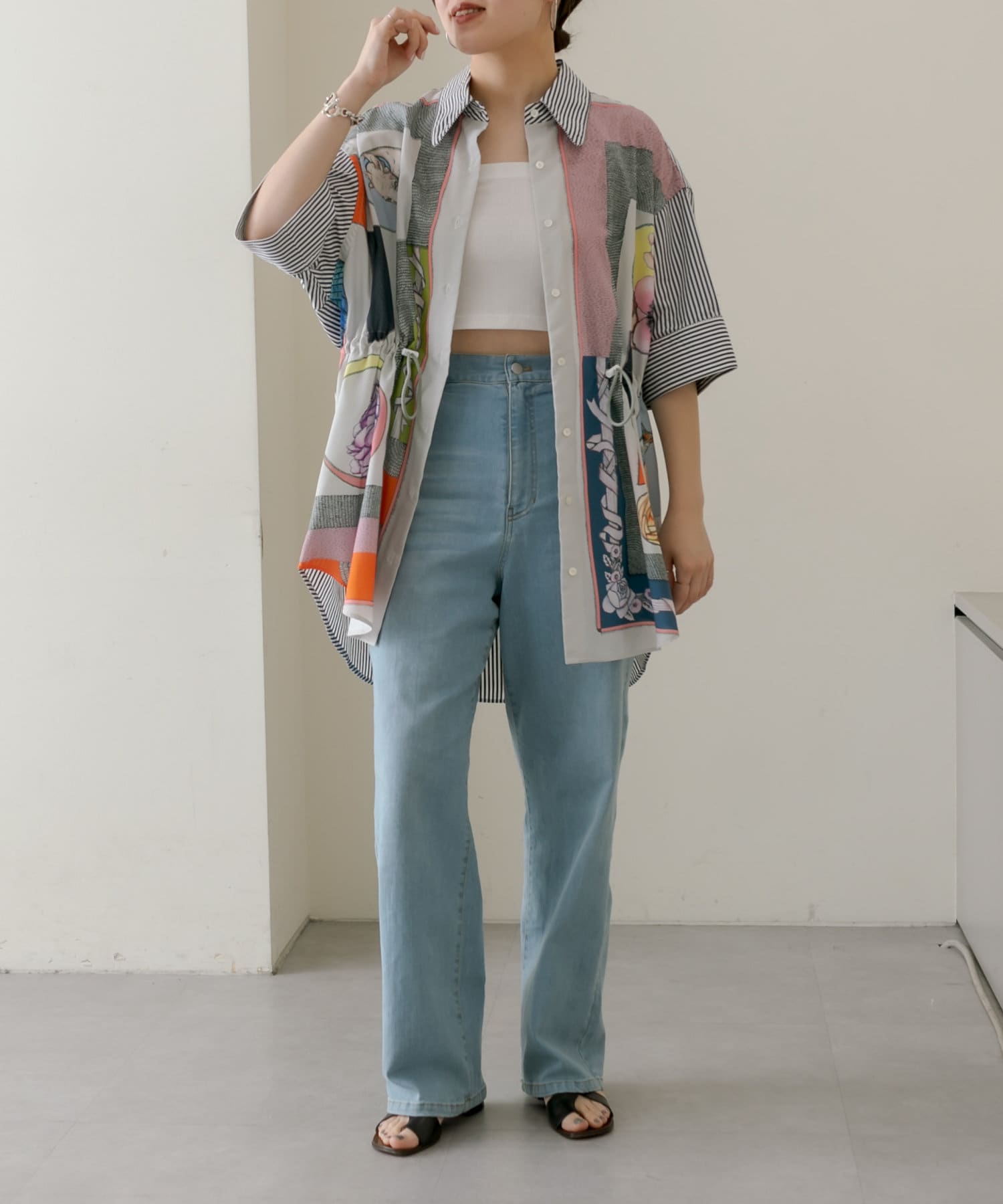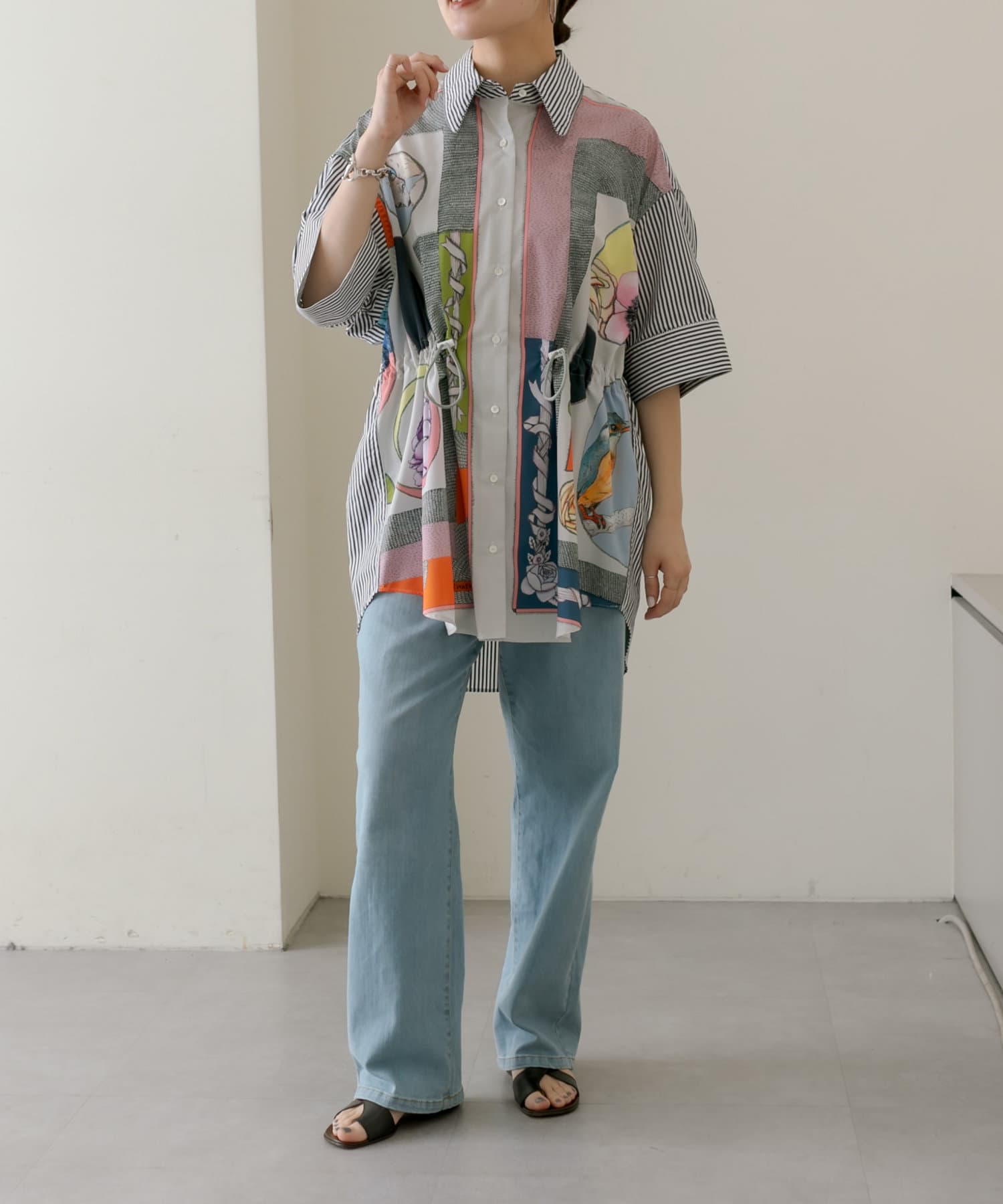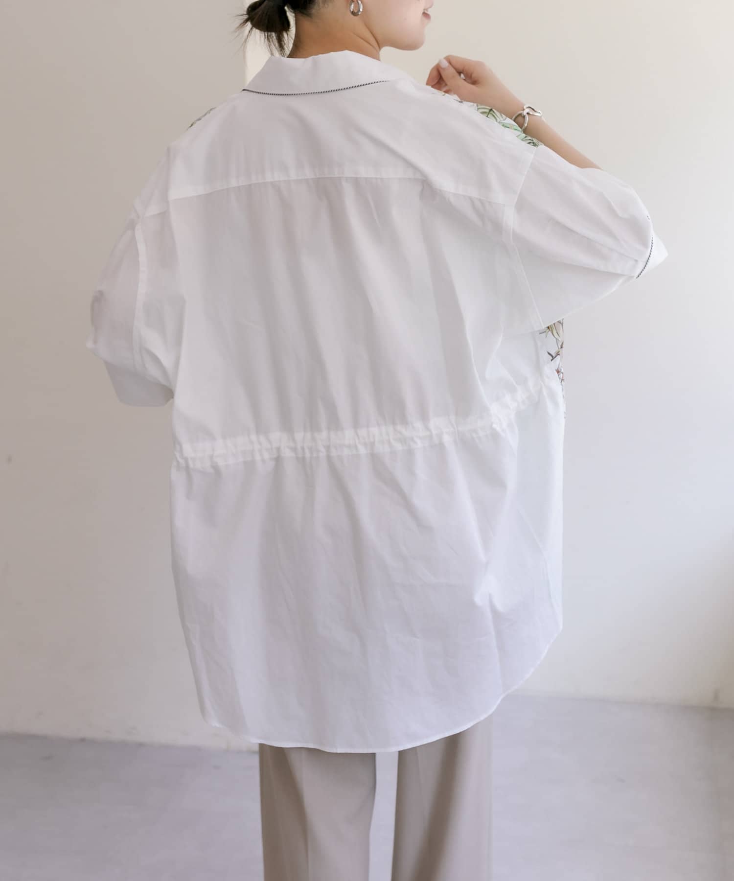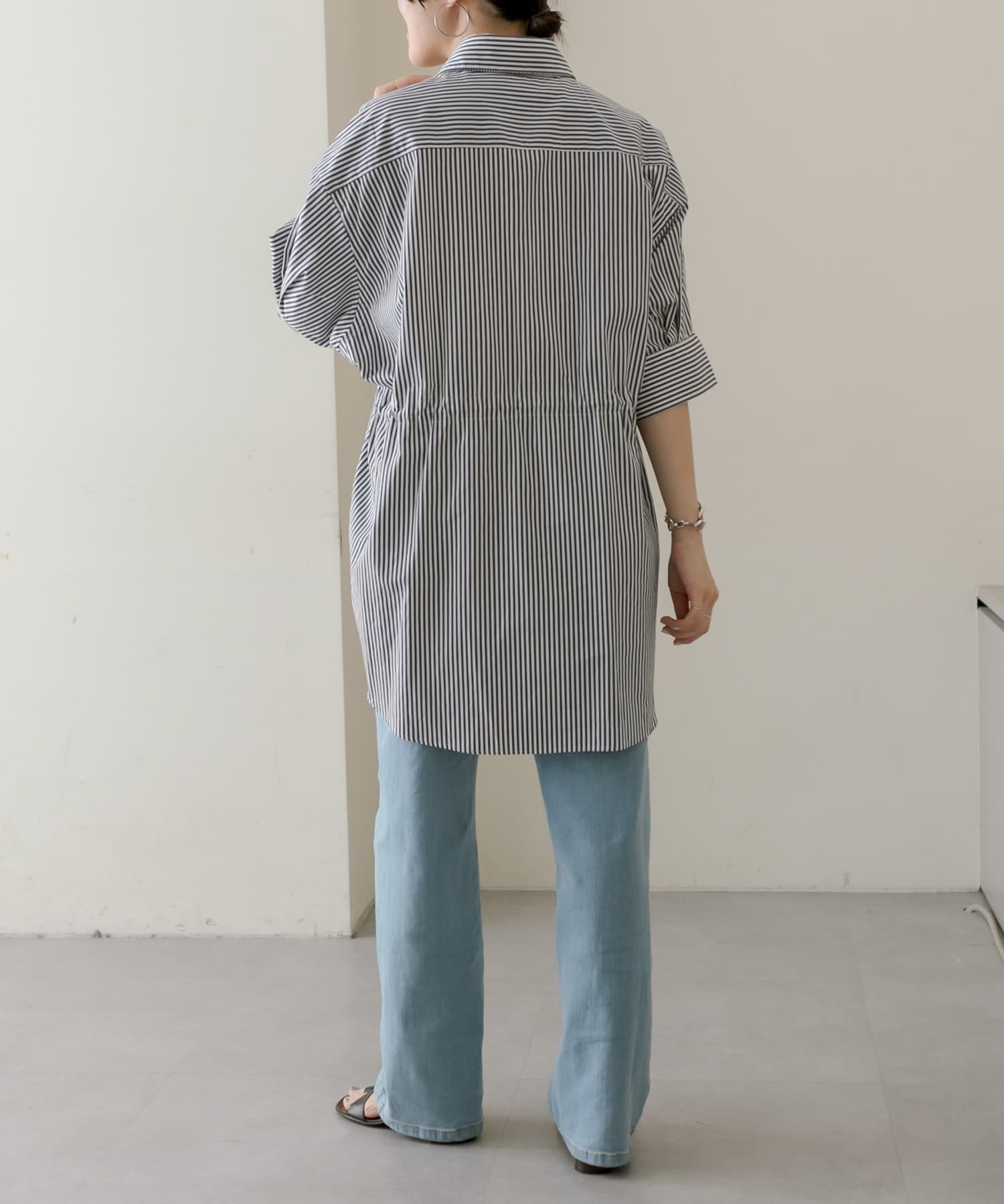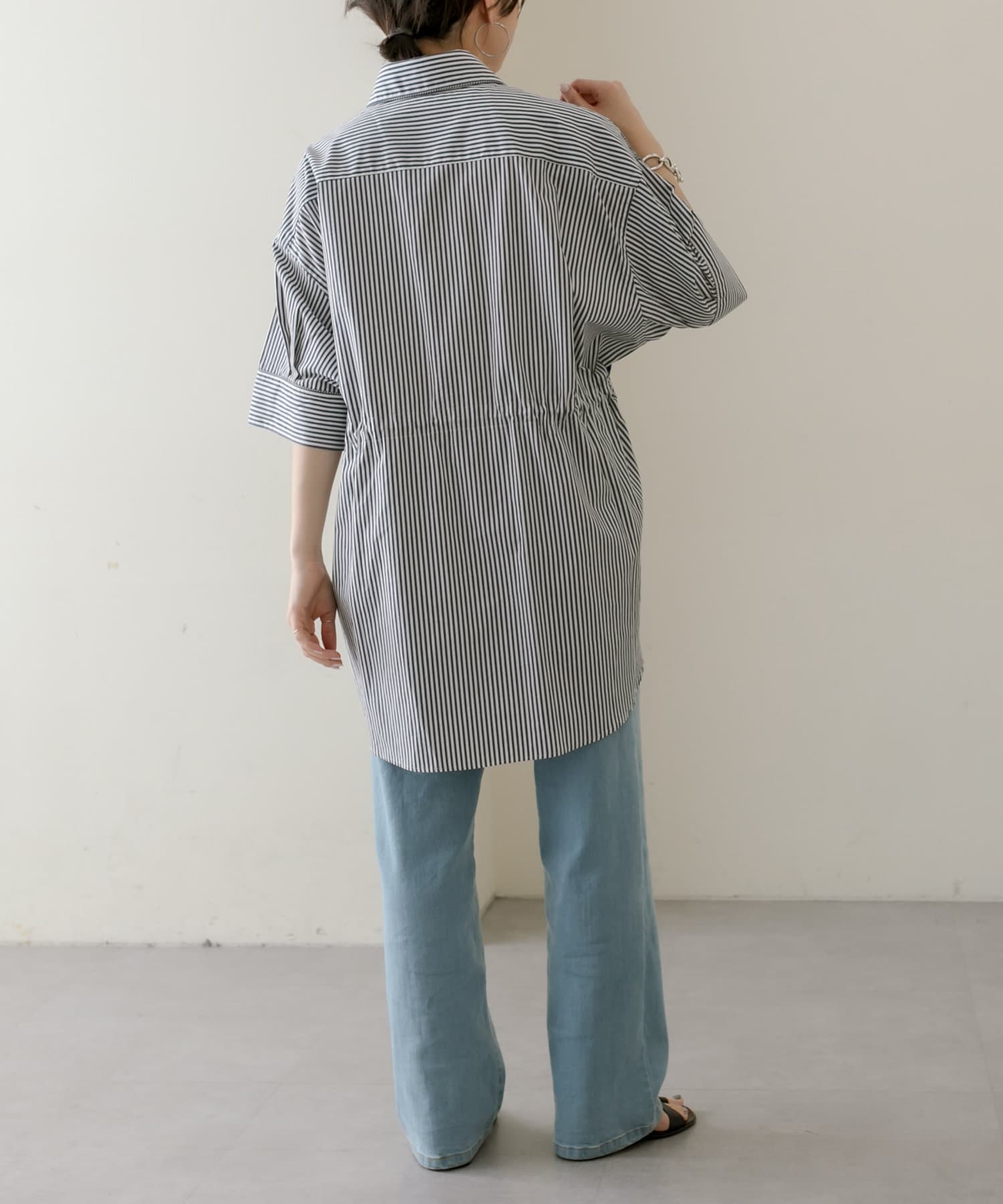 【SWASH LONDON(スウォッシュロンドン)】《日本製/手洗い可》半袖ドロストチュニックシャツ