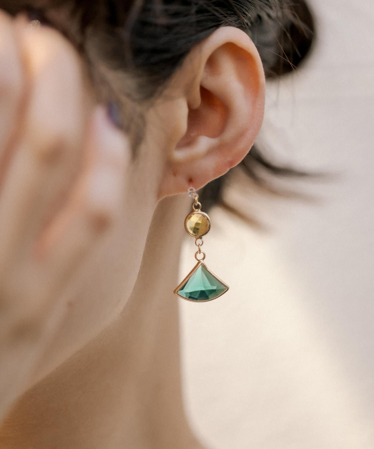 揺れ感のあるカットガラスが耳元でキラキラと輝き、お顔周りを華やかに。