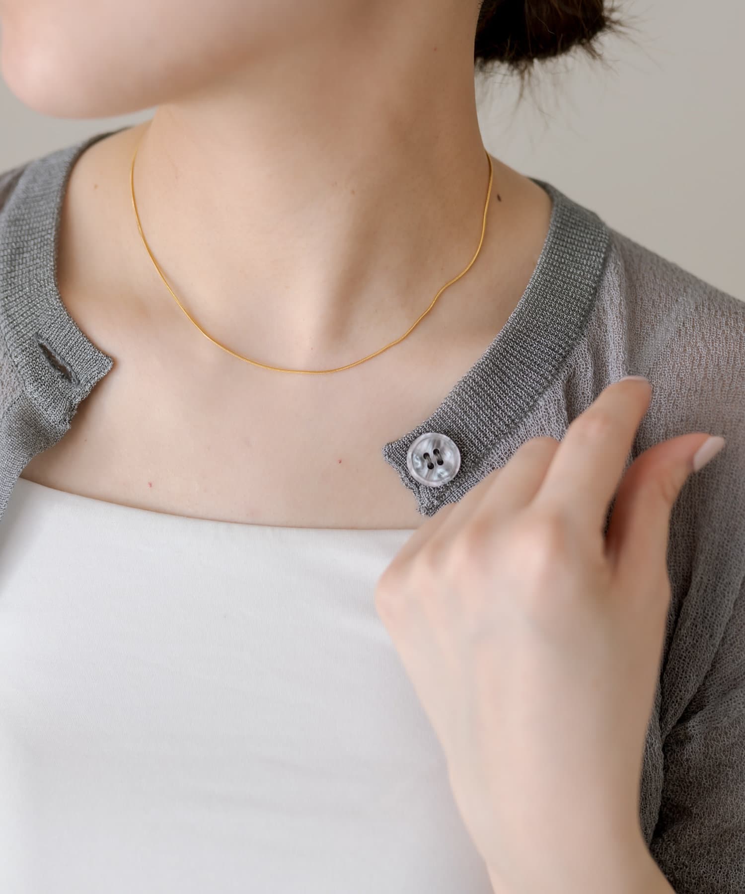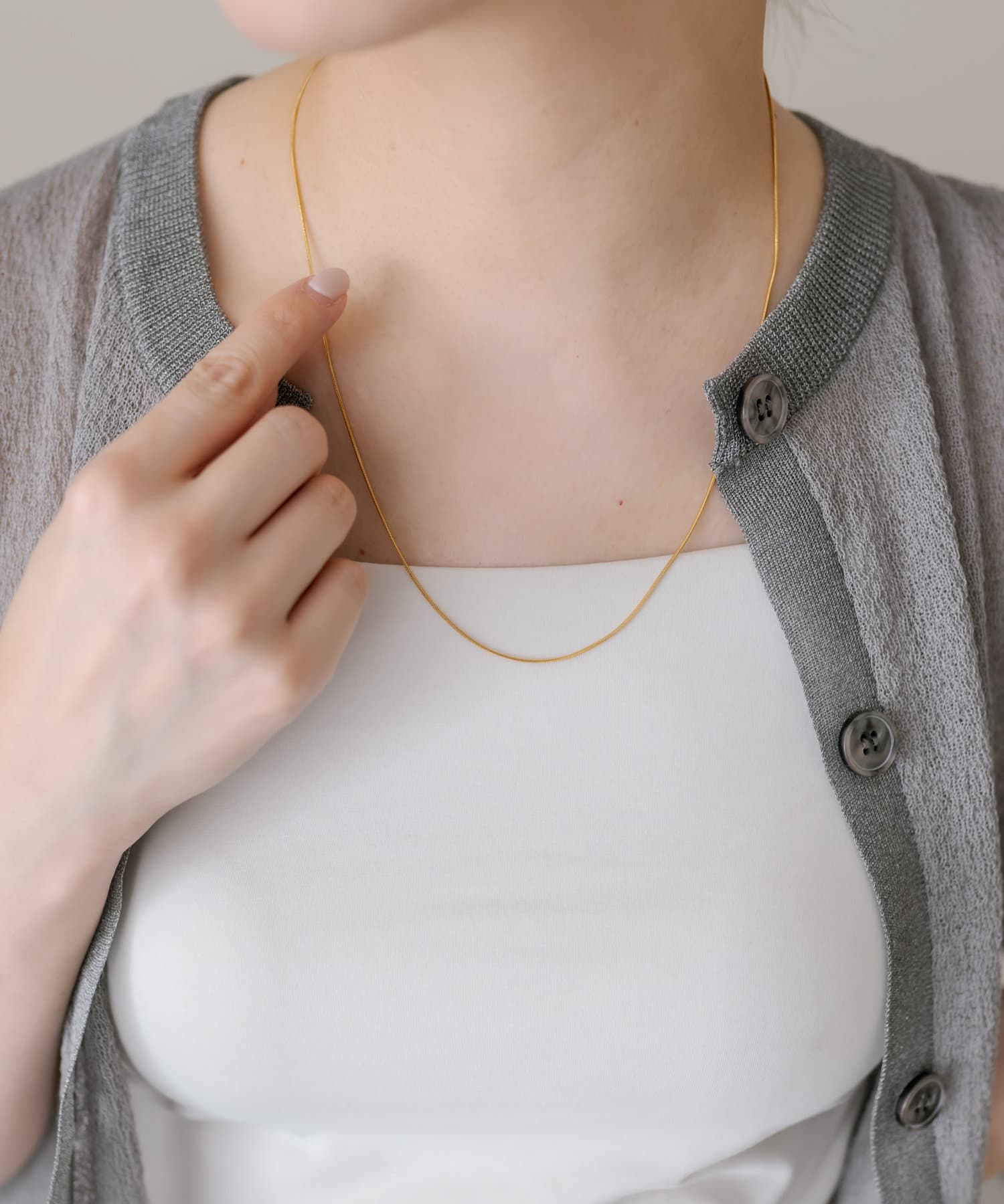 シンプルながらもスネークチェーンでさりげないオシャレさも感じる、