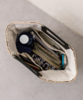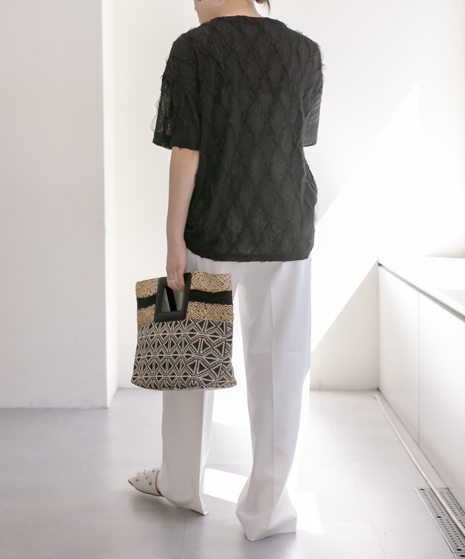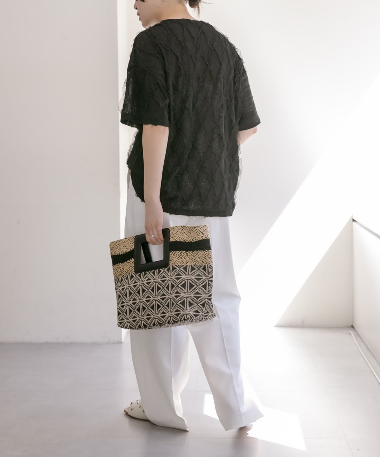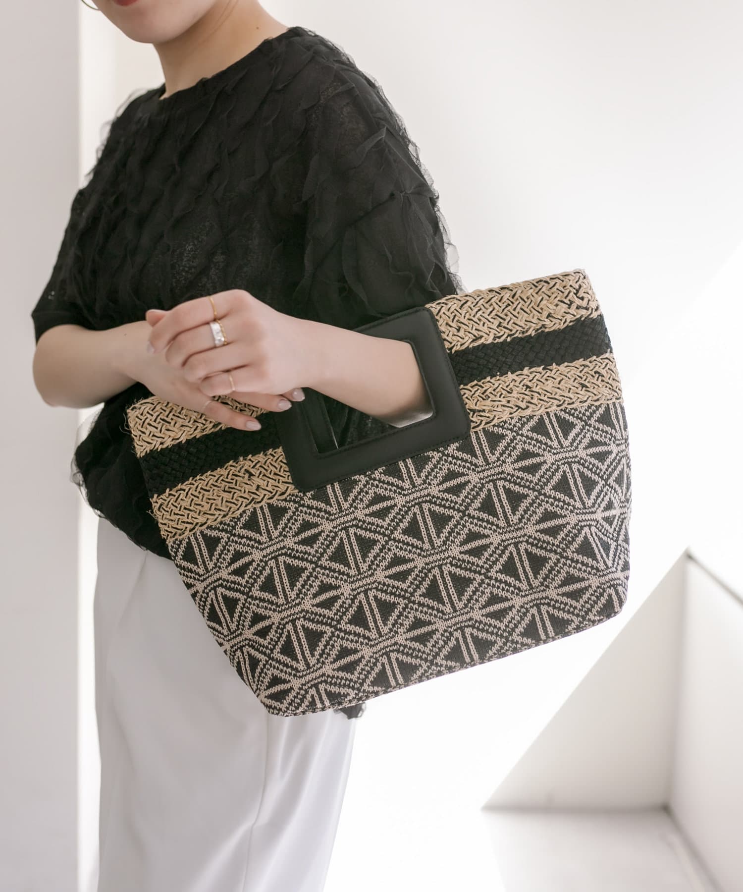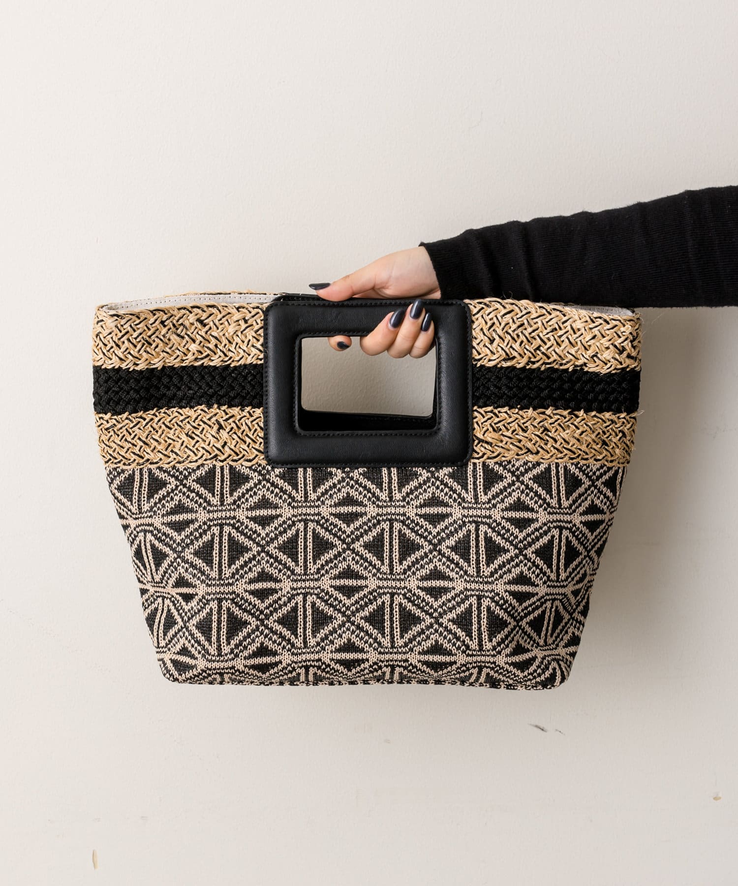 ポイントでラインテープを効かせた夏に持ちたくなる雑材バッグ。