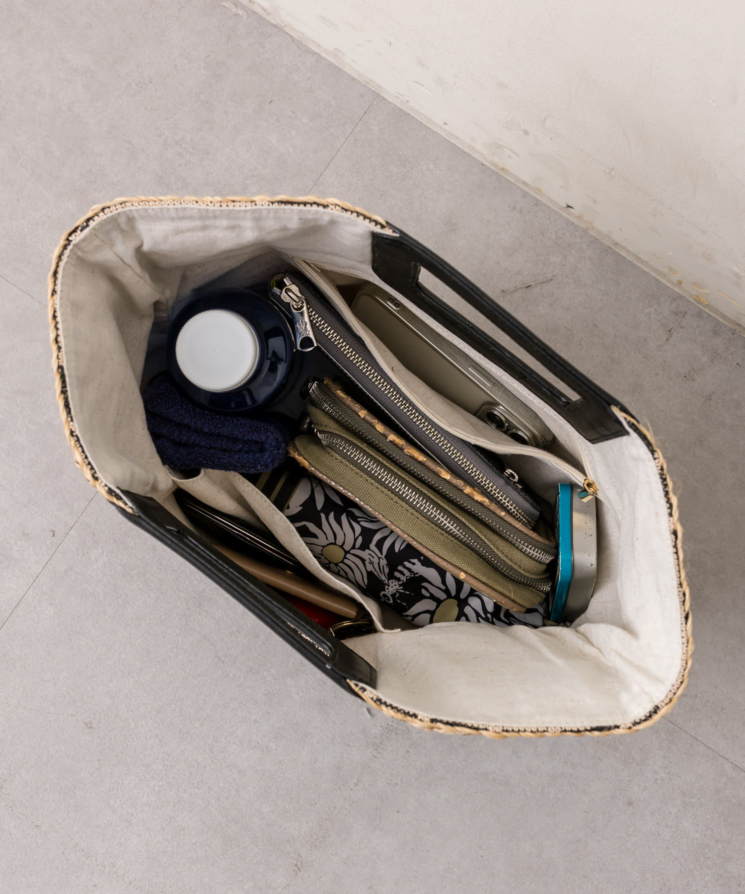 これからの季節に一つは持っていたい雑材バッグ。