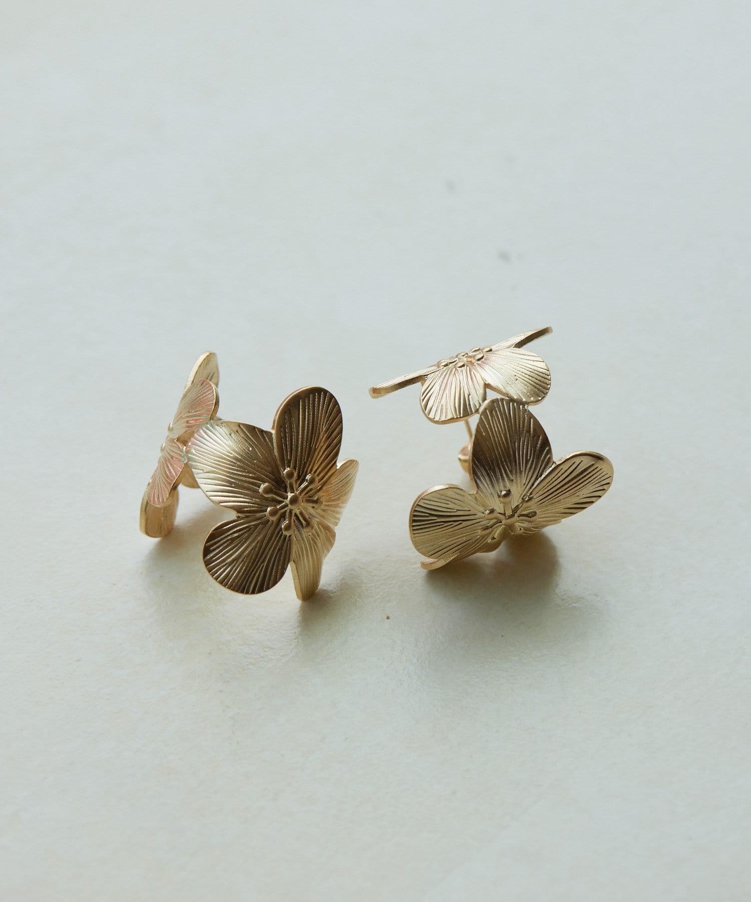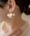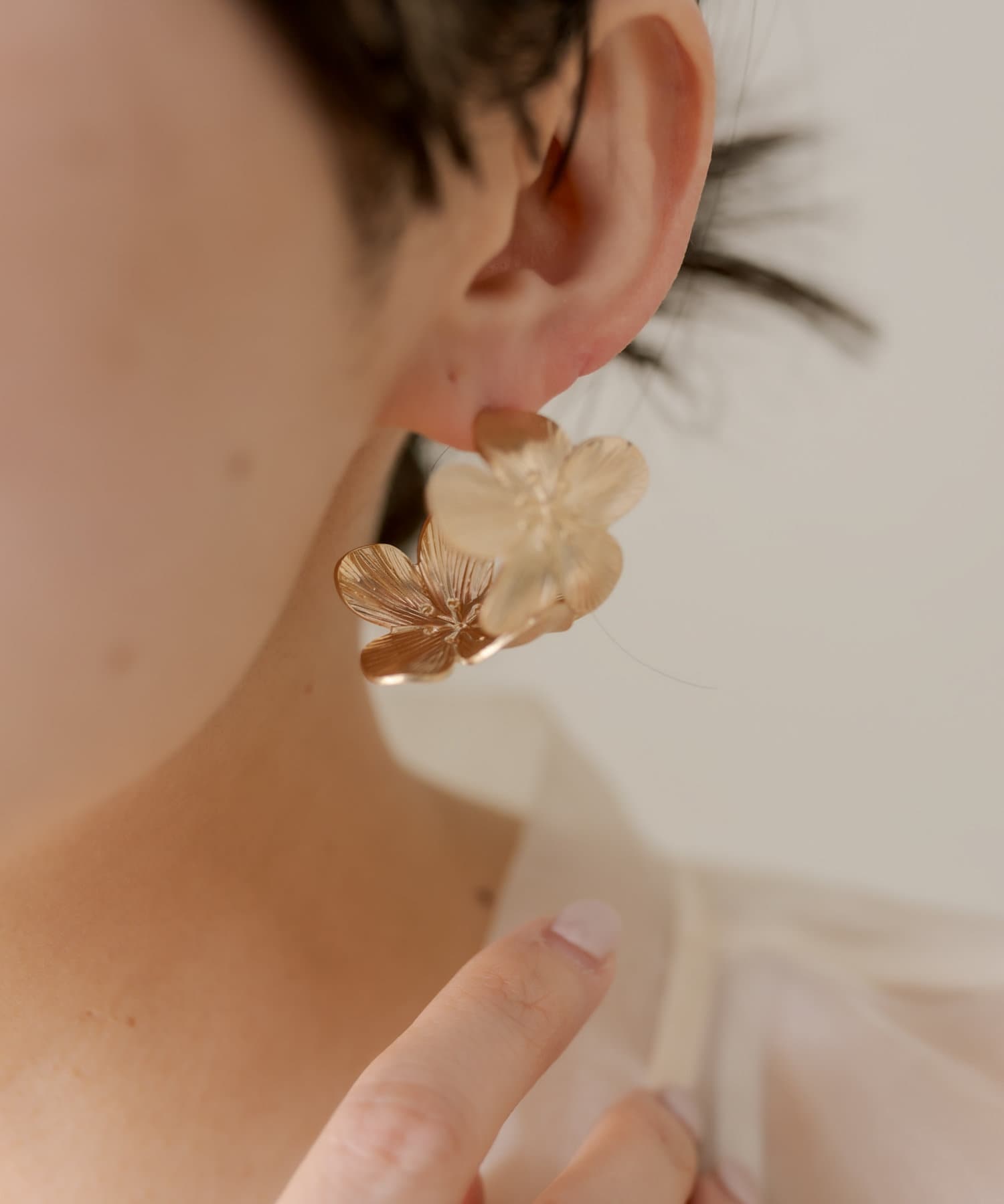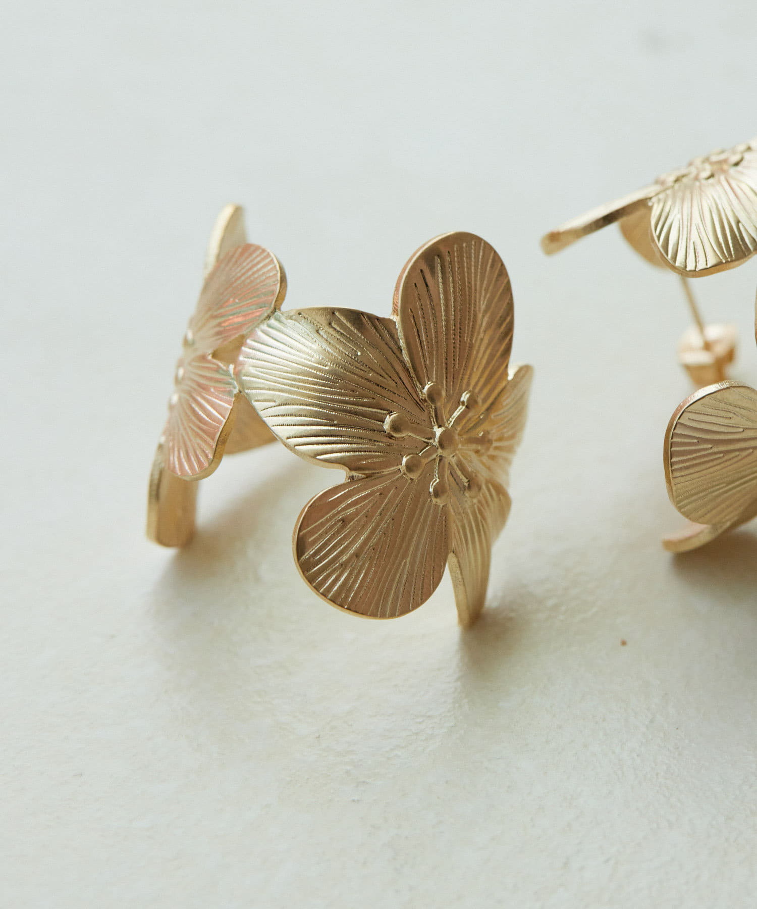 大きなお花パーツがフープ状になった存在感のあるピアス。
