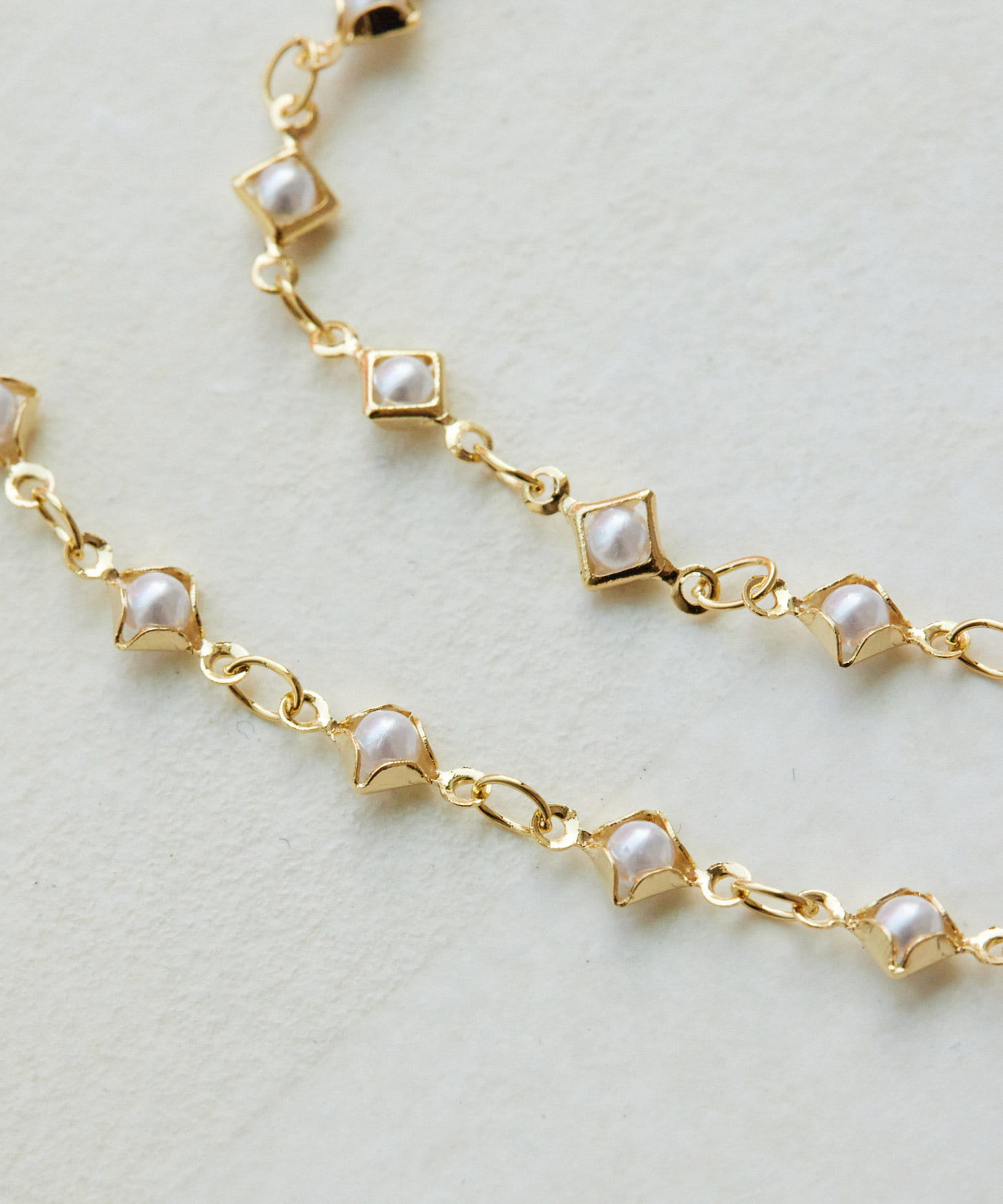 菱形のパーツにパールを埋め込んだユニークなデザイン。