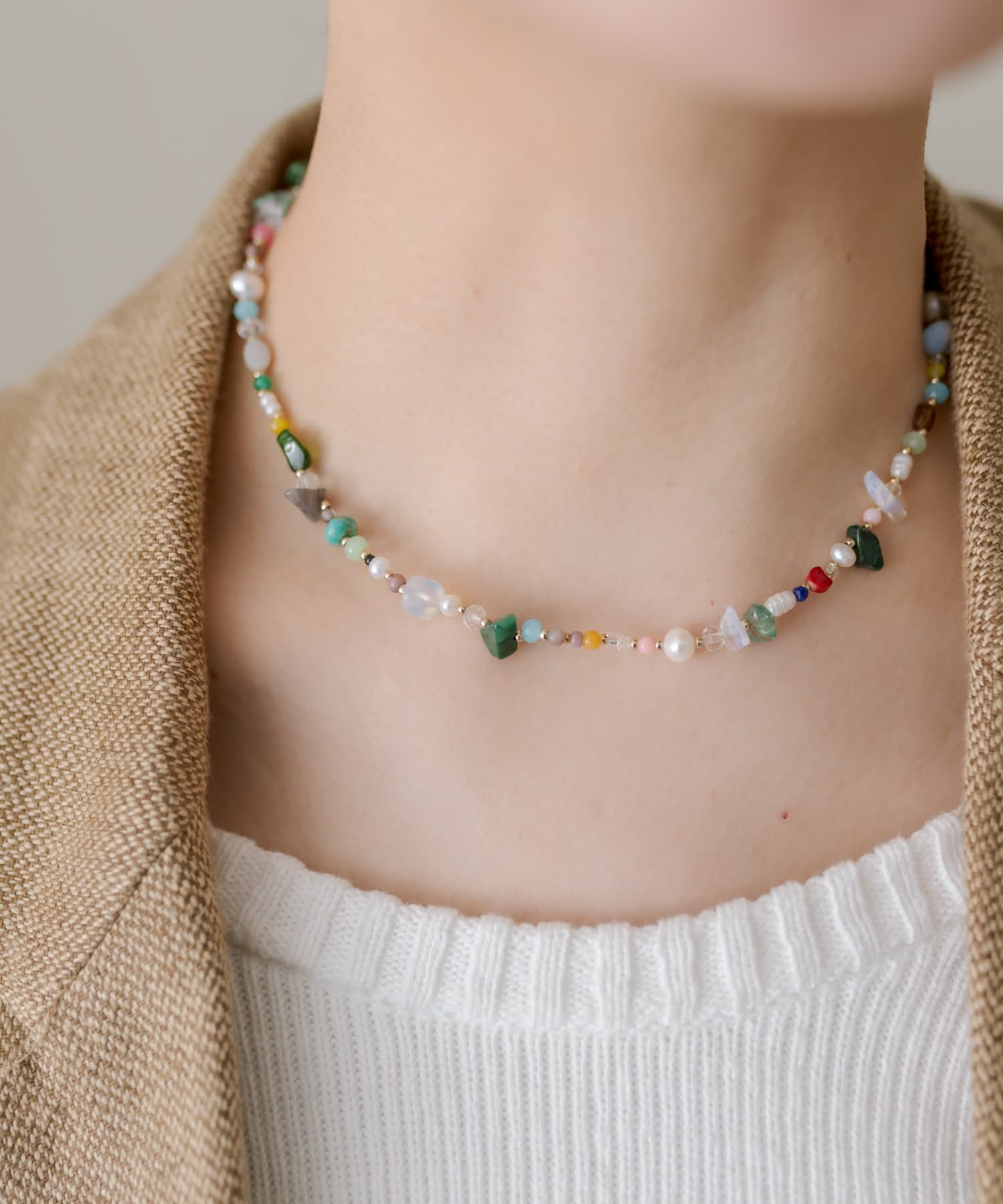 《WEB限定》天然石使用/カラフルミックスストーンネックレス