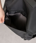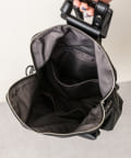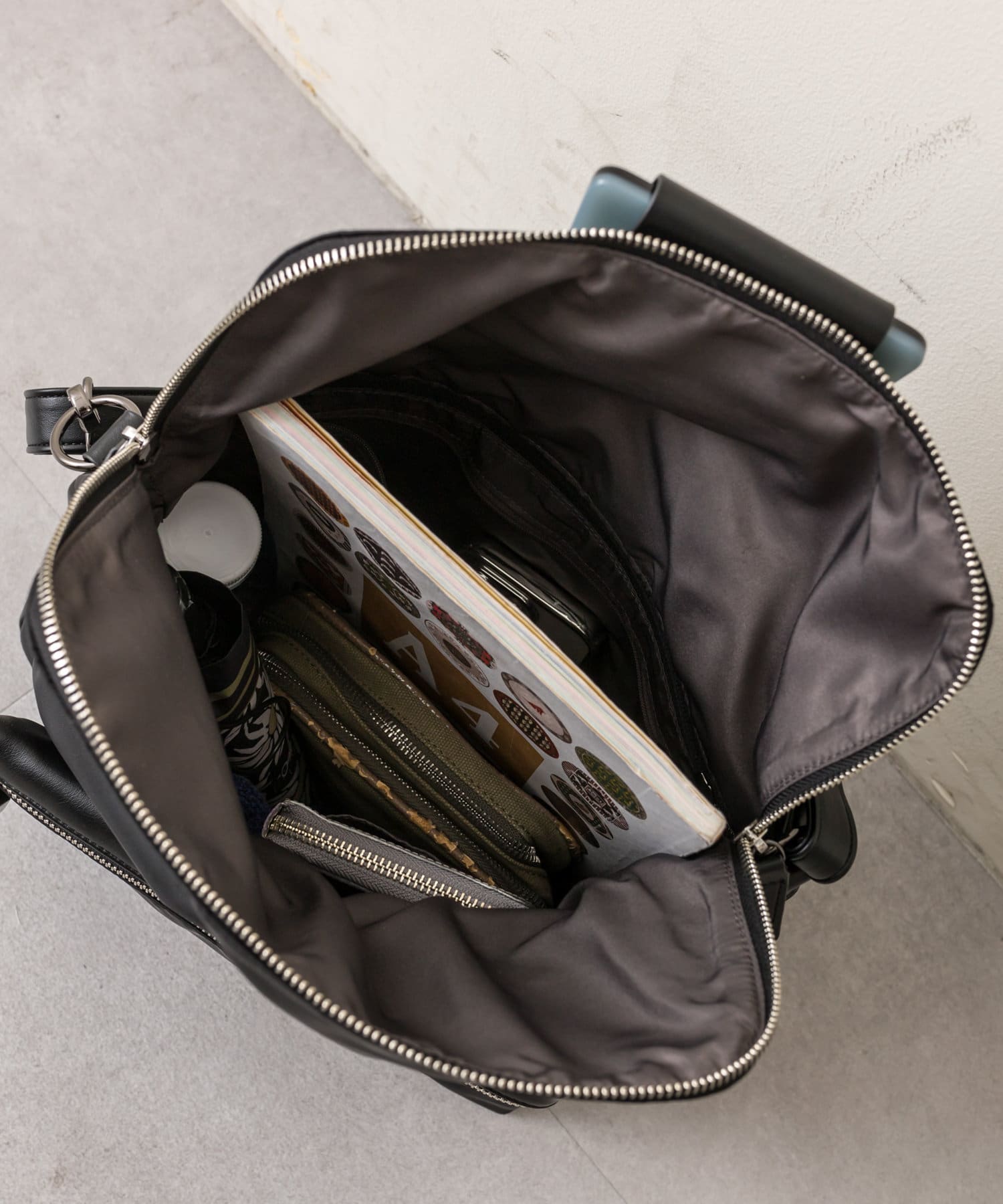 背面部分にはバックの内側につながるファスナー付きで、ショルダー型の状態でも荷物の出し入れ簡単。