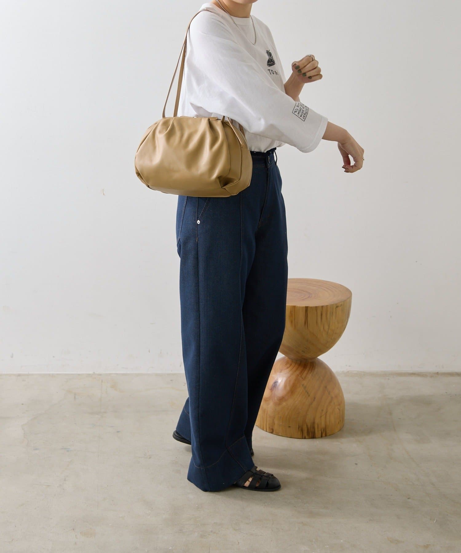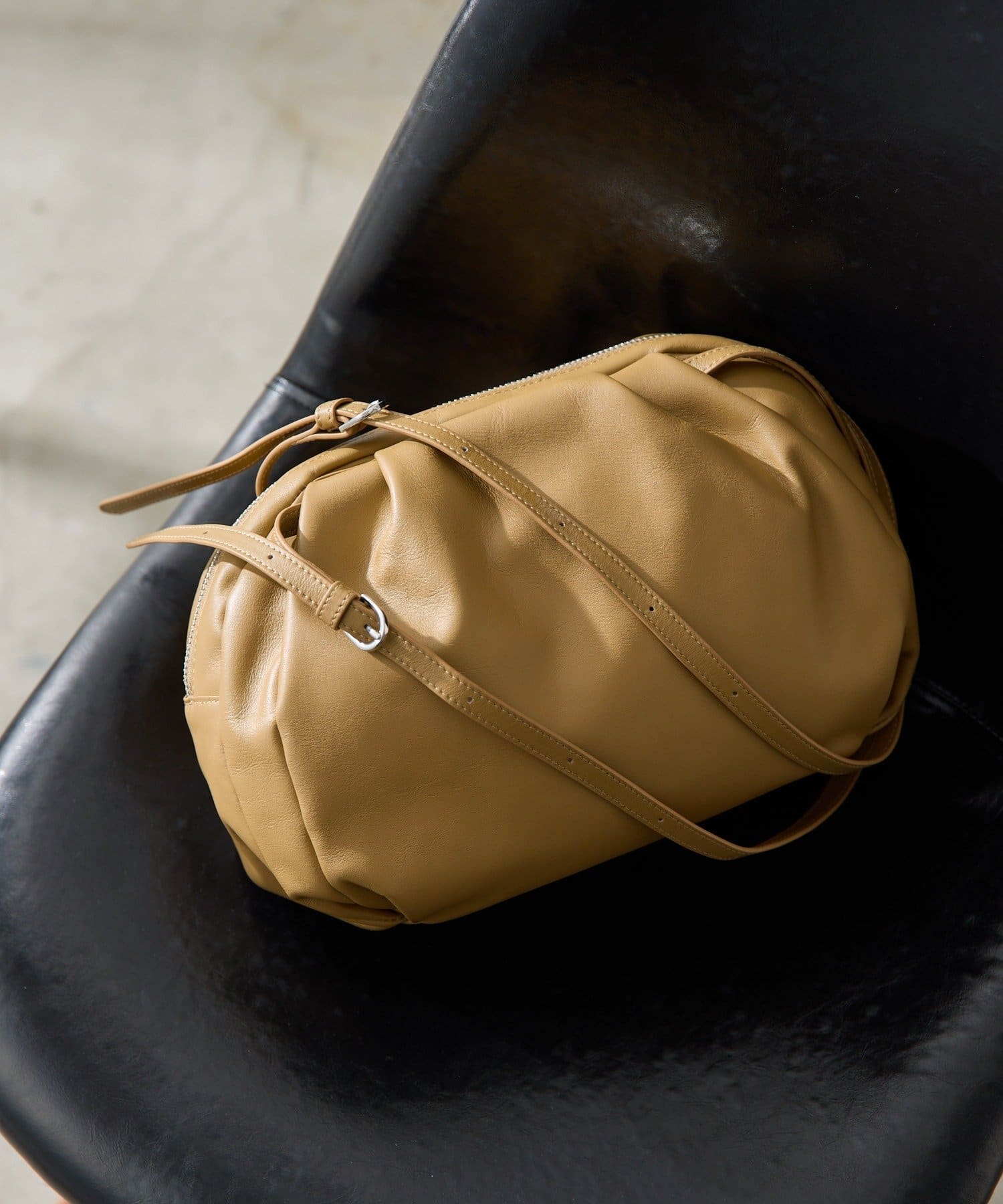 ころんと丸みのあるフォルムが目を惹く、大人可愛いボストンバッグ。