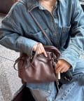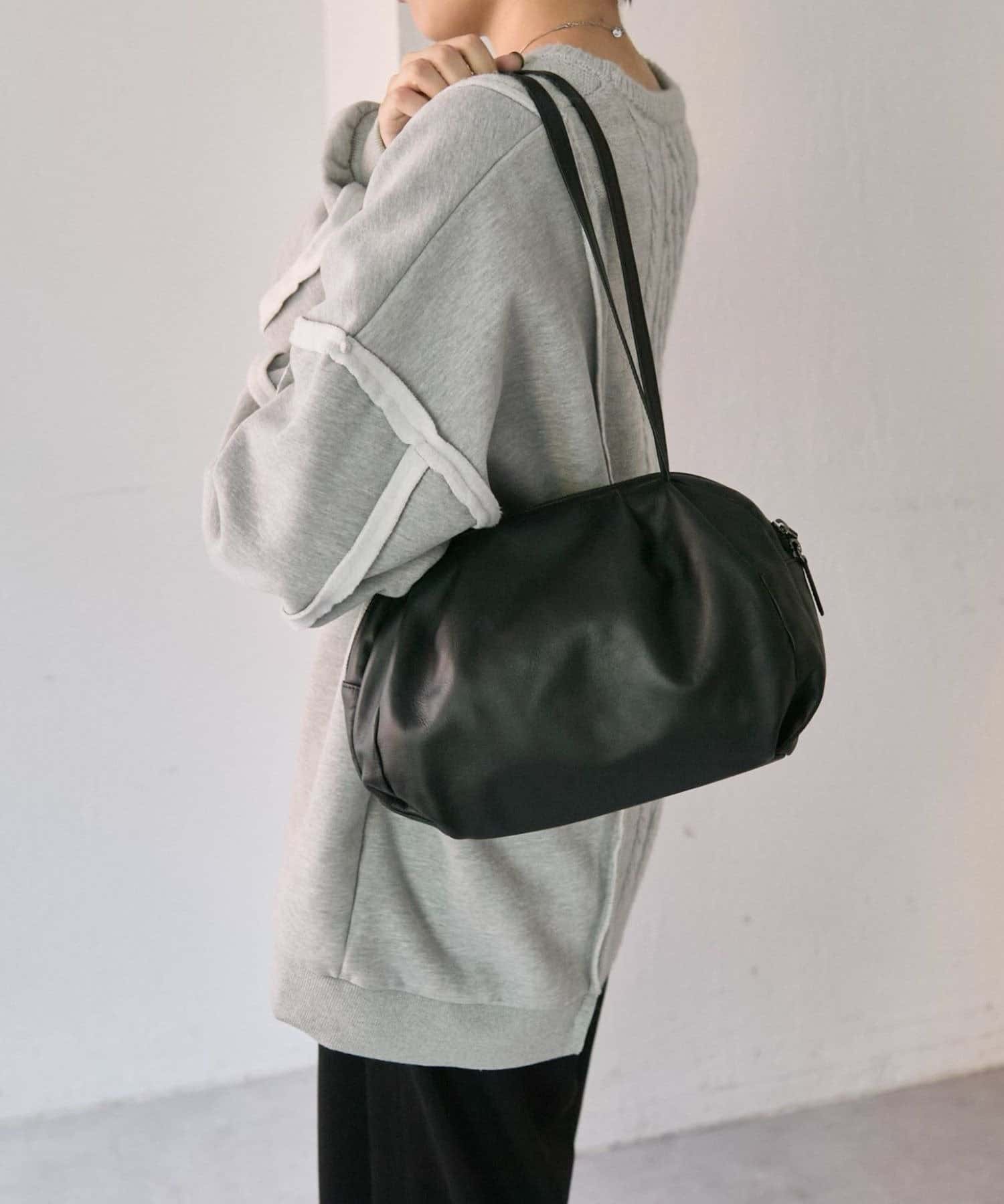 ころんと丸みのあるフォルムが目を惹く、大人可愛いボストンバッグ。