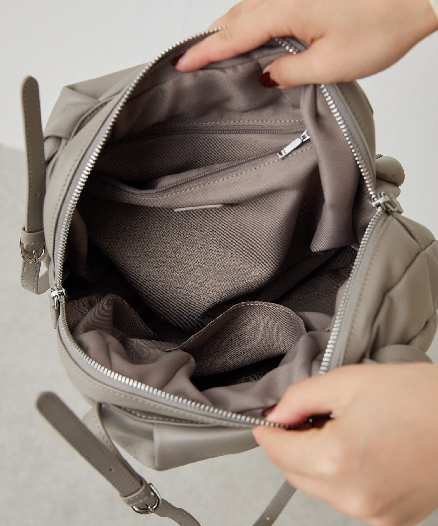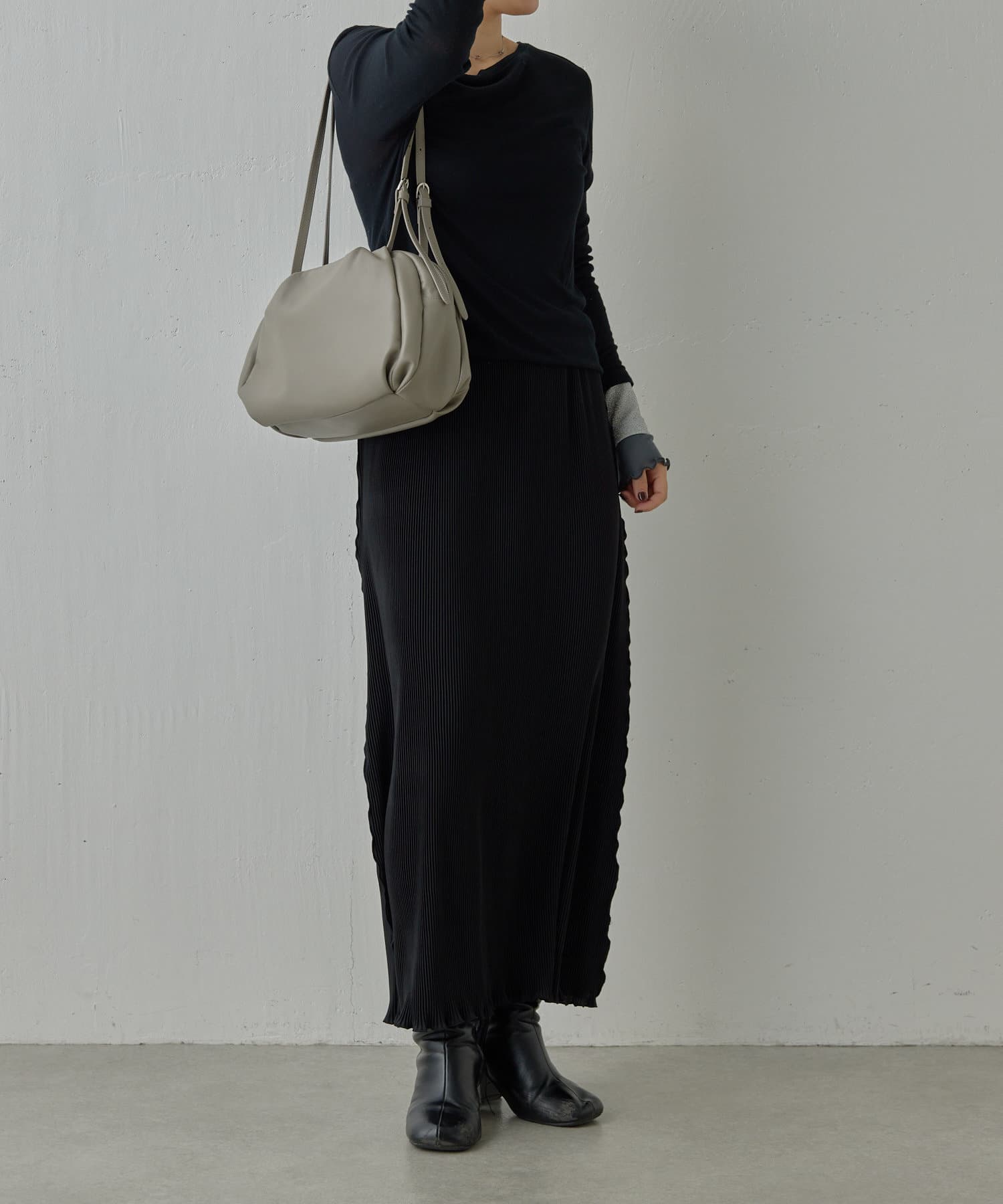 購入場所:店舗革の鞄で軽くてある程度収納力のあるものを探していました。色は黒と迷ったけど、グレージュなので合わせやすいと思います。