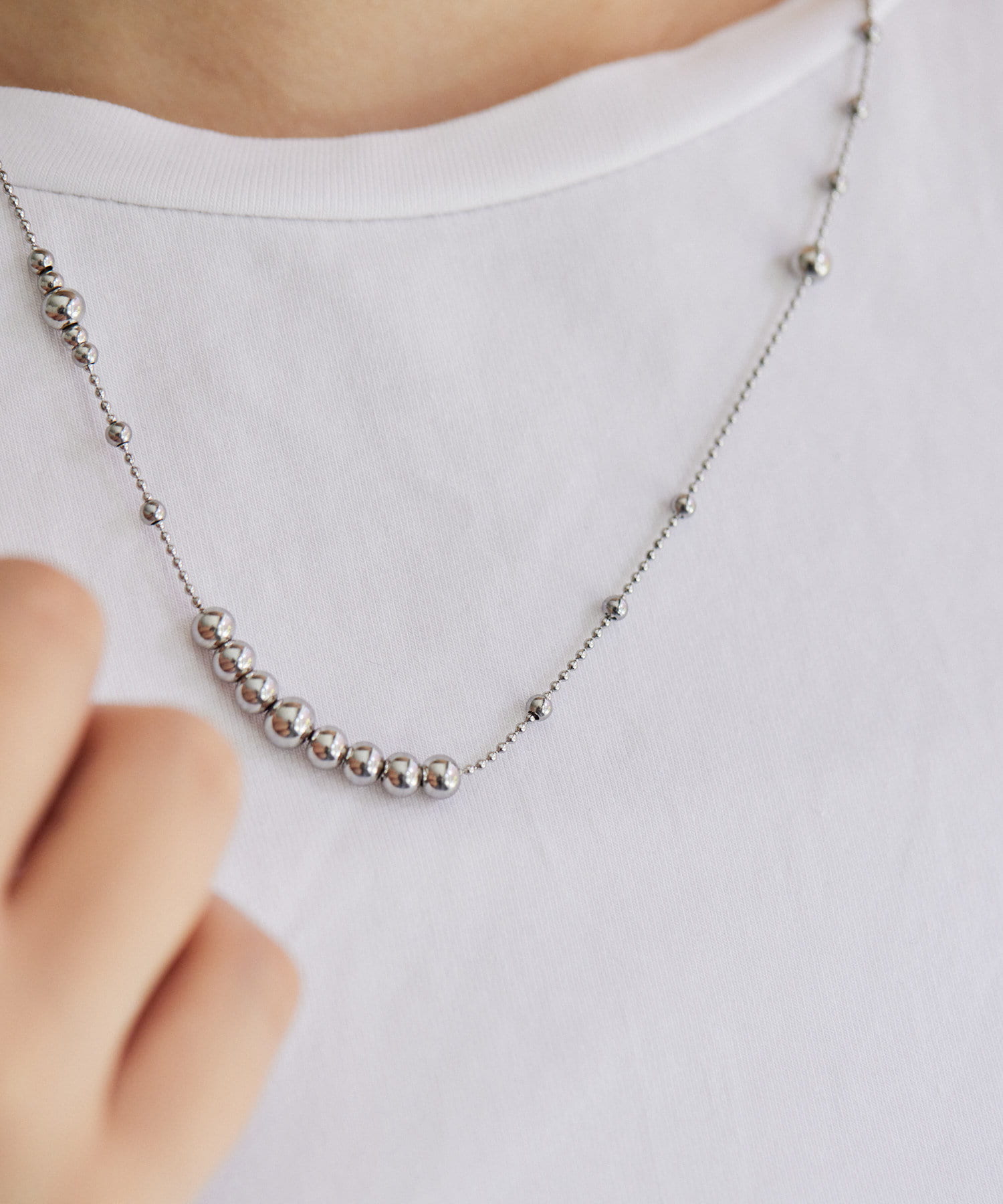 《金属アレルギー対応/ステンレス》ランダムボールチェーンネックレス