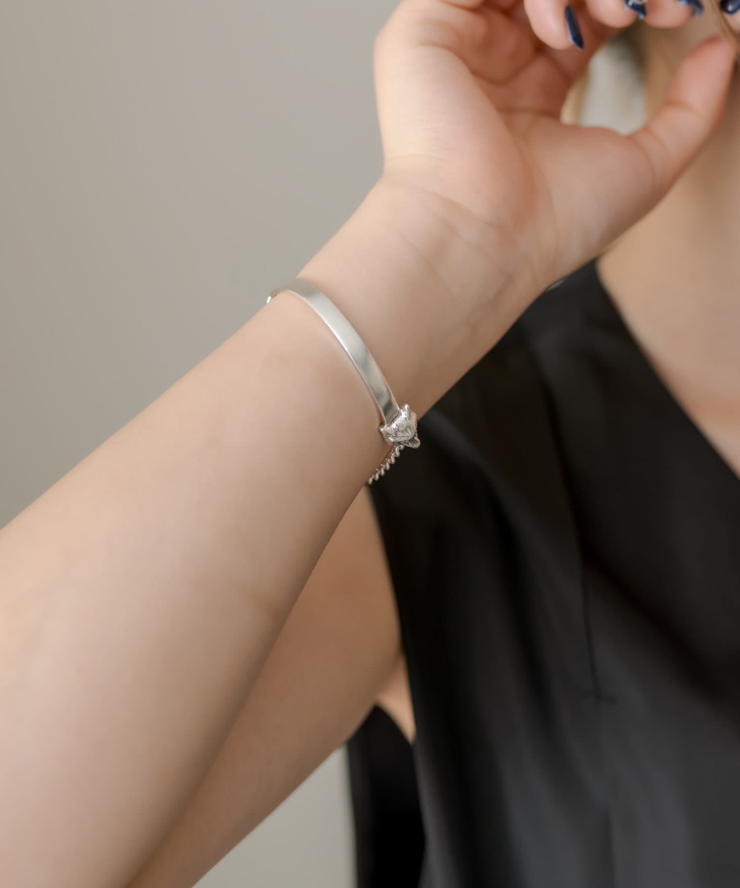C型バングルの先にキツネの顔が付いた、ユニークなデザインのバングル。