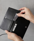 本革素材×横型が使いやすい。ミニマルなデザインでどこでも一緒に持ち歩けるモバイルウォレット。