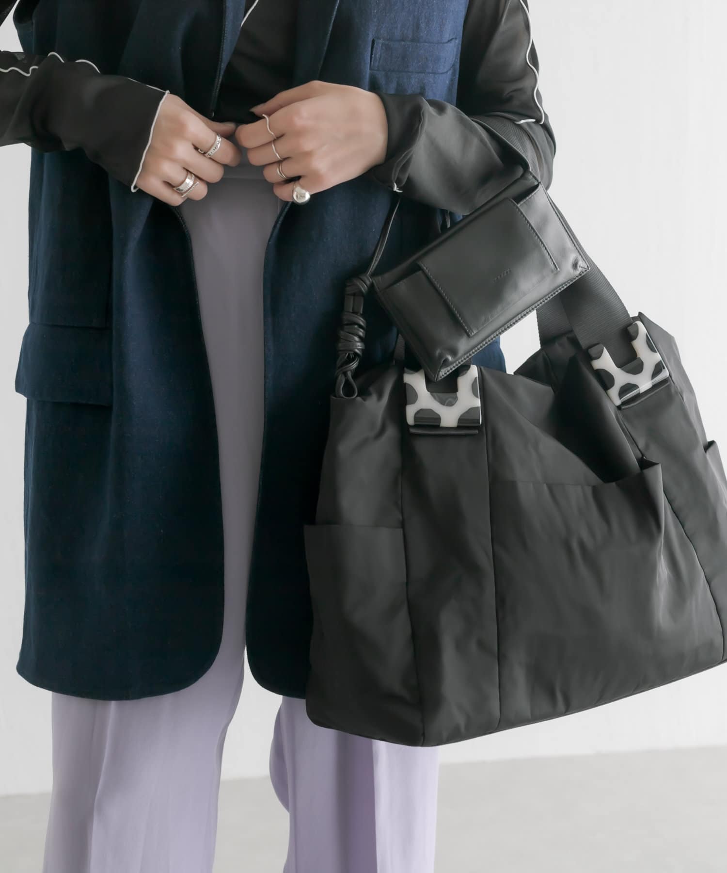斜め掛けや胸元にぶら下げたり、手持ちしたり持ち方のアレンジが可能です。