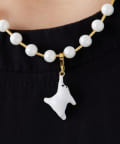 白クマのチャームは付け外しが可能なので外してシンプルなパールネックレスとしても着用可能。