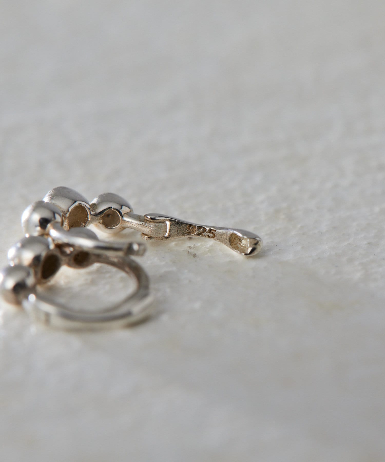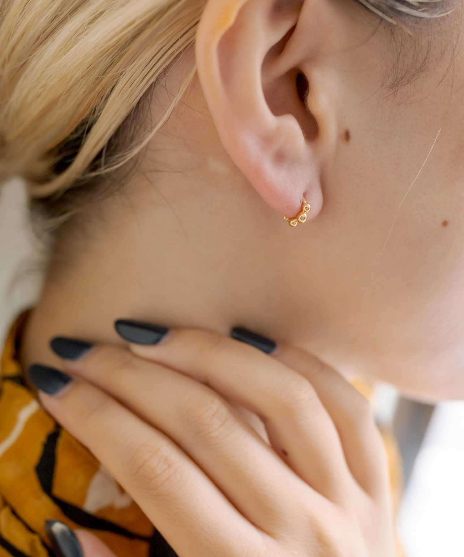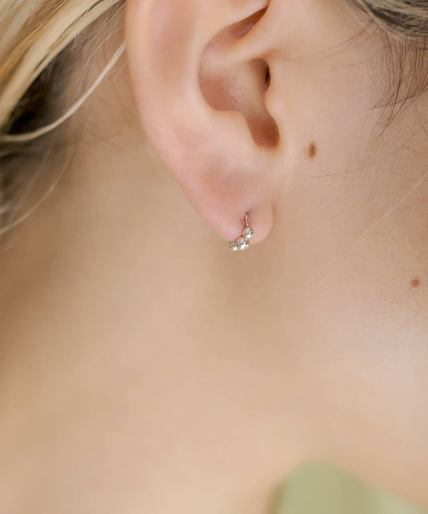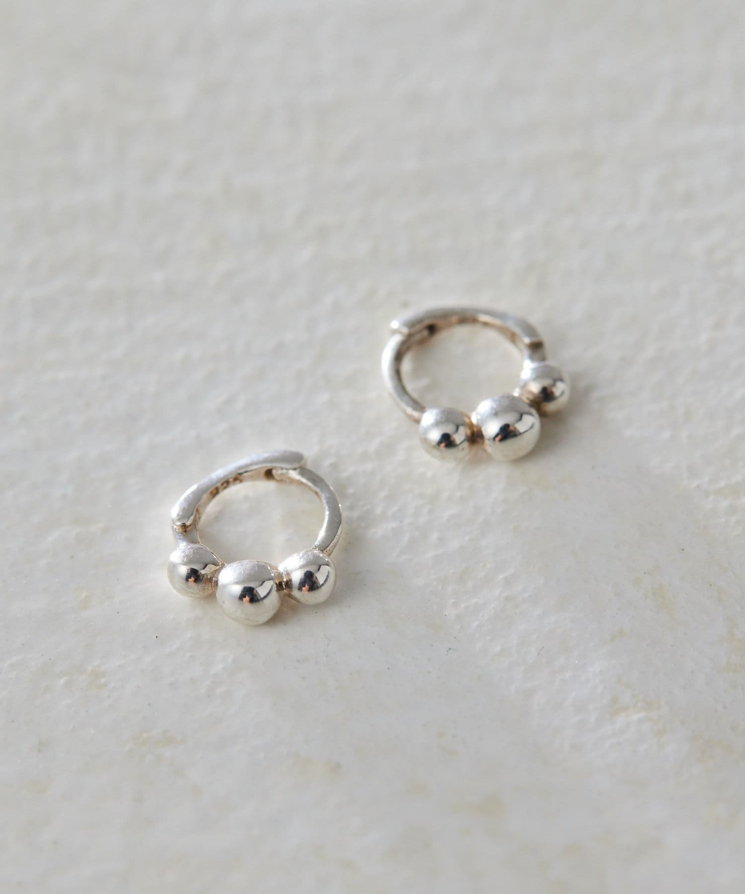 フープに沿って小さなメタルボールが3つ連なったデザイン。