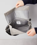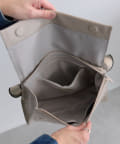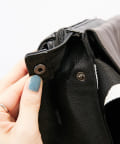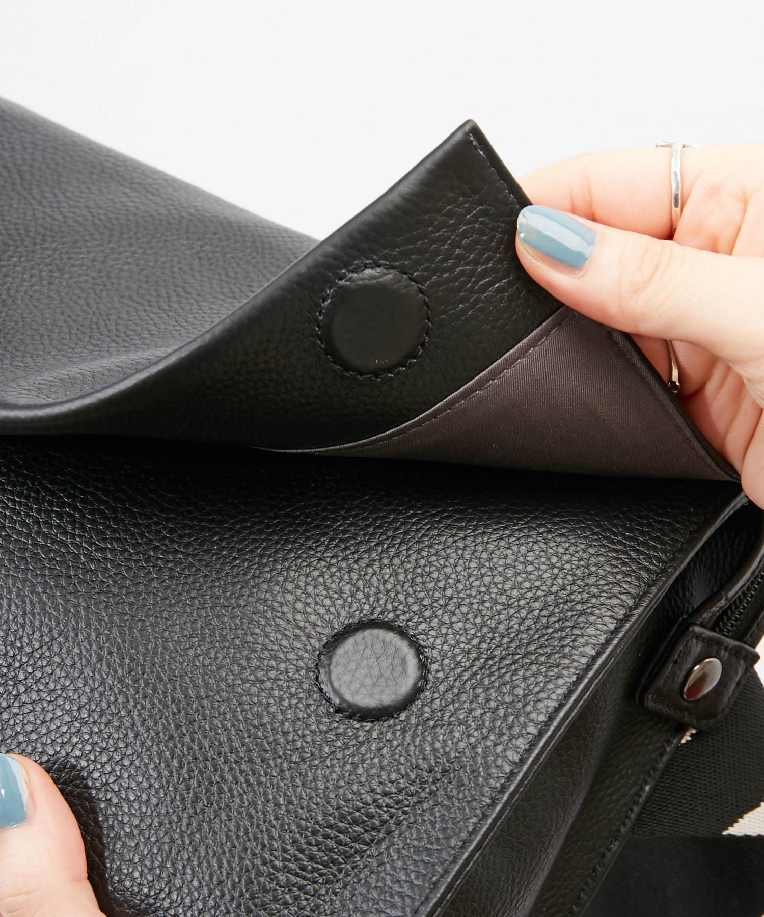 開閉部分にはファスナー付きで、フラップには隠しマグネットボタン付き。