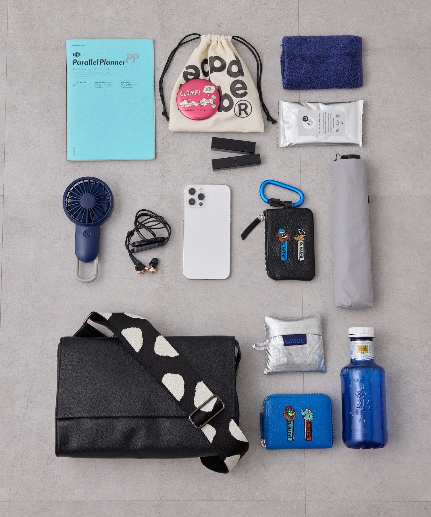 • 500mlペットボトルや長財布も収まる安心の大きさです