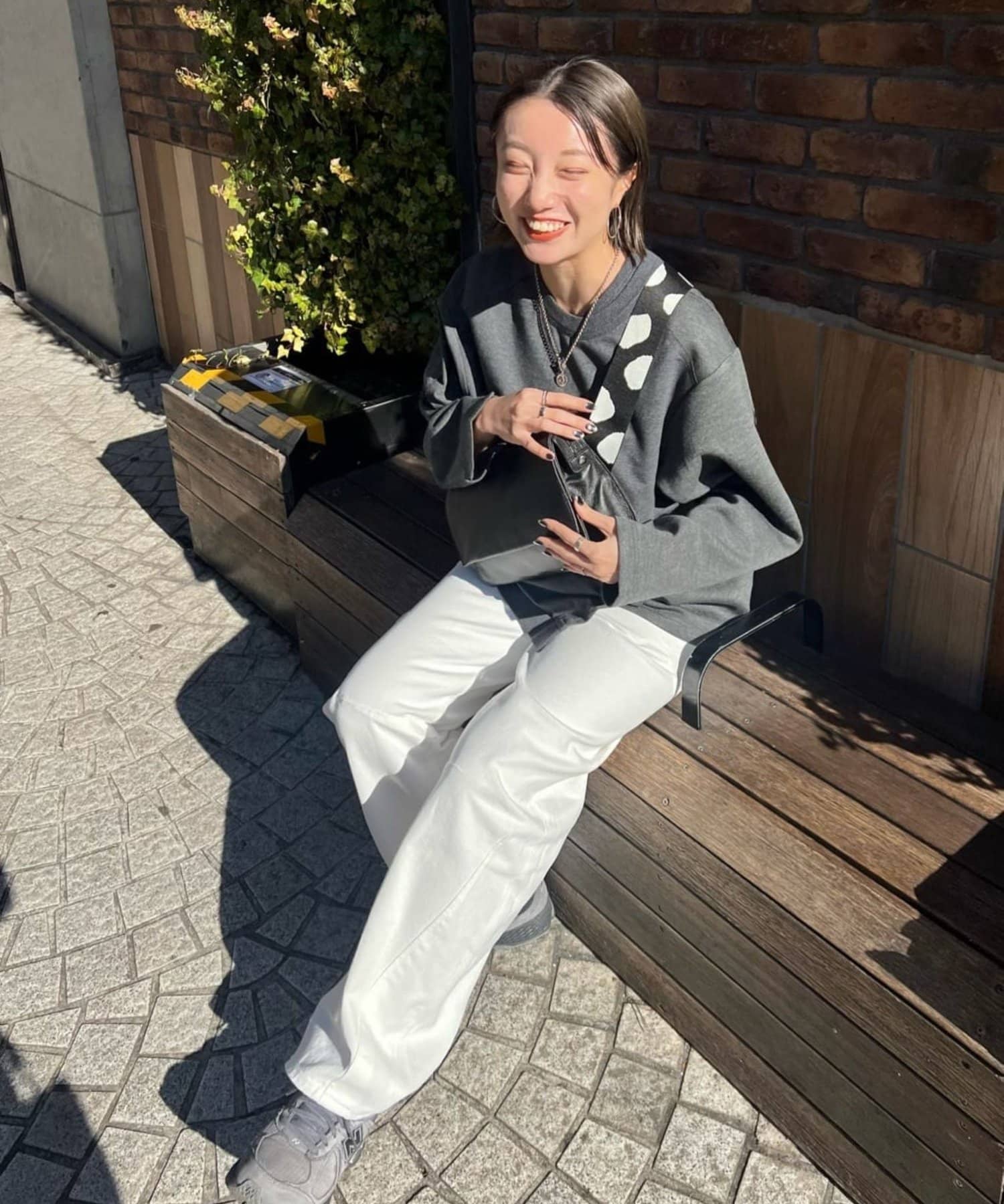 色物トップスの多い私にはこのグレーが主張し過ぎず、