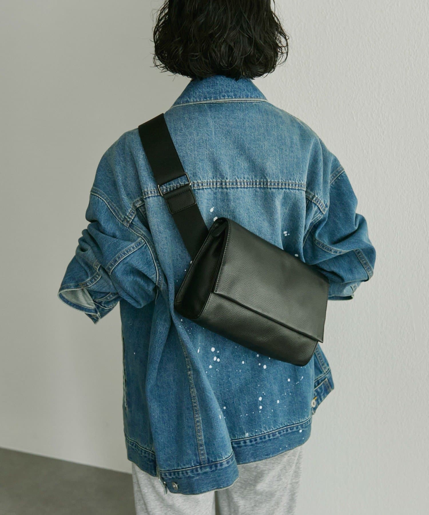 柄ワイドテープショルダーバッグ《本革/軽量470g/ボディバッグ/500mlペットボトルも入る!/ユニセックス》