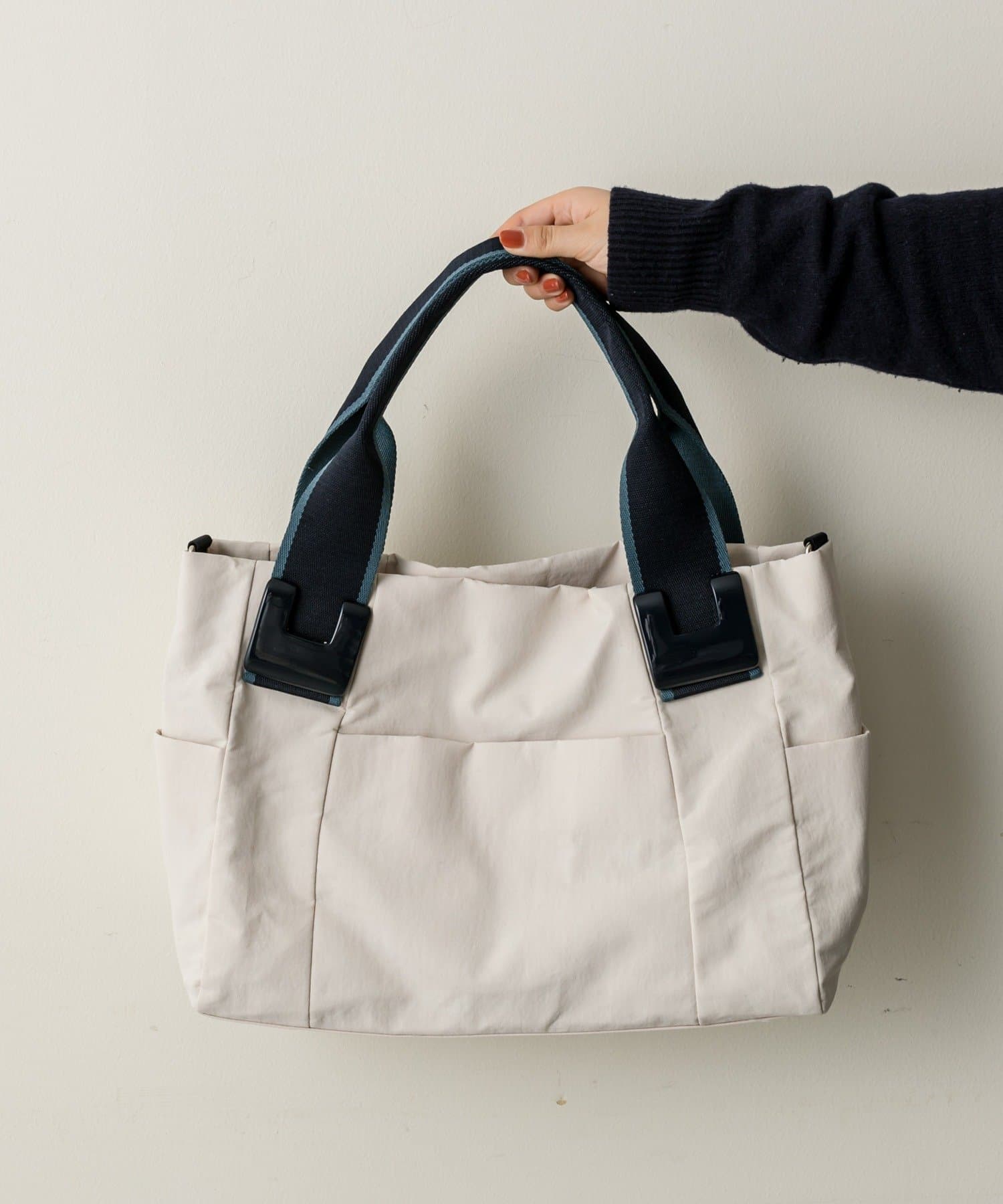 購入場所:パルクローゼットSサイズの使い勝手が良かったのでMサイズも購入。ポケットが充実しているので少し重く感じるが便利です。通勤時サイドポケットにパスケースを入れているが、マグネットがあるためにさっと出してさっとしまう事ができない。サイドのマグネットはない方がいい。お弁当も折りたたみ傘も入るサイズで助かります。内布のオレンジ色がアクセントになるだけではなく、中の物が見やすい。