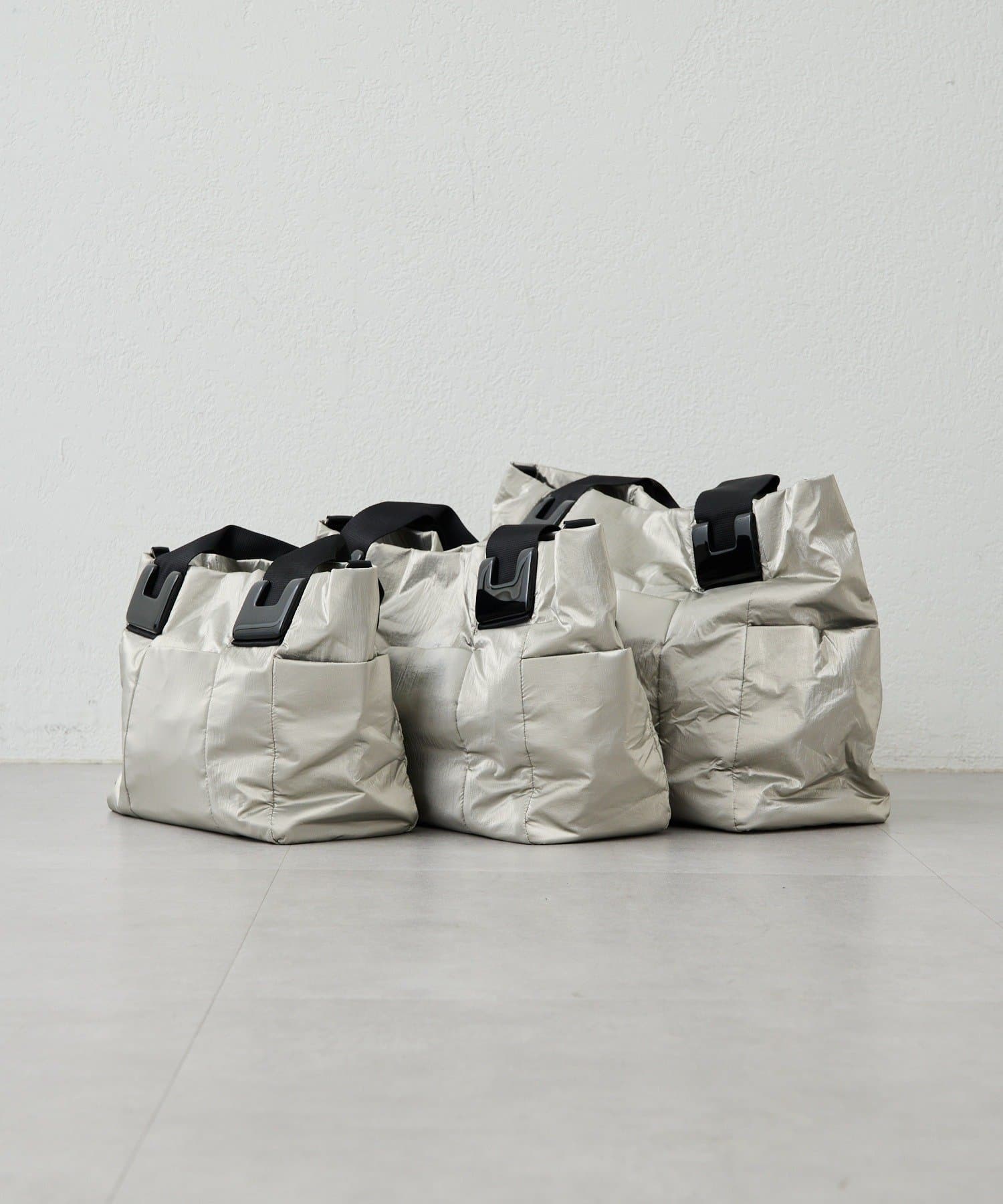 シルバーその他1:白っぽいシルバーの本体にブラックの樹脂パーツ。やや薄手の生地。※撥水ではありません。
