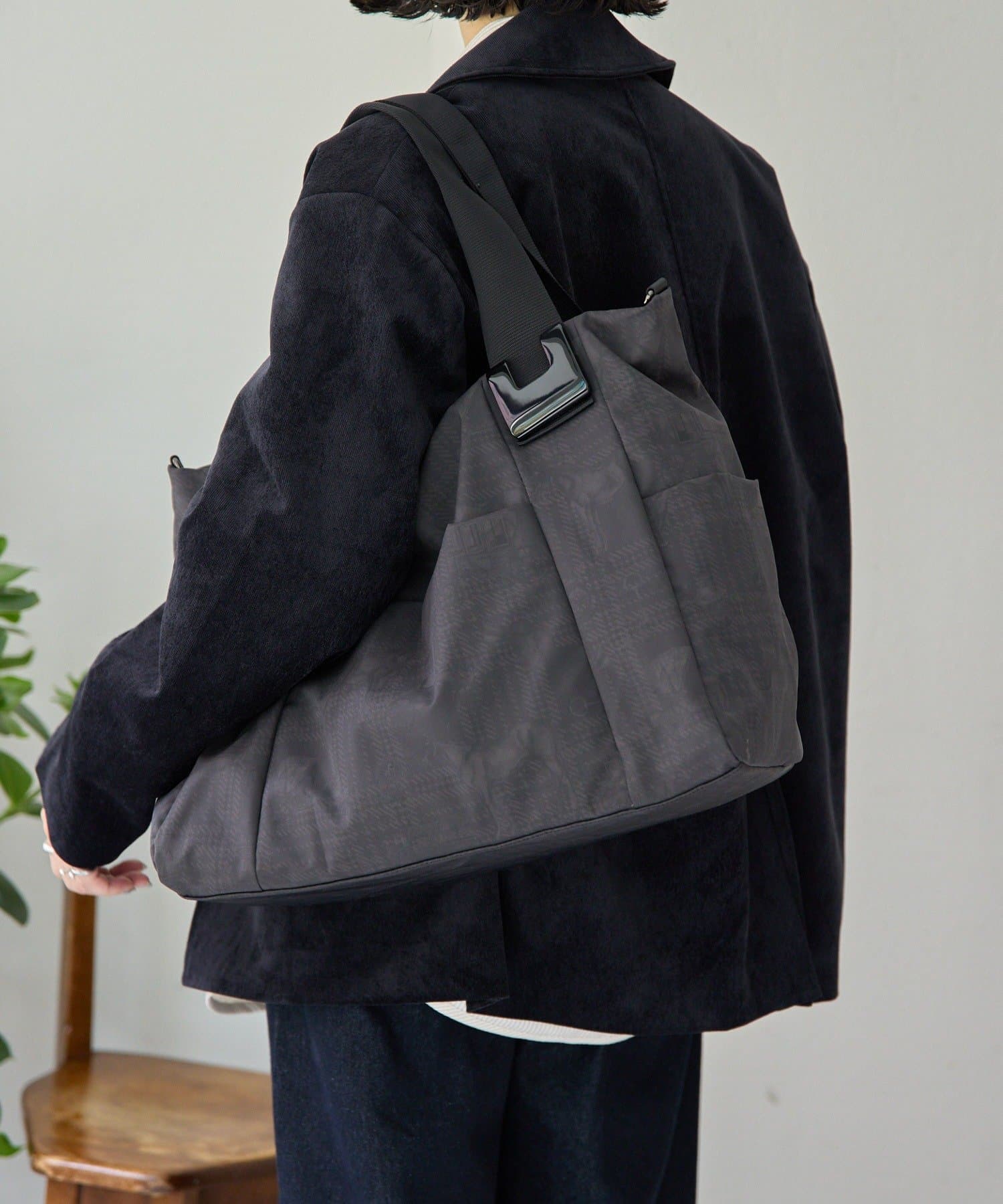 《1、2泊旅行や出張におすすめ》ショルダー付き/樹脂パーツトートバッグLサイズ