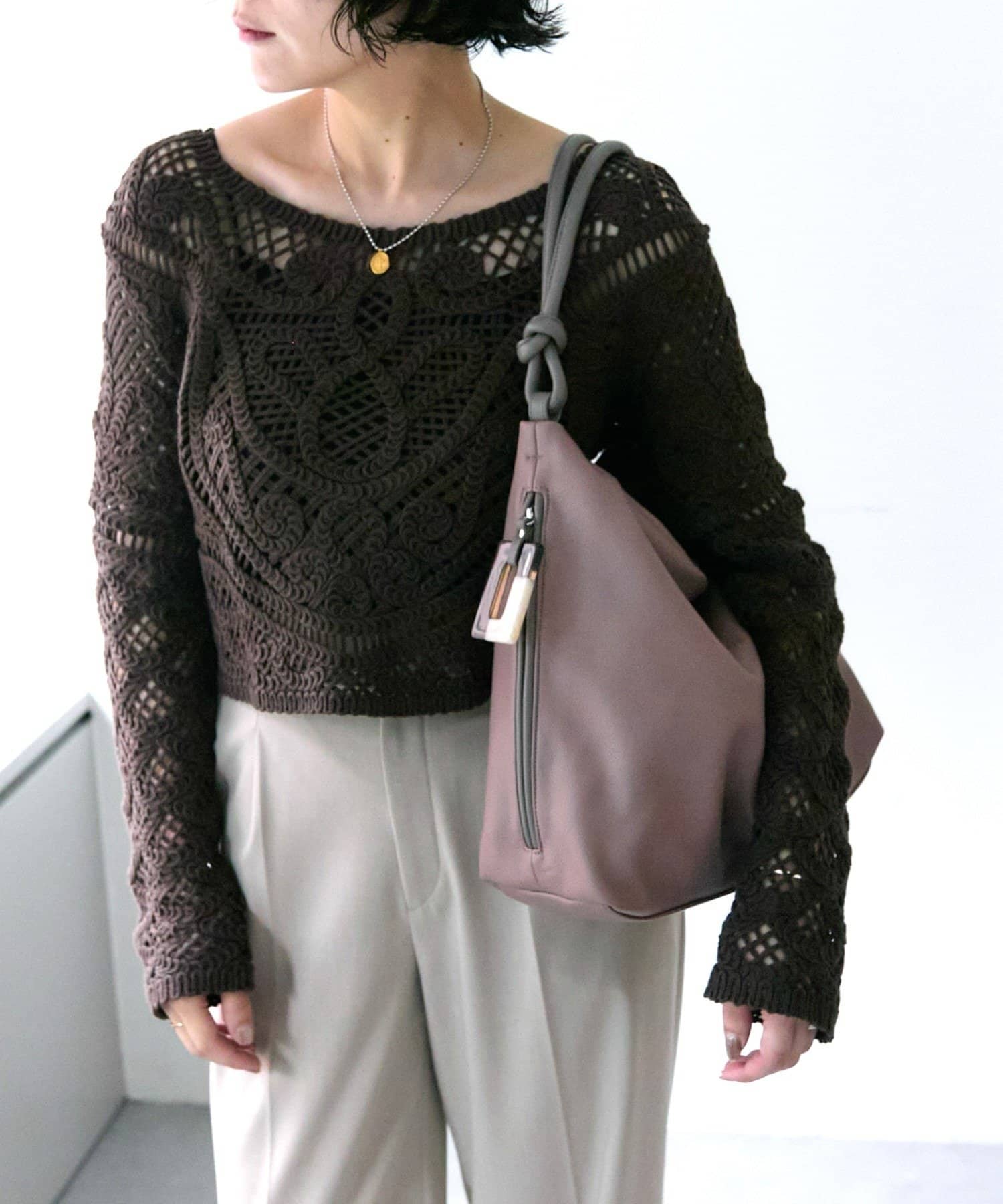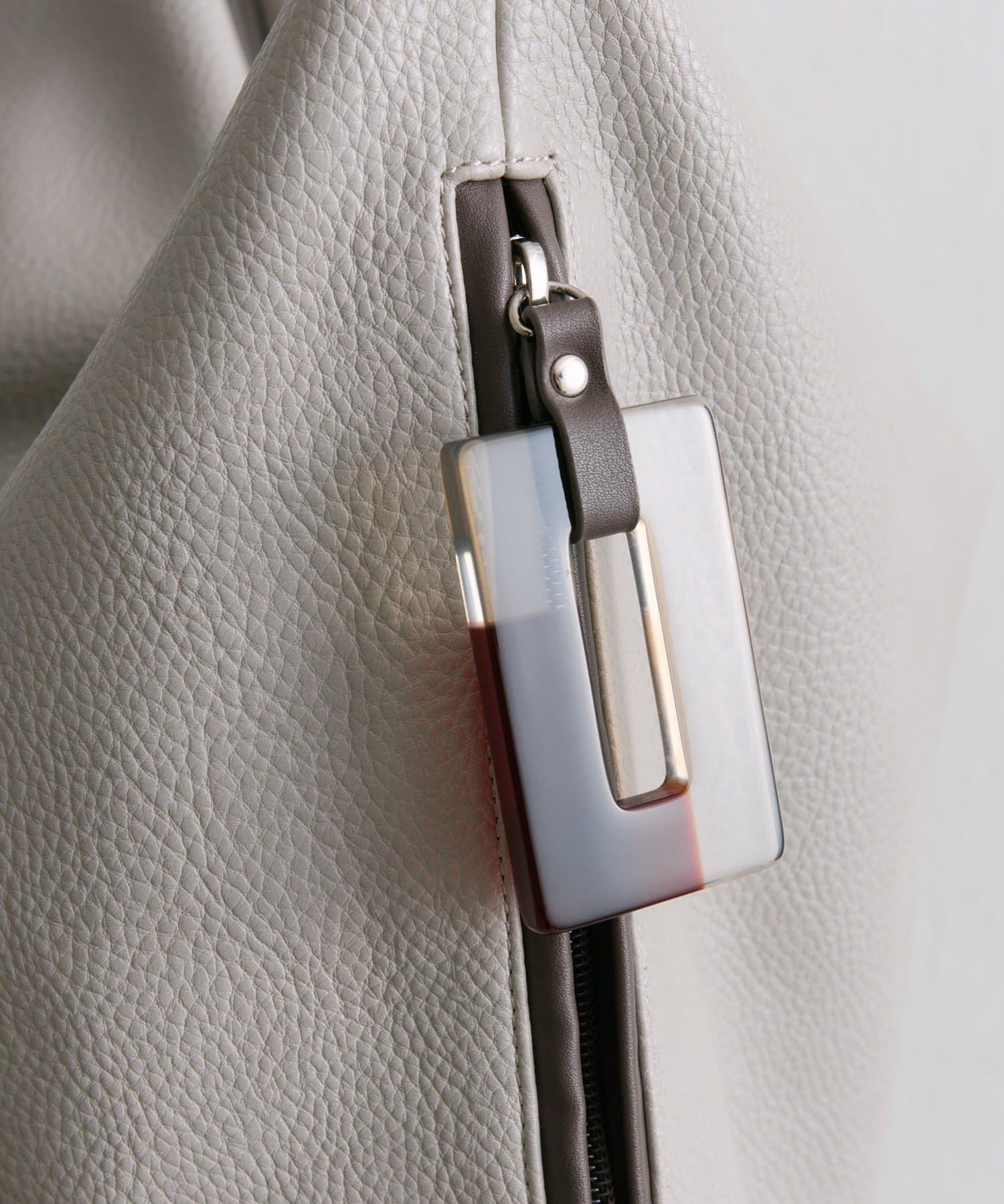 きらりと光る樹脂パーツがアクセサリーのように目を惹くワンハンドルのバッグ。