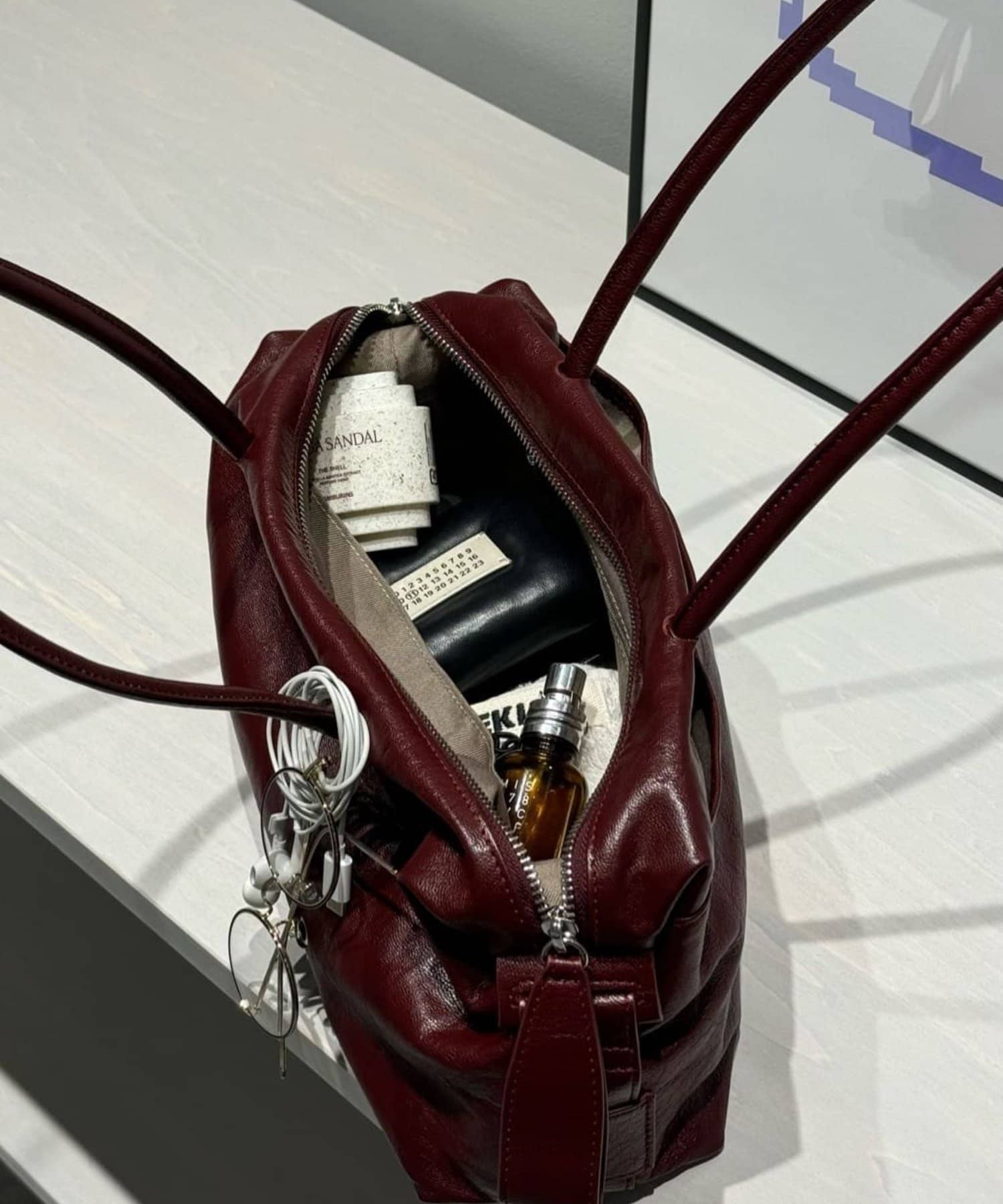 待った甲斐がありました。程よいくたっと感がいい感じです。見た目より物が入ります。深いワインボルドーがめっちゃ可愛い〜