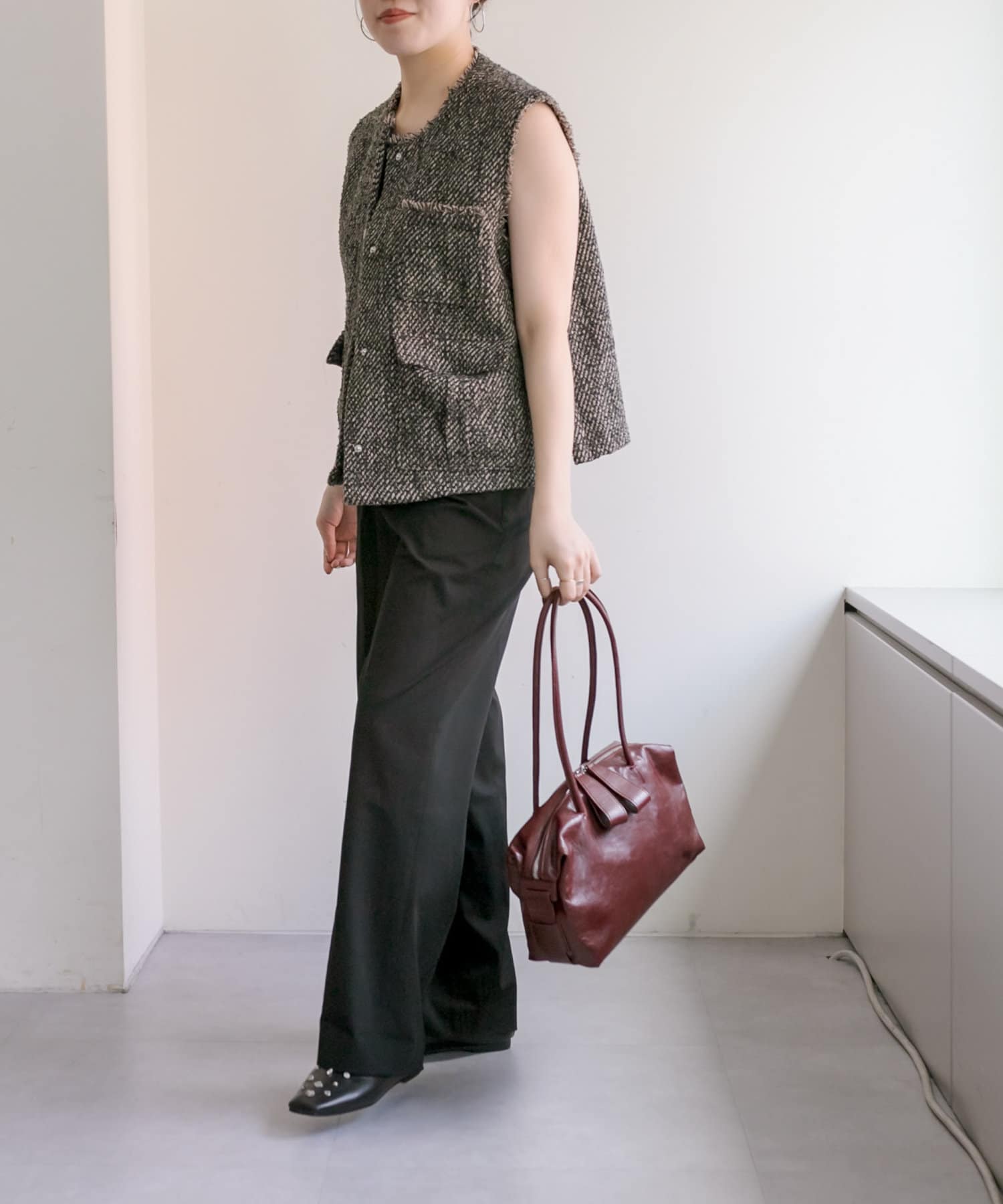 合わせやすい色でもあり、アクセントにもなる、深みのあるボルドー。