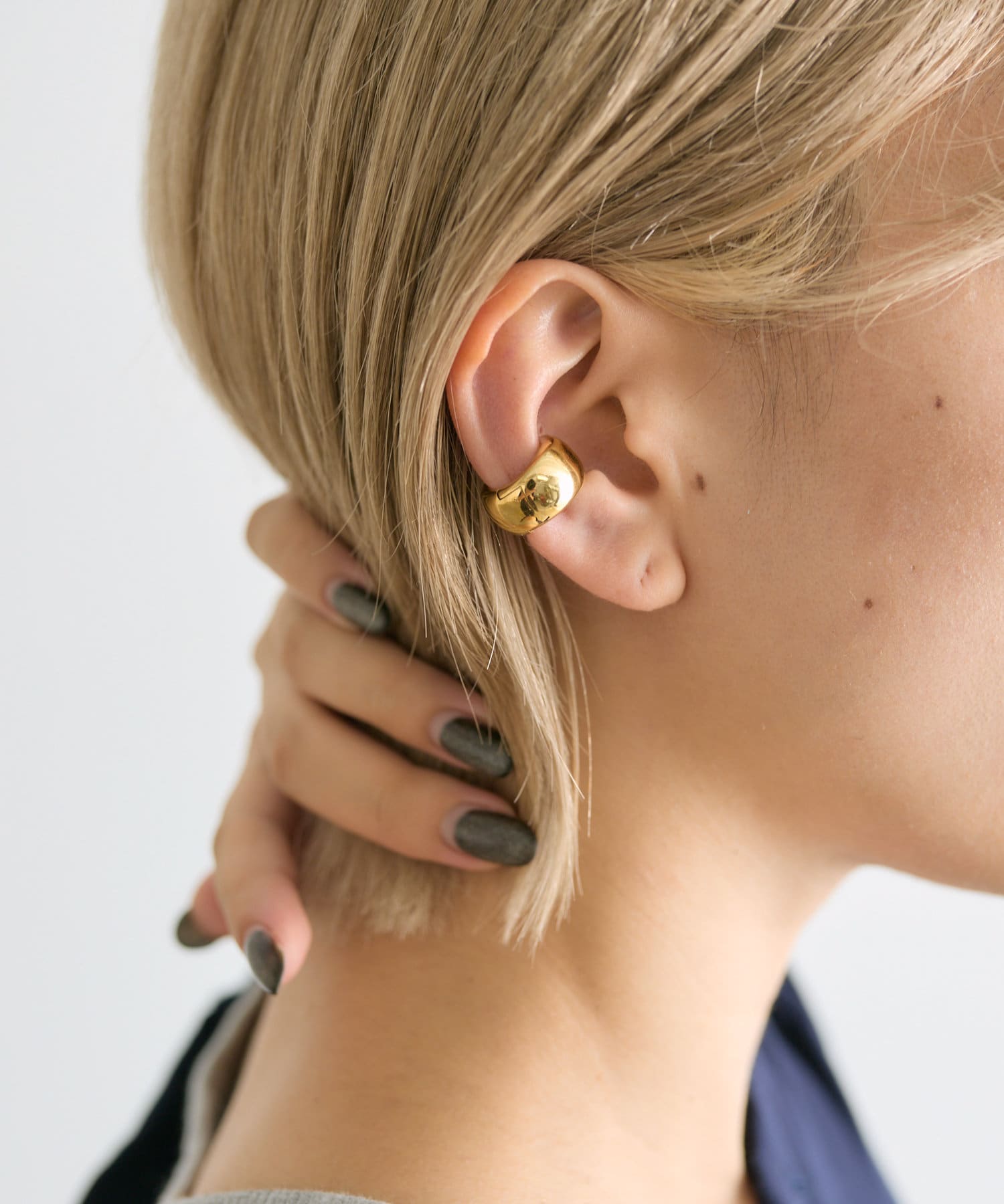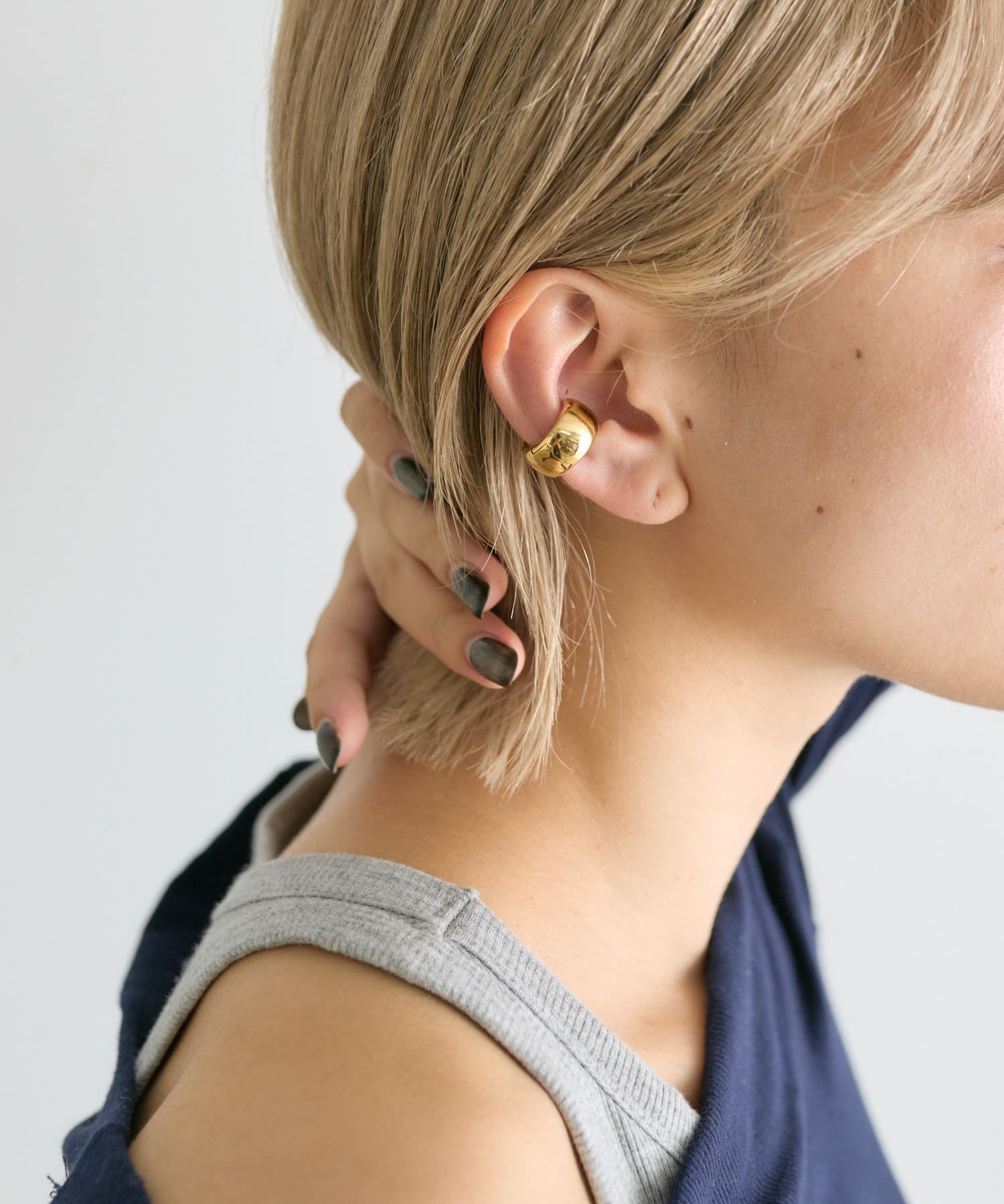 エッジを削いだぽってりとしたフォルムがキュートなイヤーカフ。