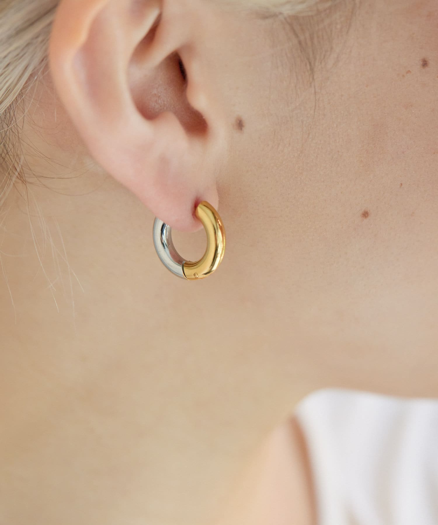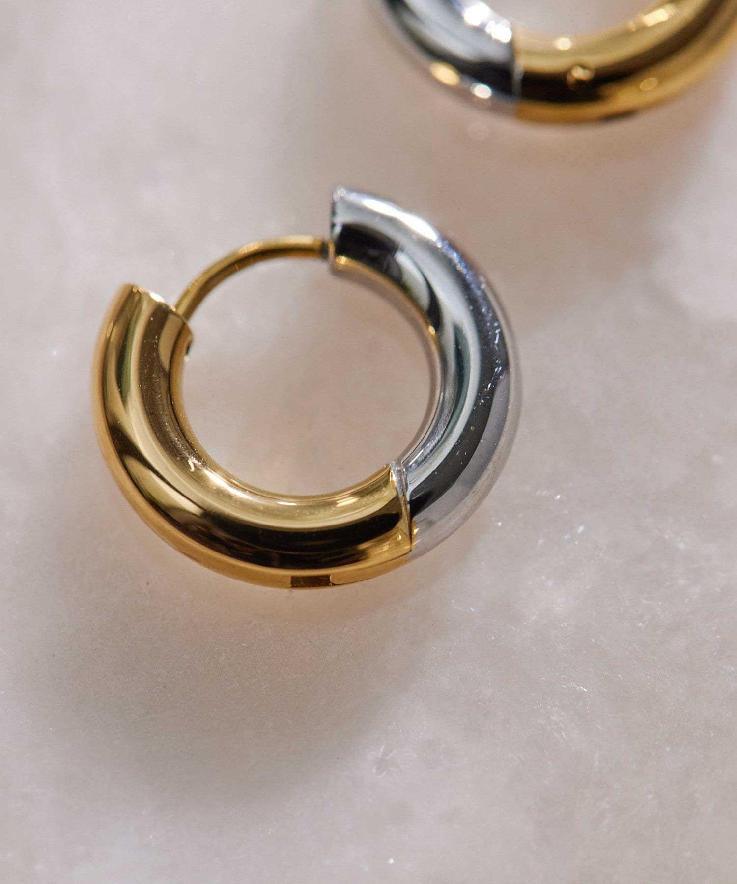 《金属アレルギー対応/ステンレス/キャッチレス》18mmバイカラーフープピアス