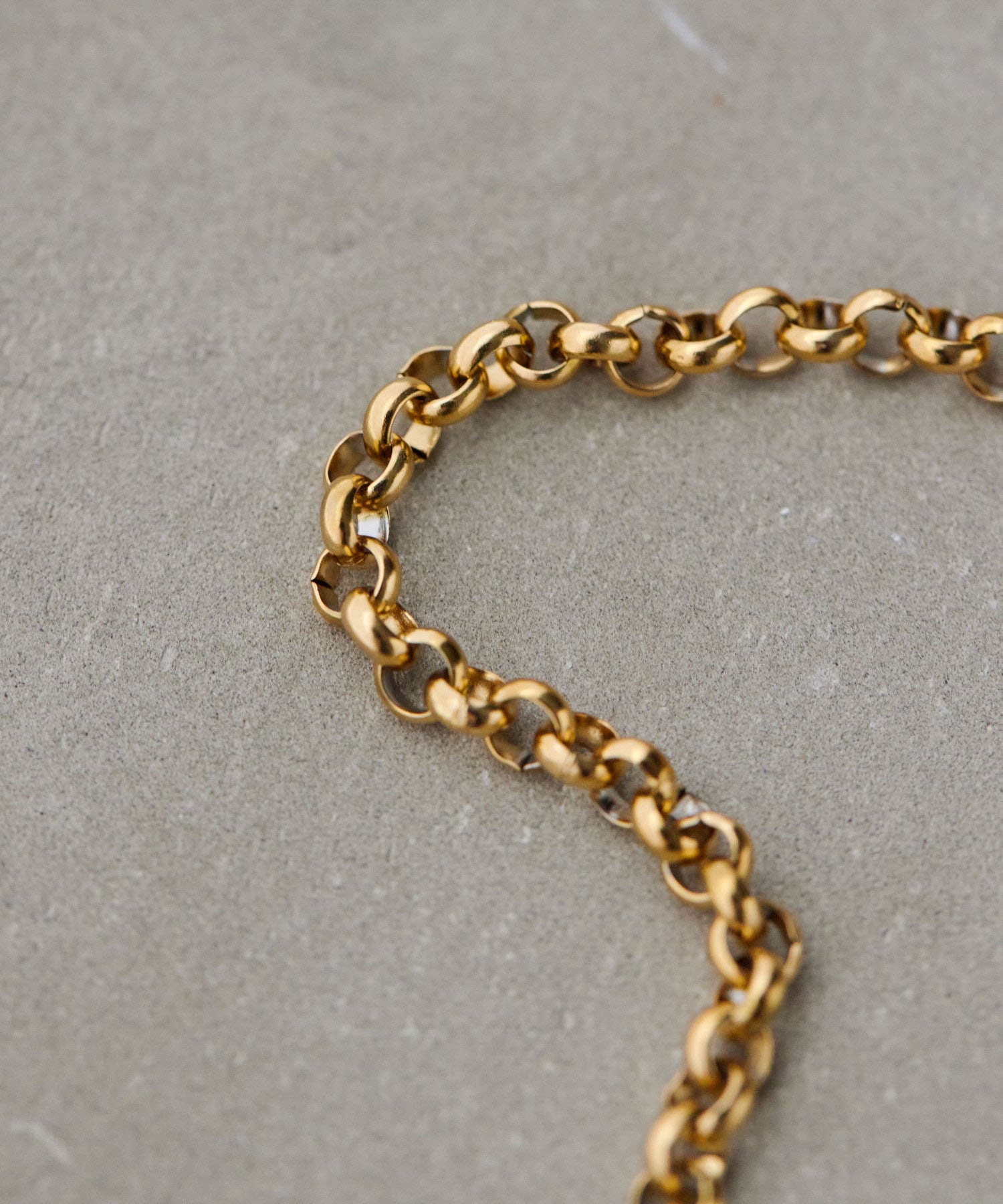 • ゴールド/やや幅広コマを連ねたチェーンが首元に艶めきをプラス