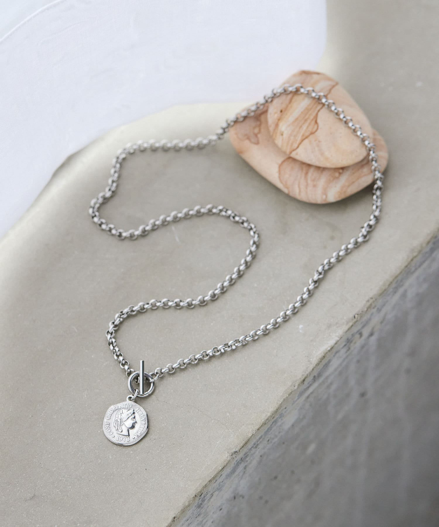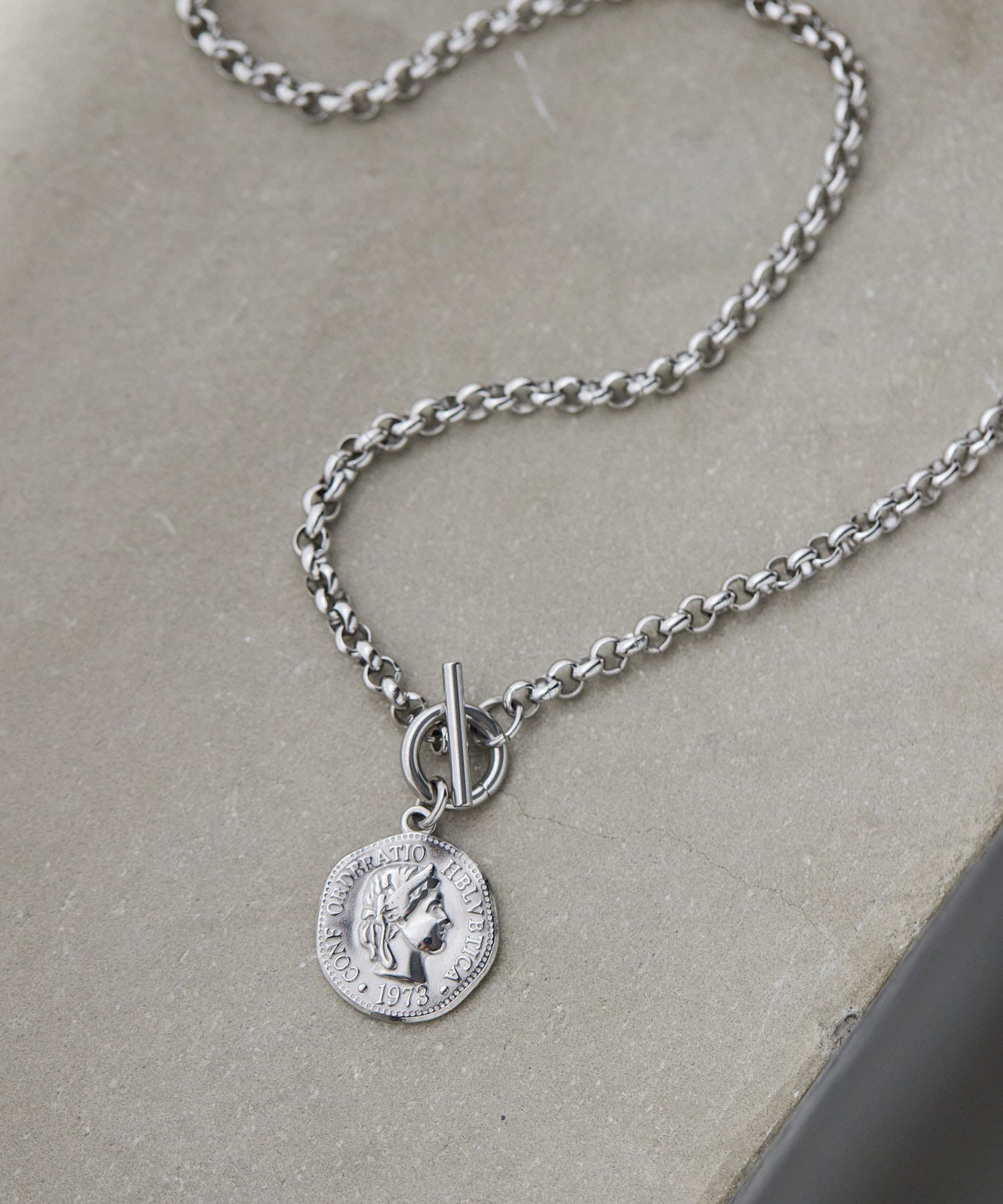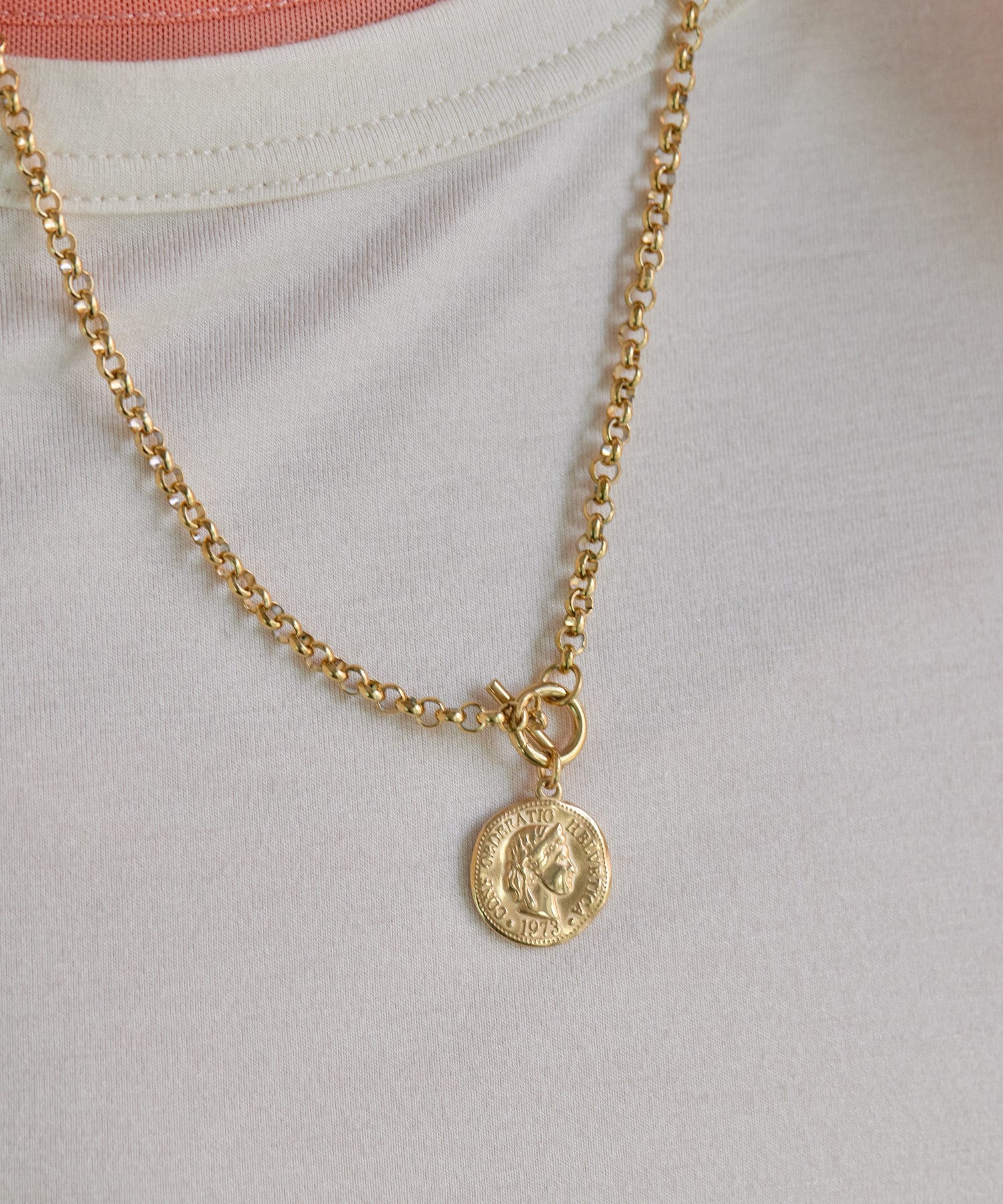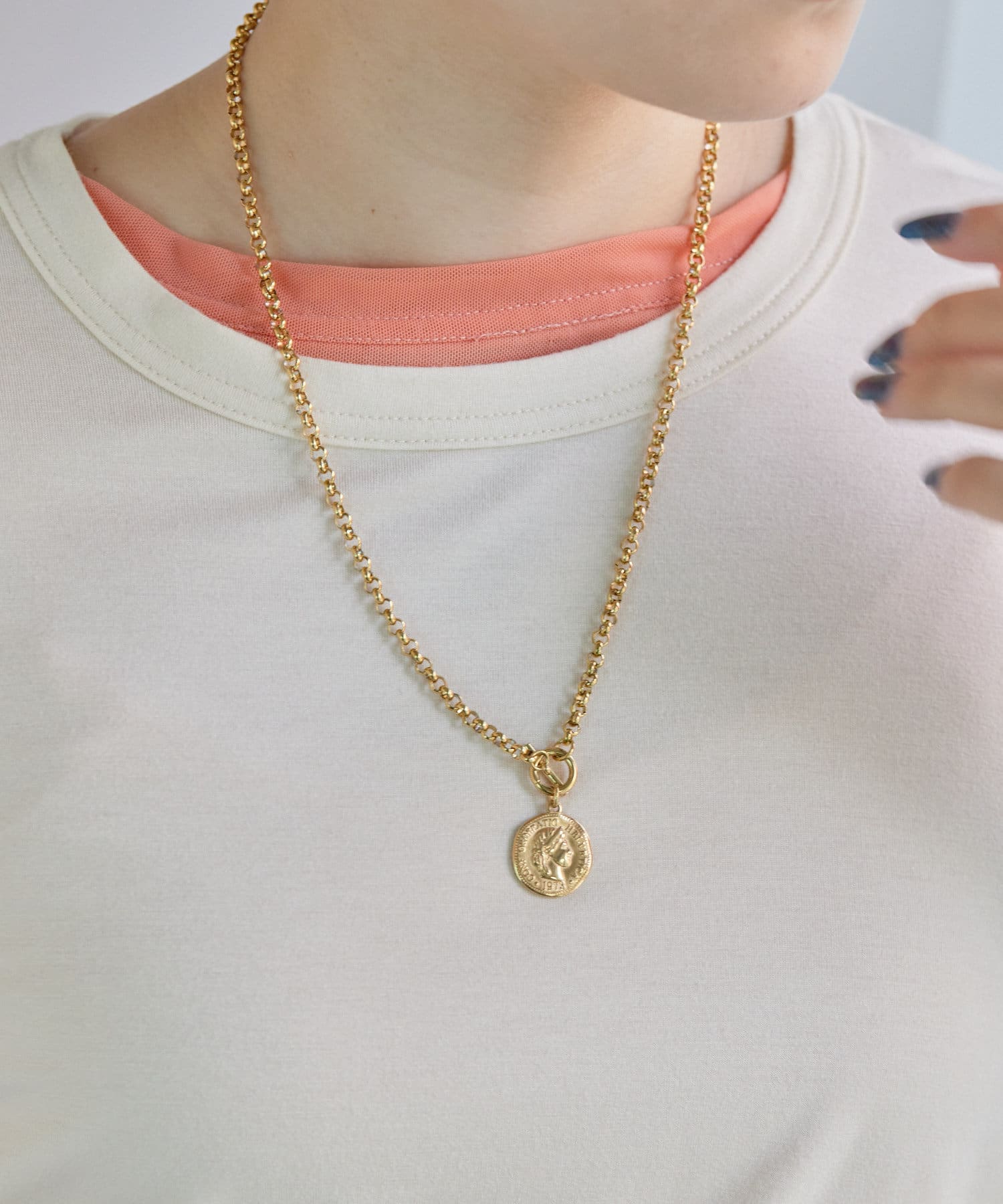 コインとチェーンの存在感が絶妙で、シンプルな白Tや肌にピッタリ!これからの季節はダークカラーのハイネックに着用してもポイントになりそうでたくさん使い回したいです。