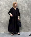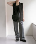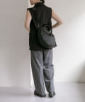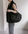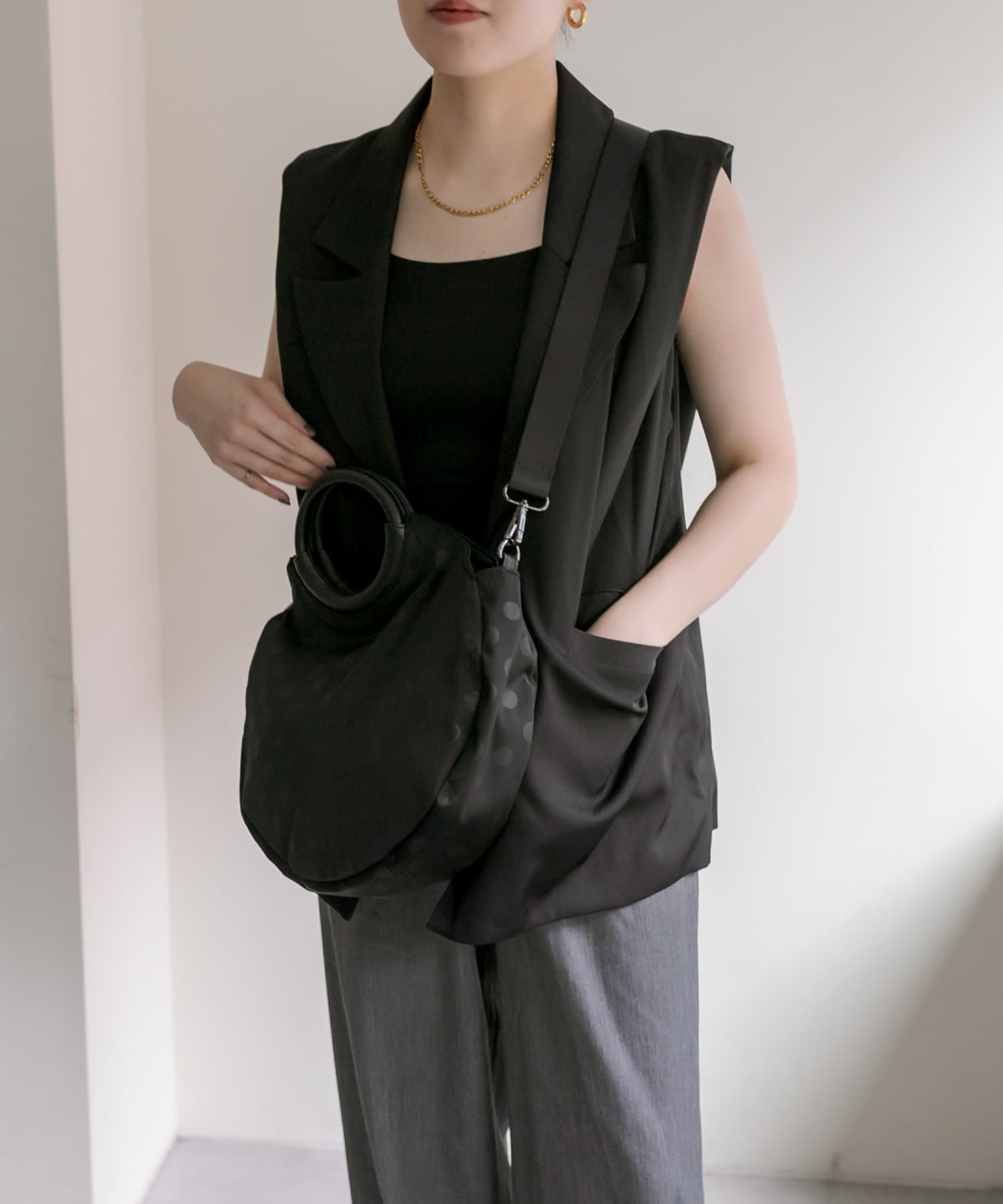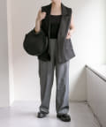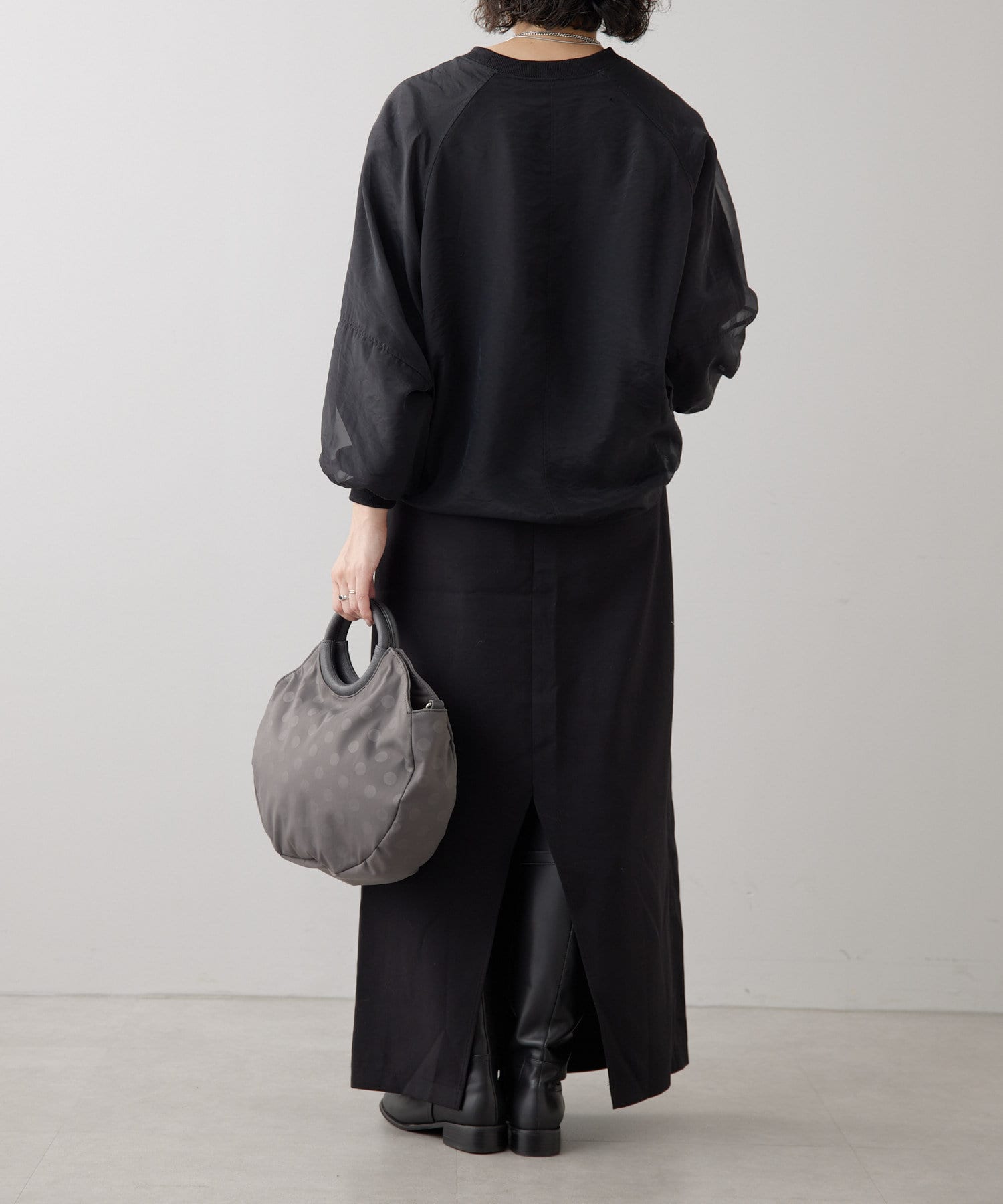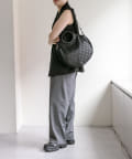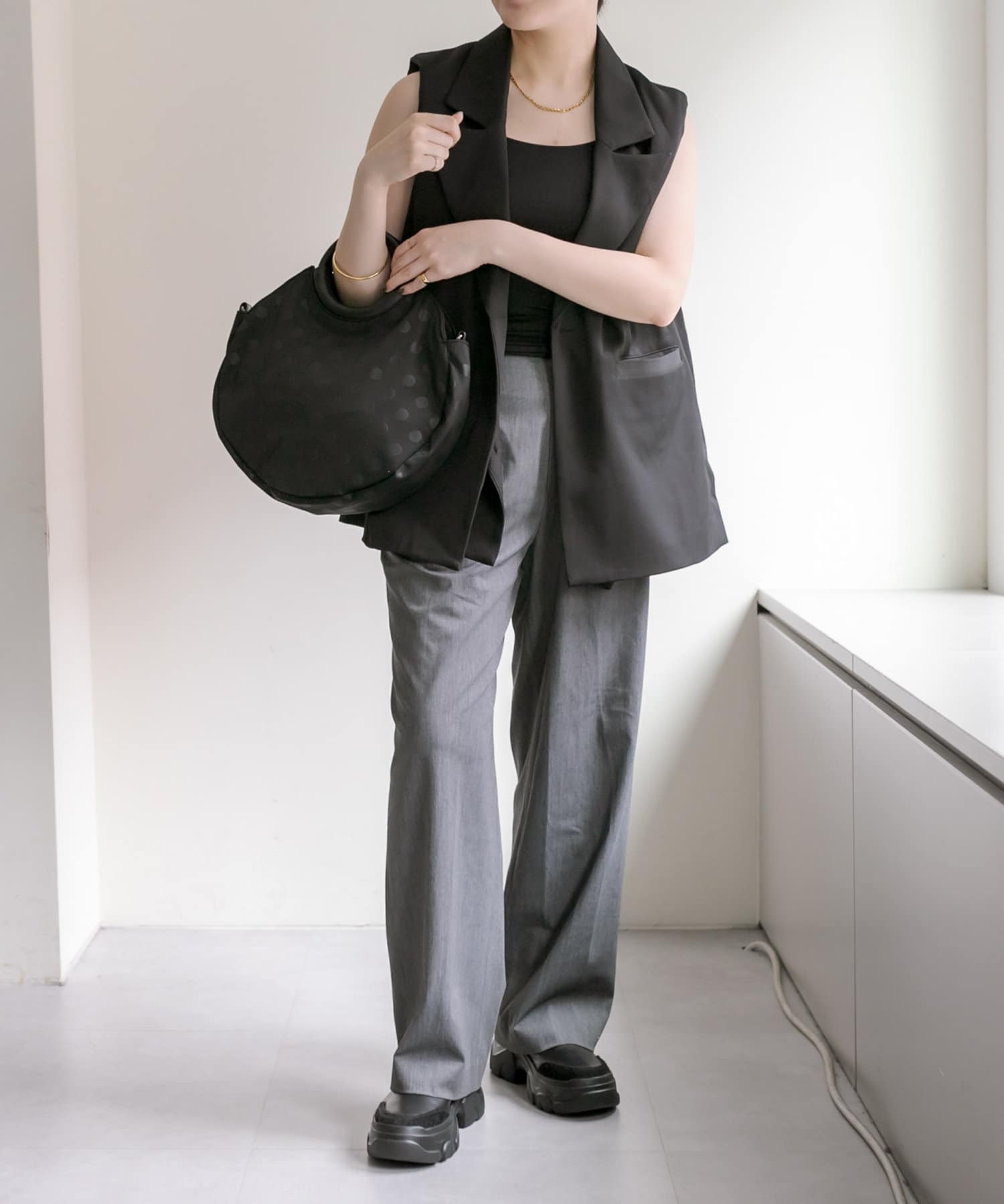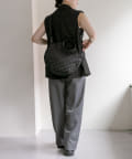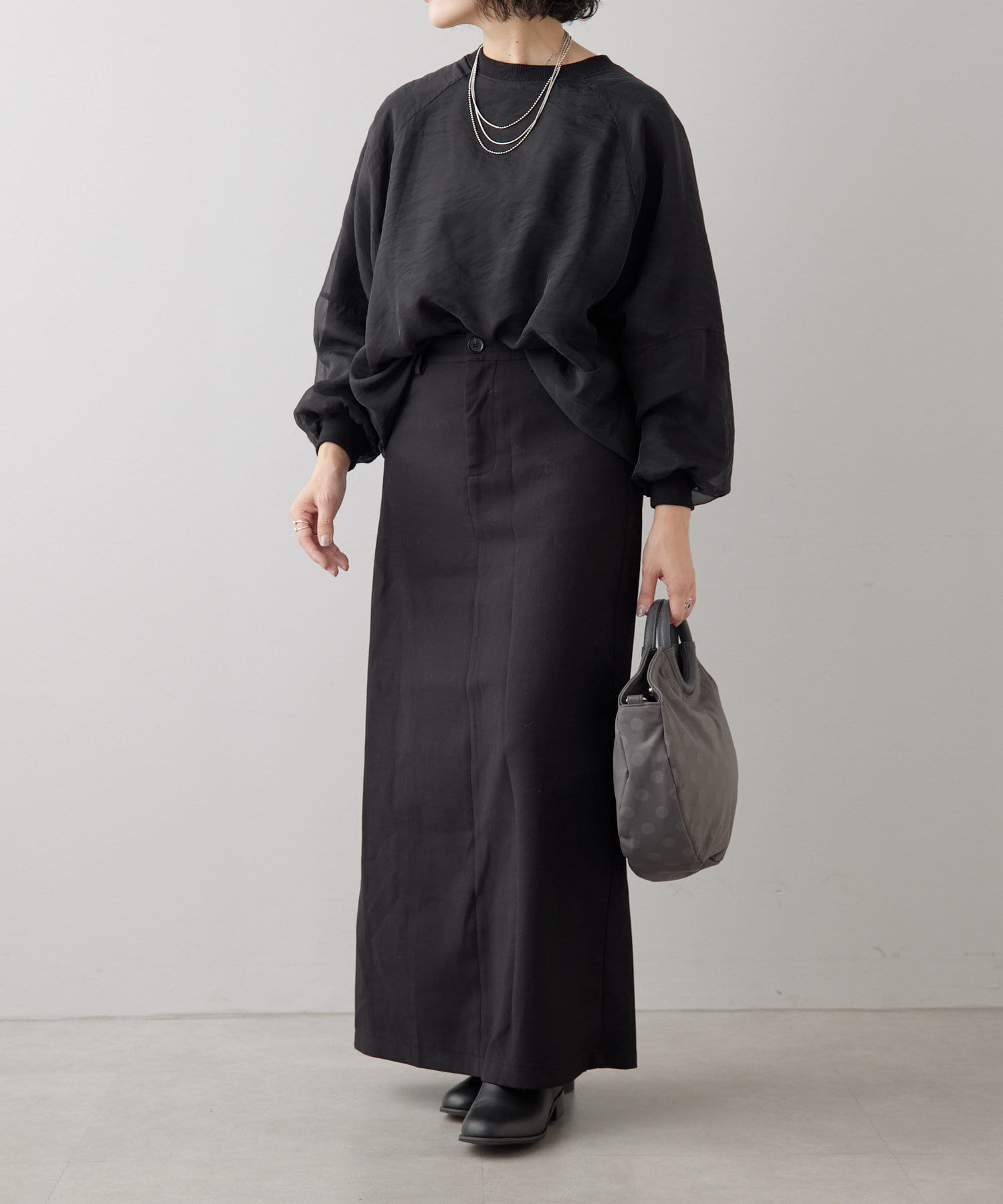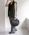 カラーはブラックですっきりとまとめ、異素材をバランスよくMIX。