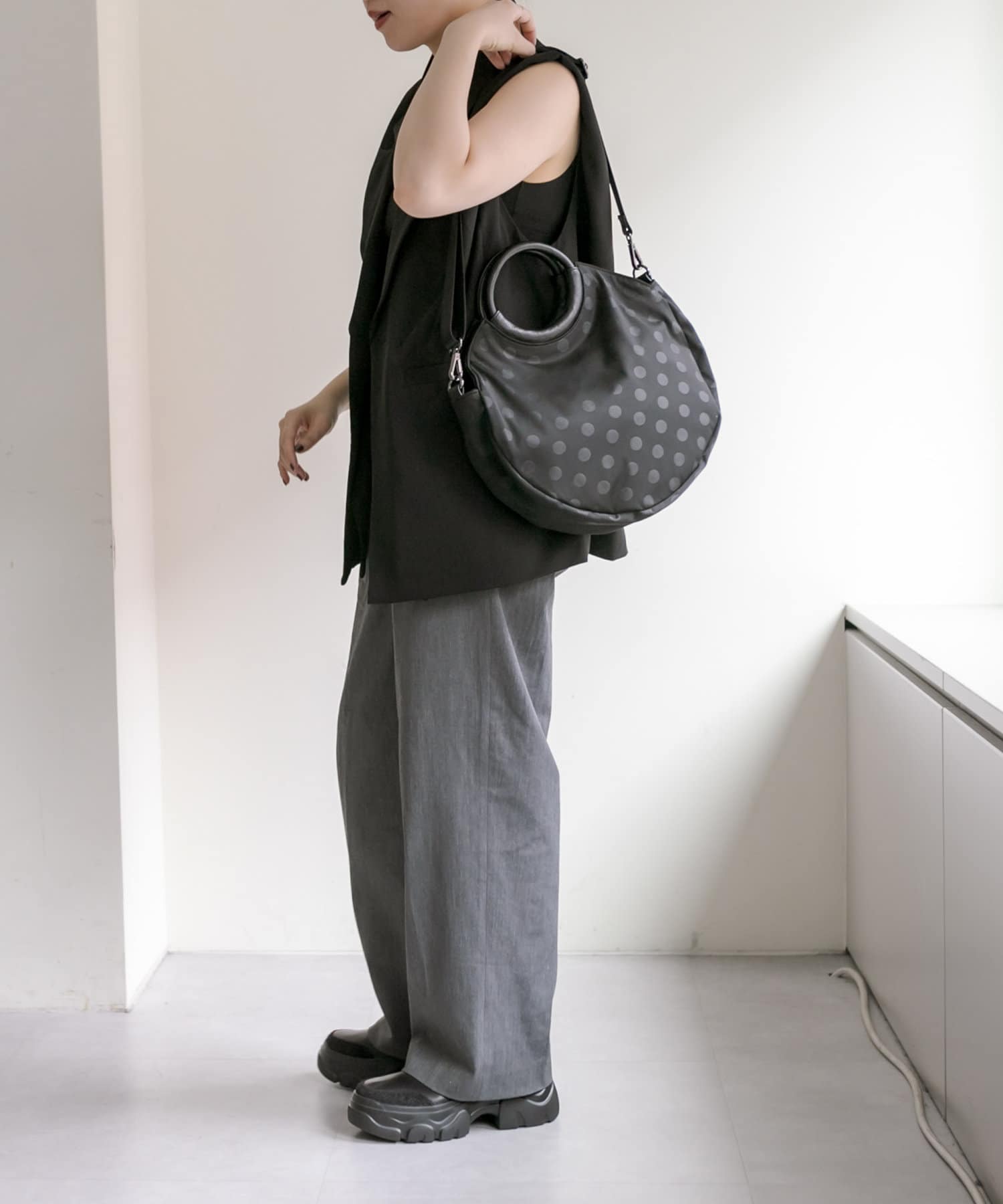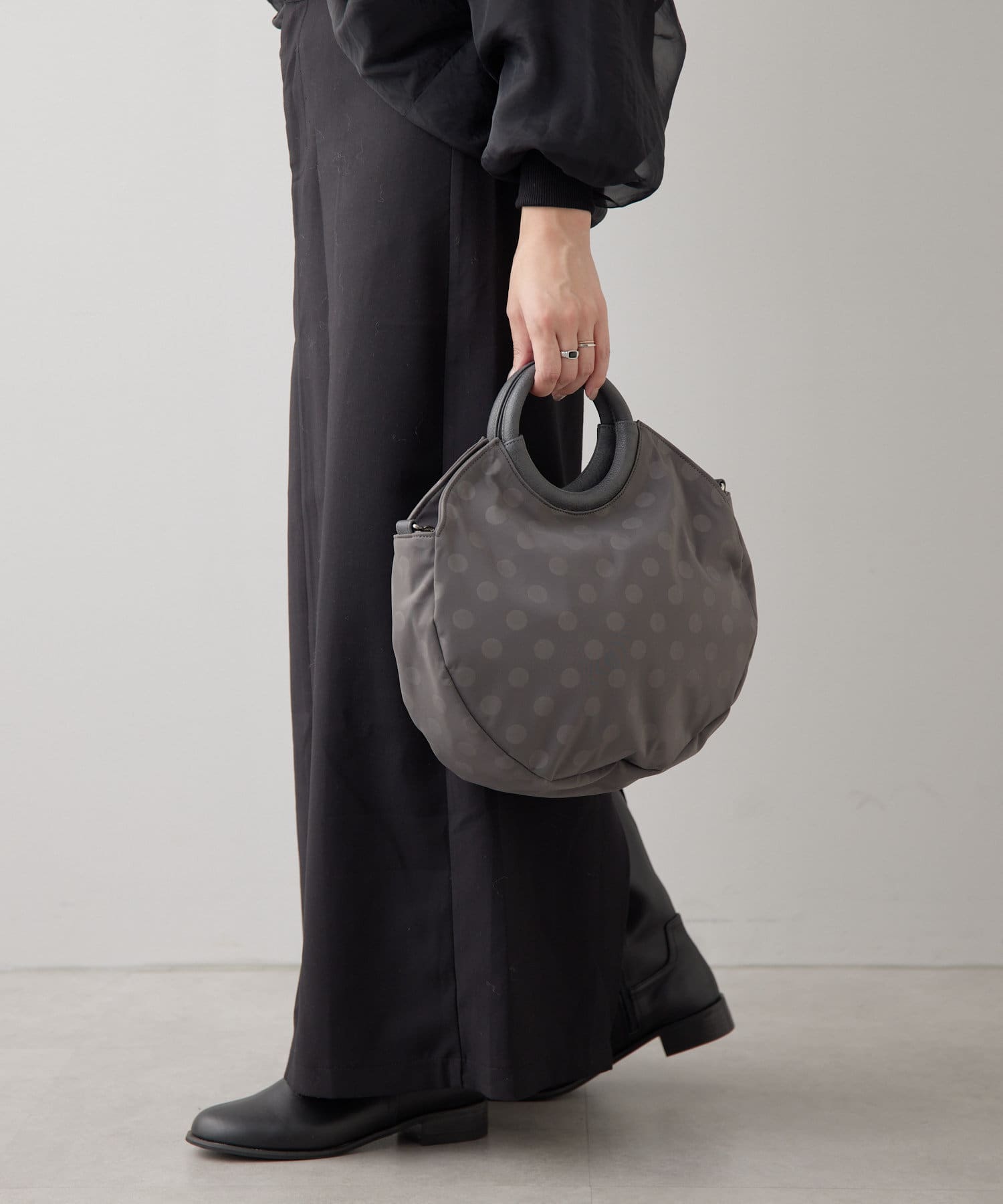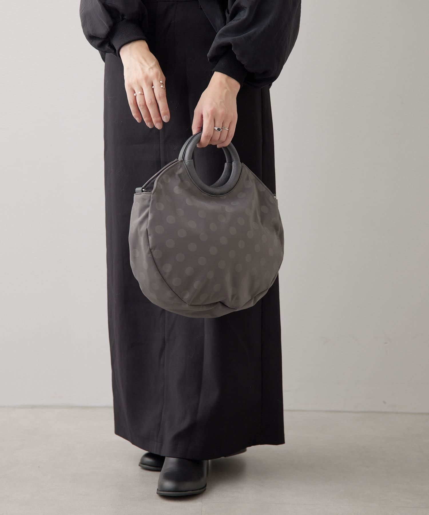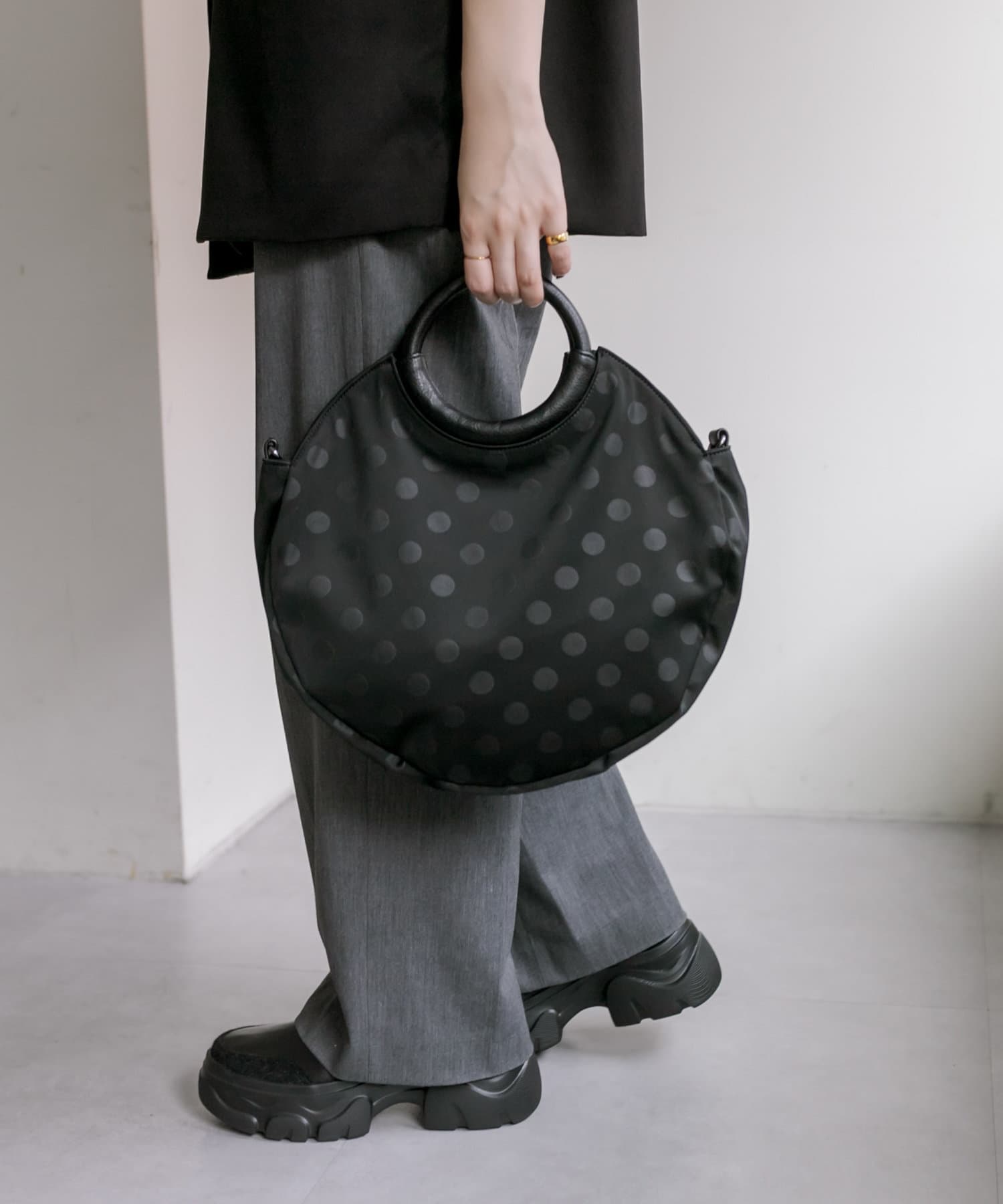 ・ブラックのドット柄で、モードからカジュアルまで幅広いテイストとの相性◎