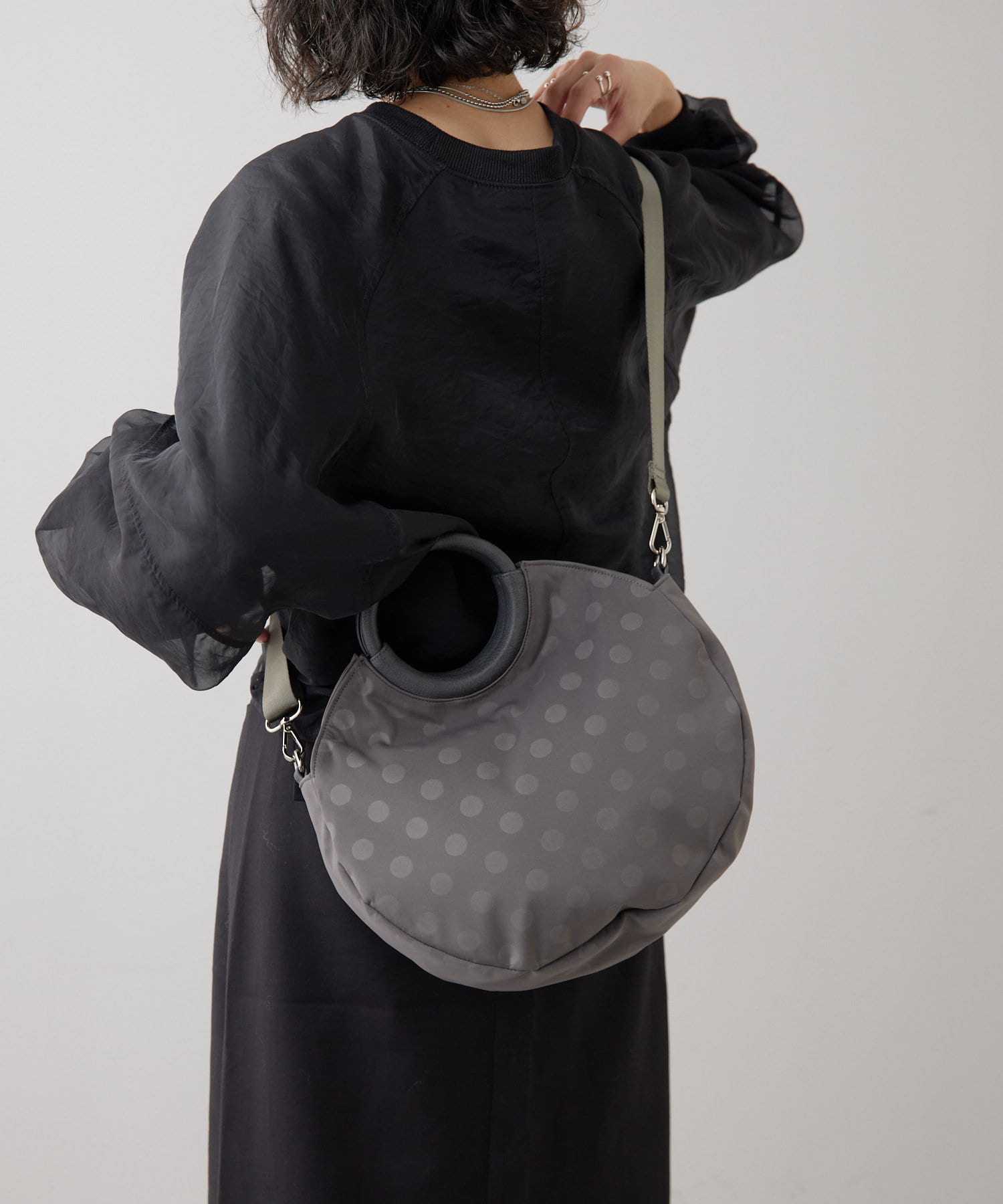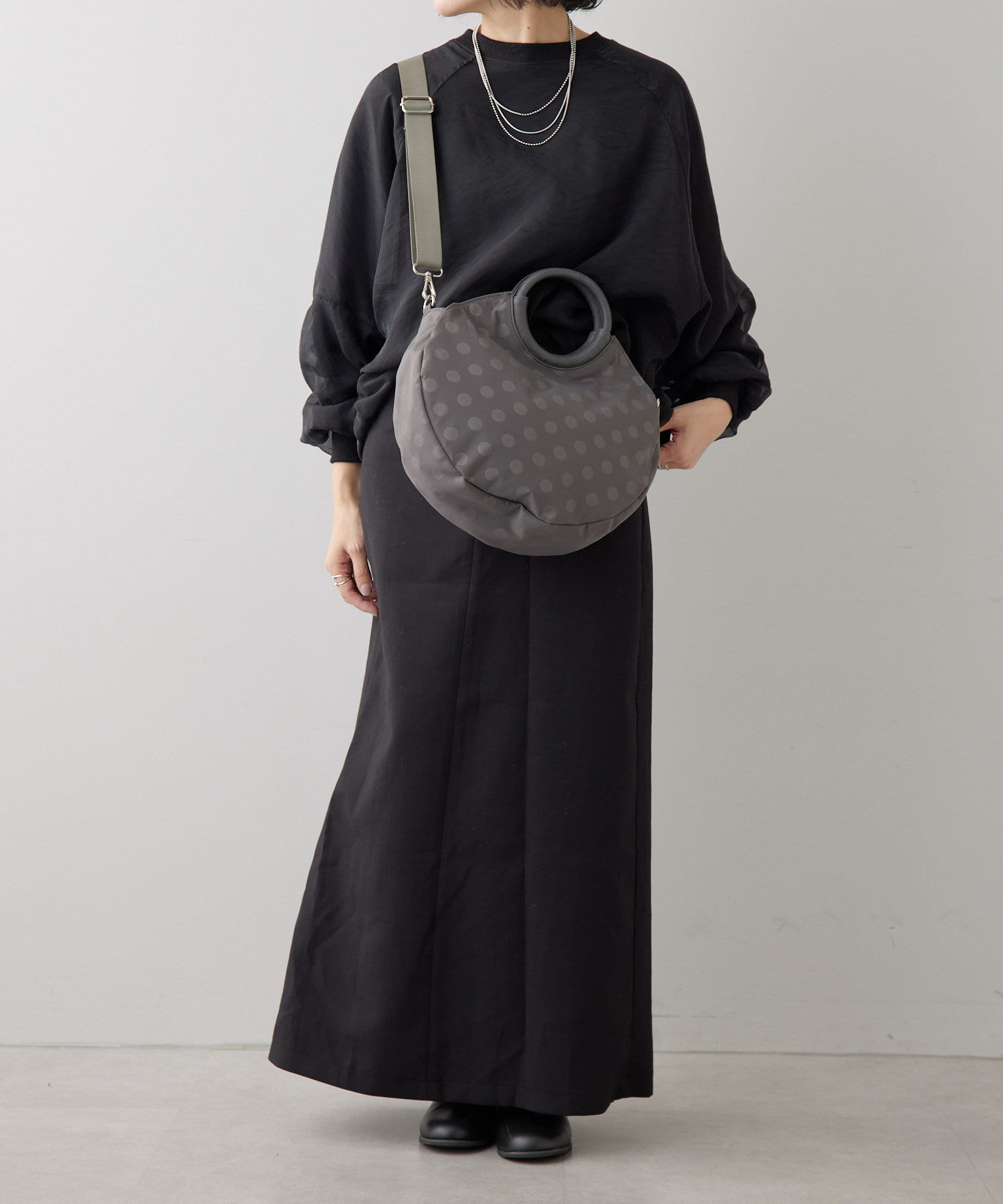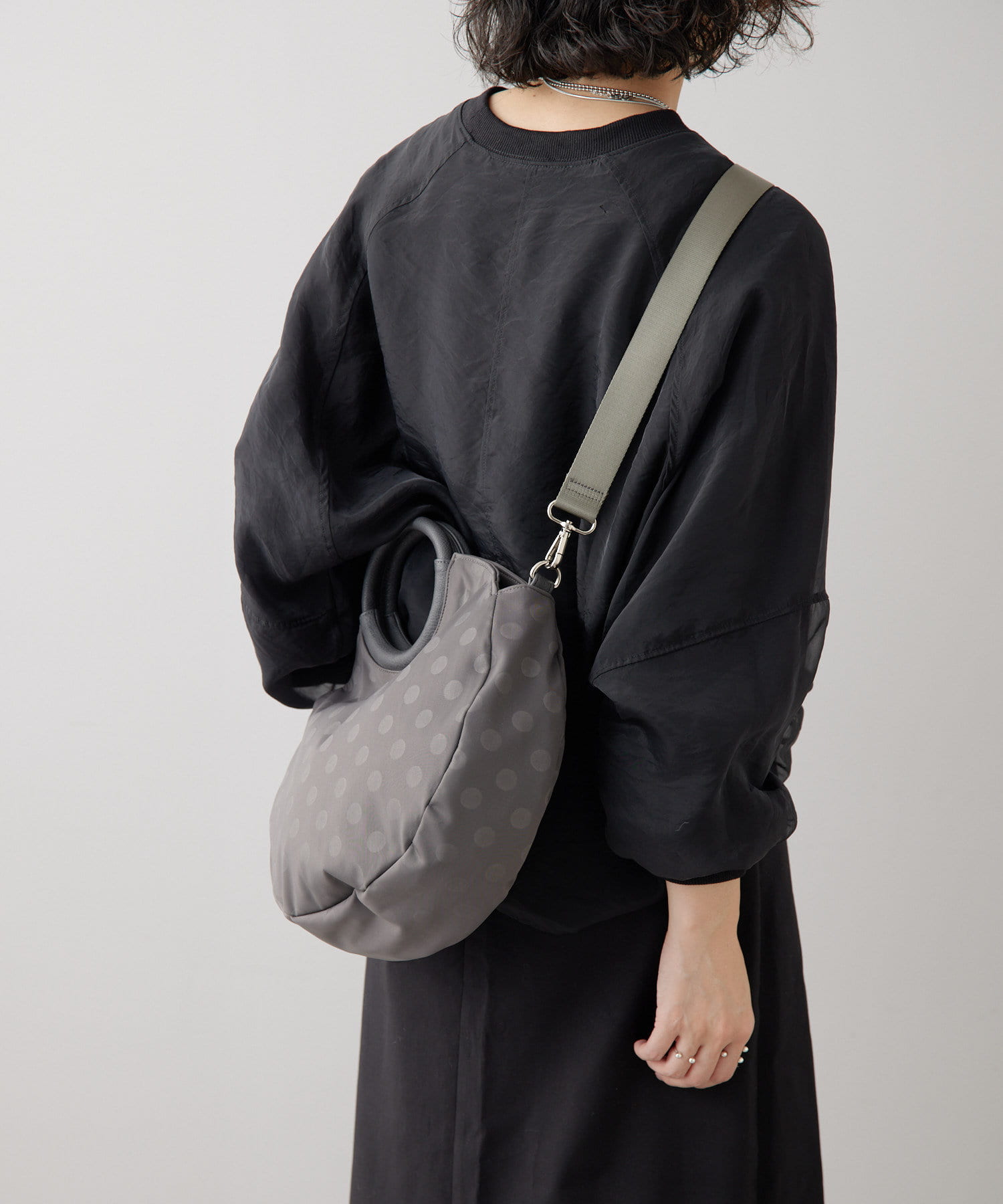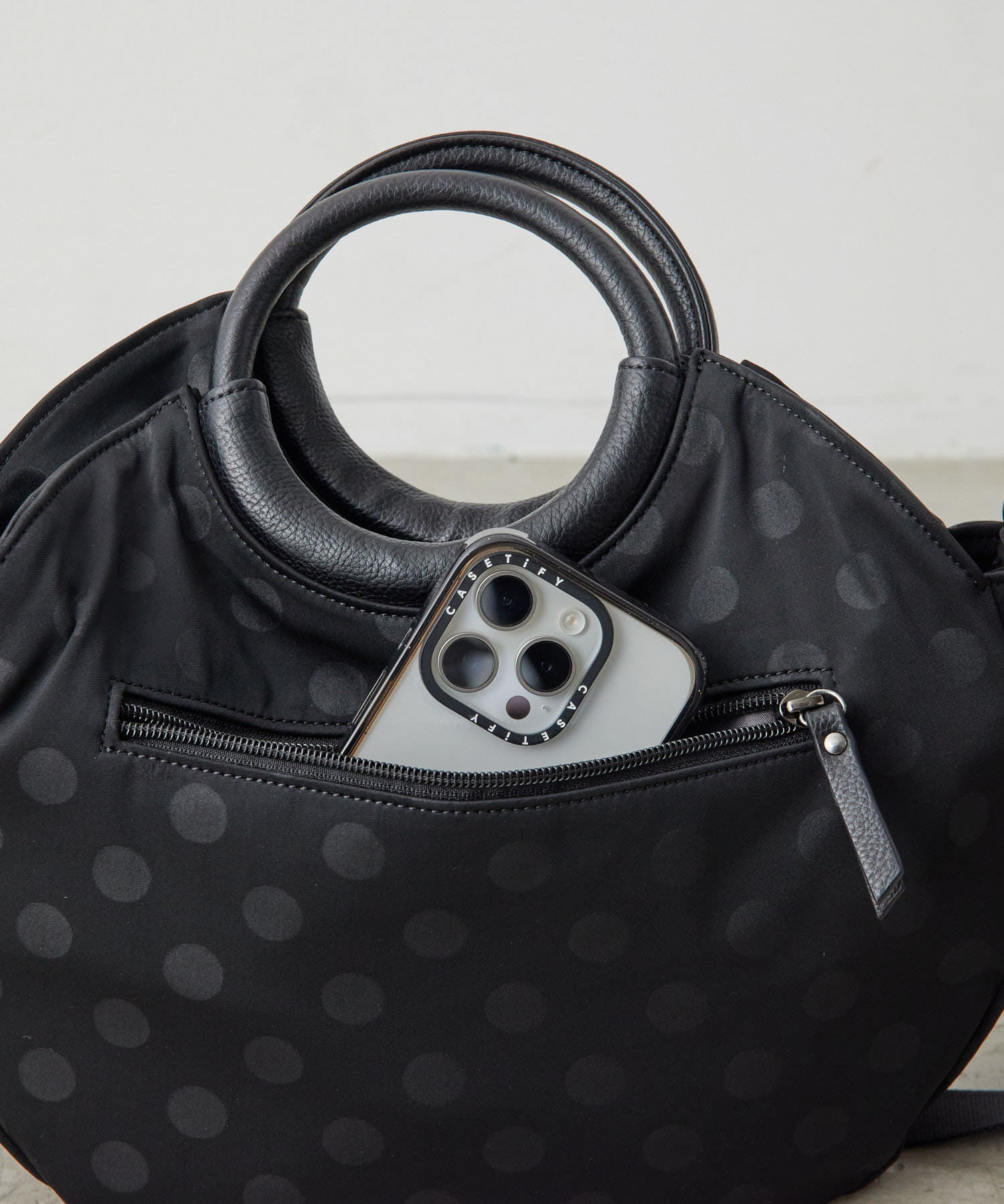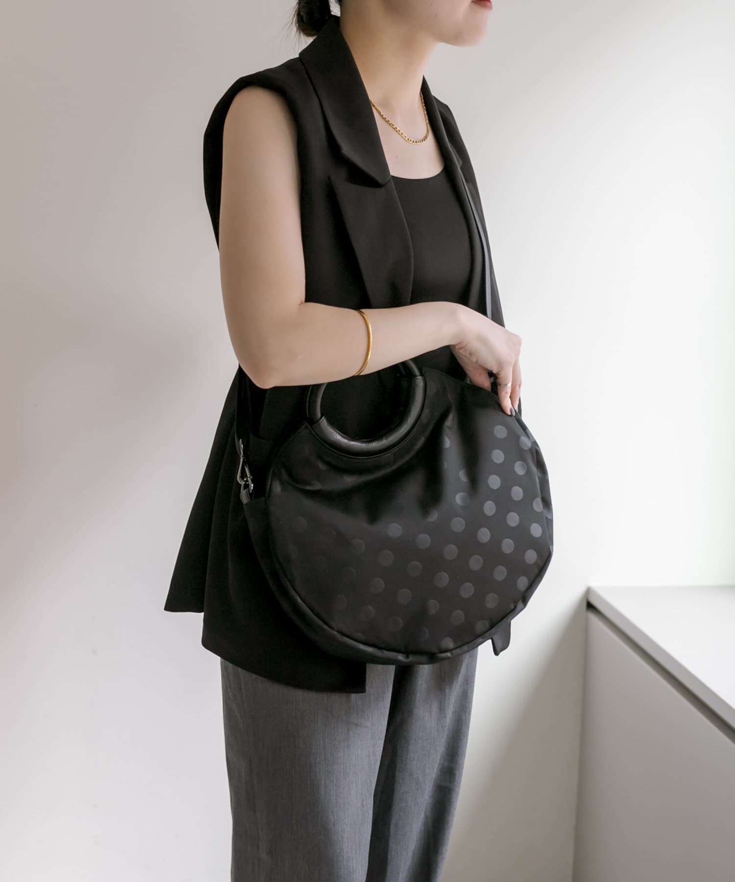・ブラックのドット柄で、モードからカジュアルまで幅広いテイストとの相性◎