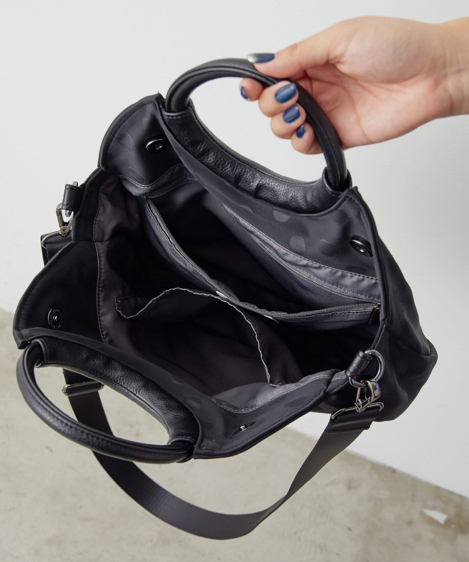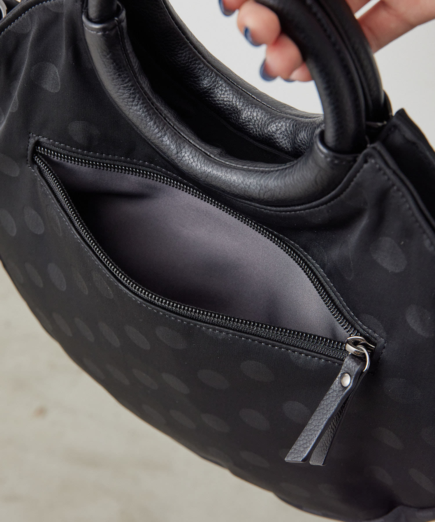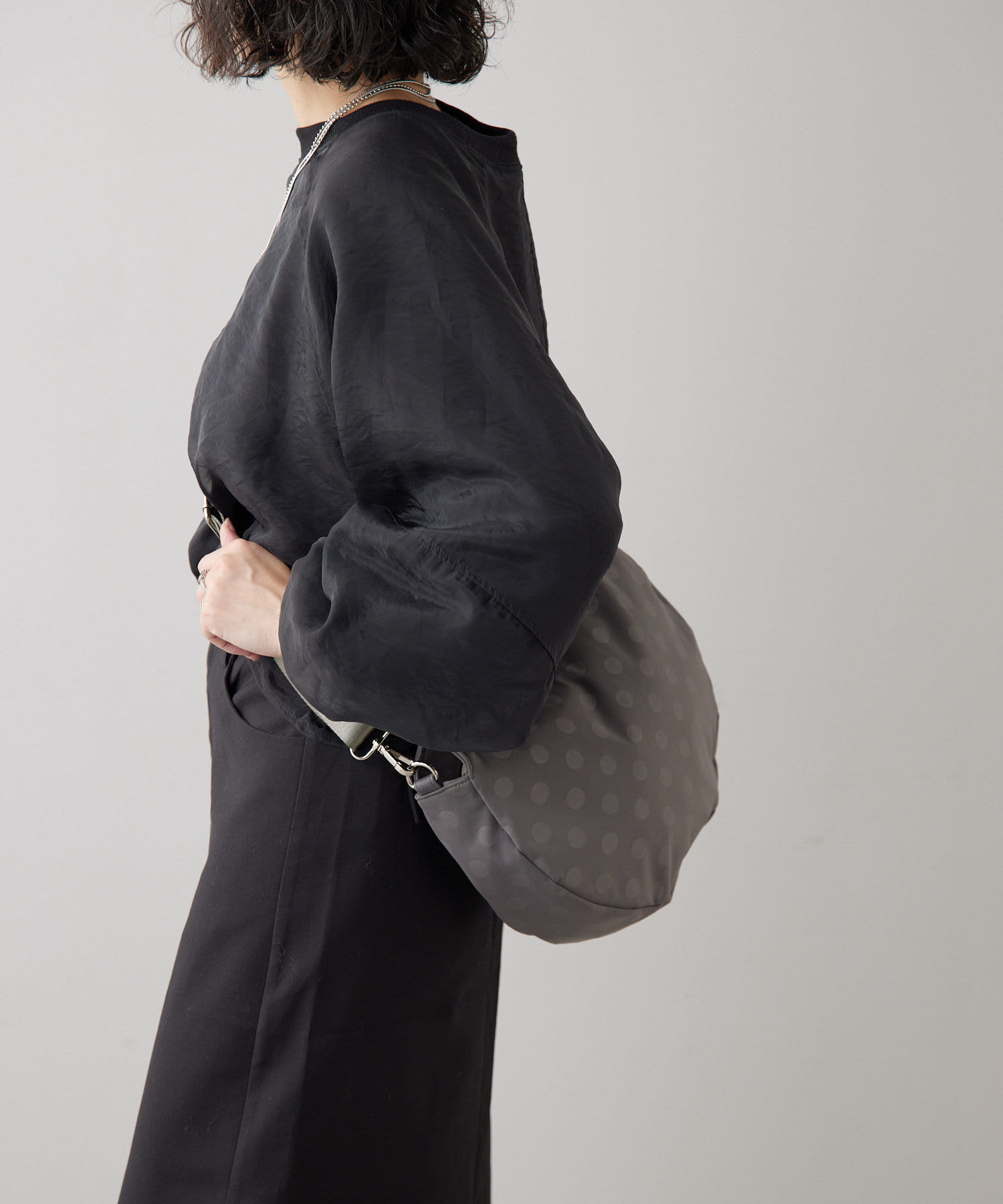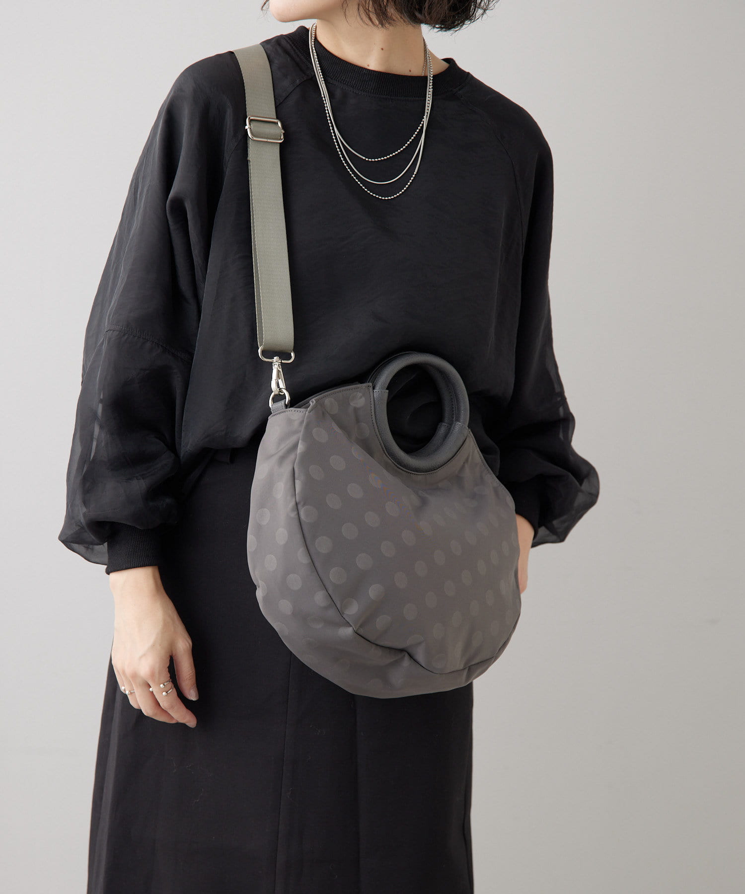 ・ブラックのドット柄で、モードからカジュアルまで幅広いテイストとの相性◎