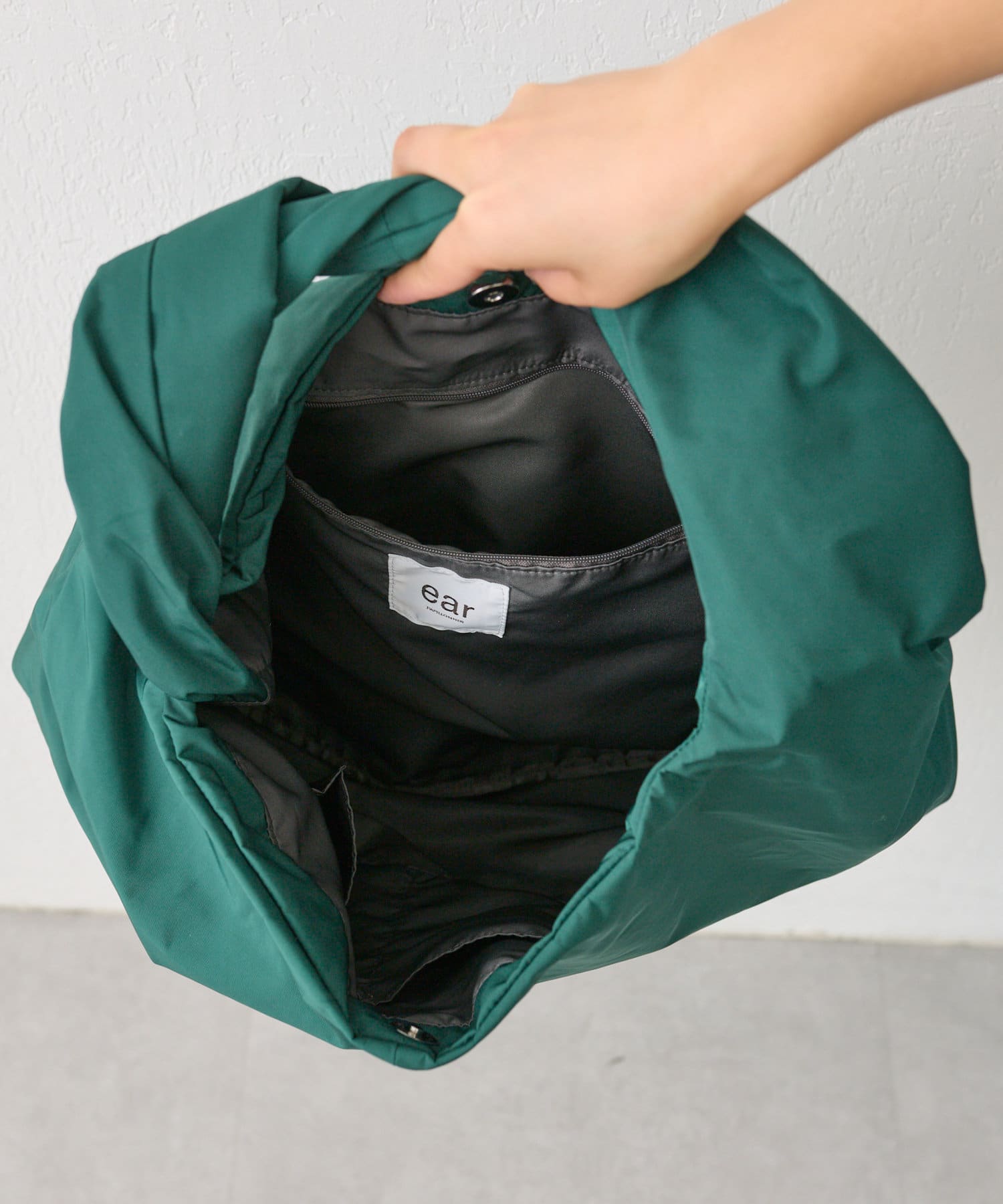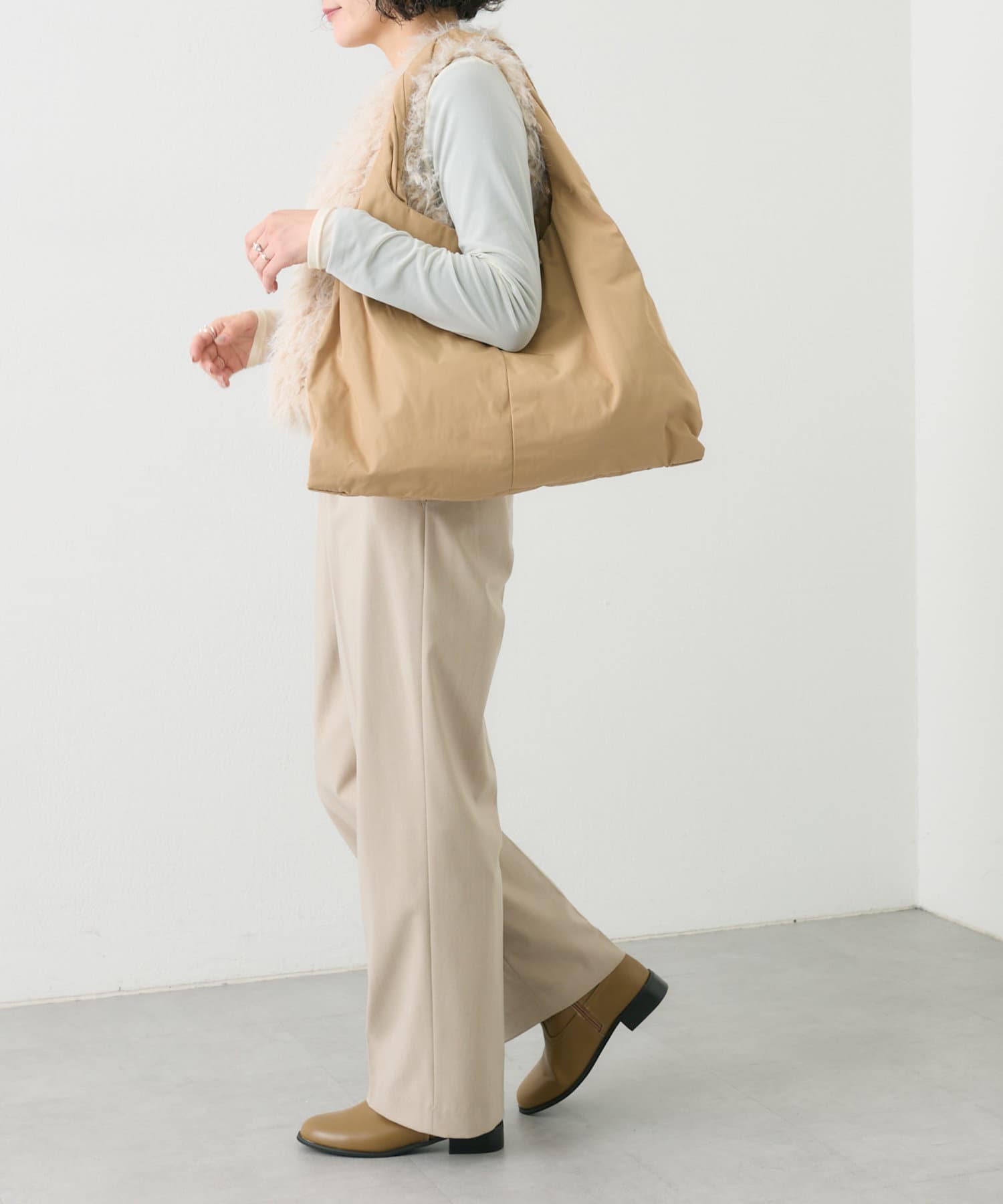 幅は広めですがマチは薄く、すっきりとしたフォルムで体への収まりがよく