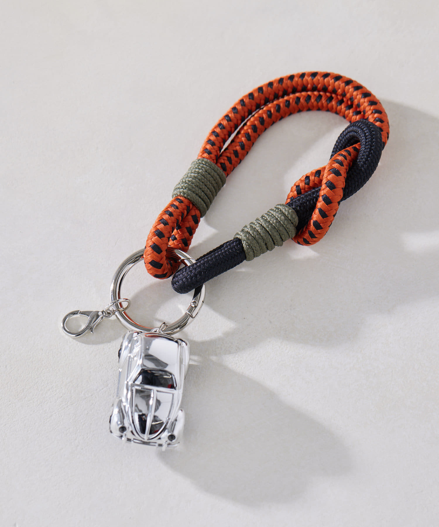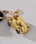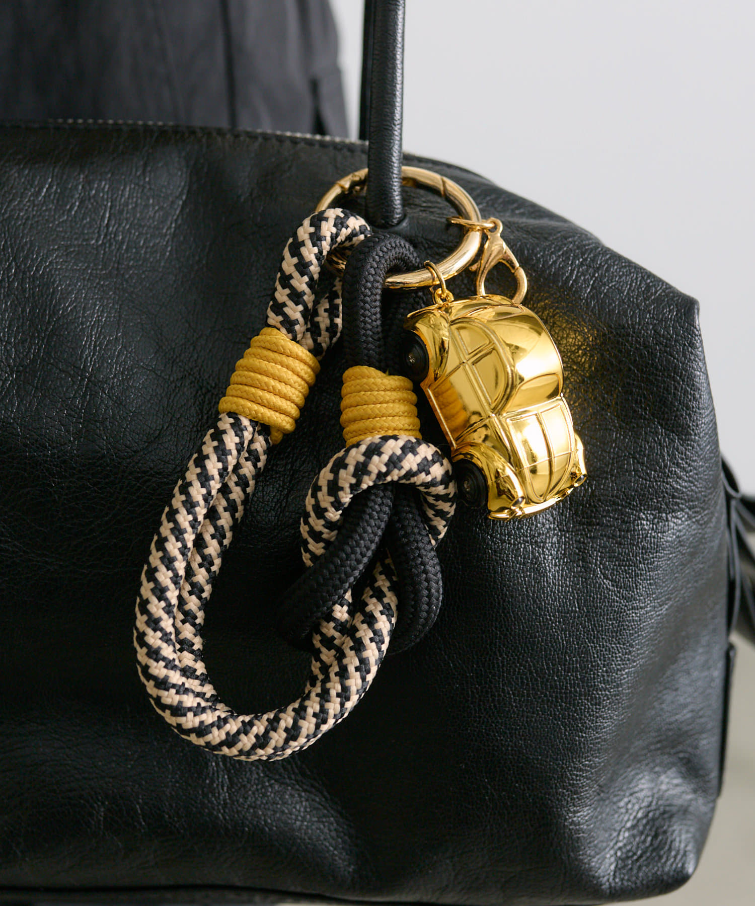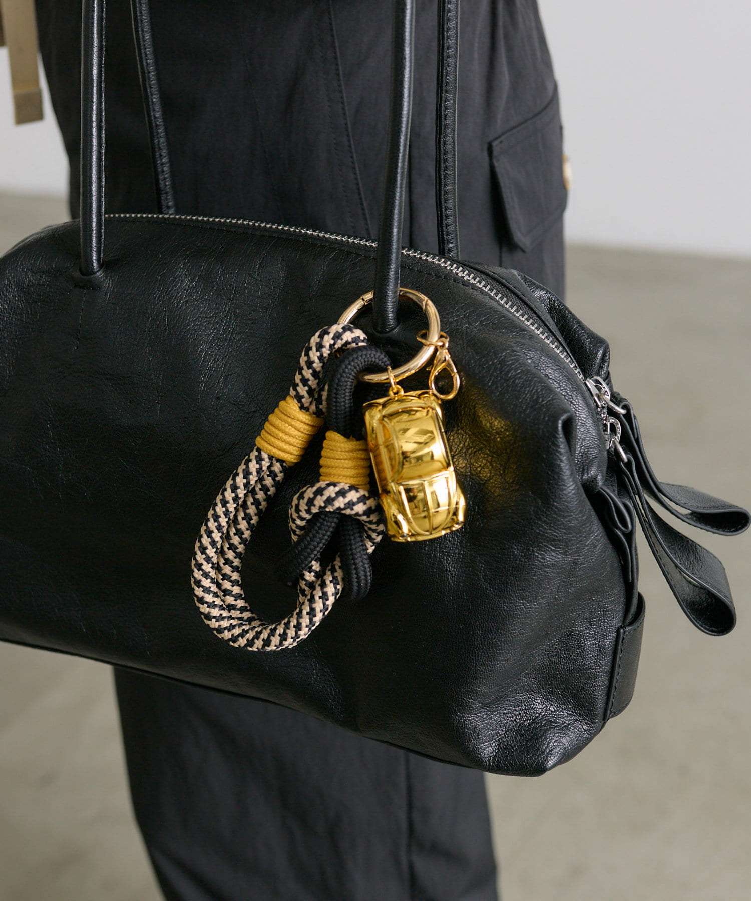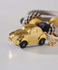 ・メタルカラーの車チャームと紐を組み合わせたデザイン