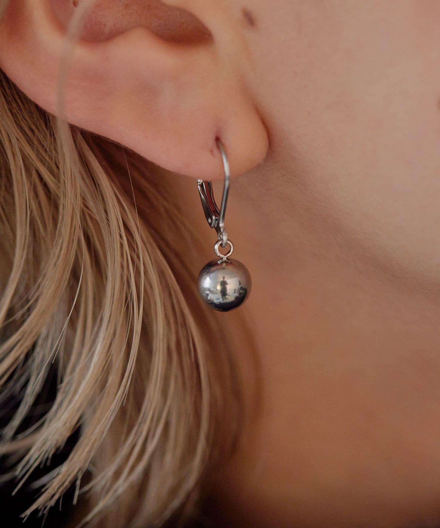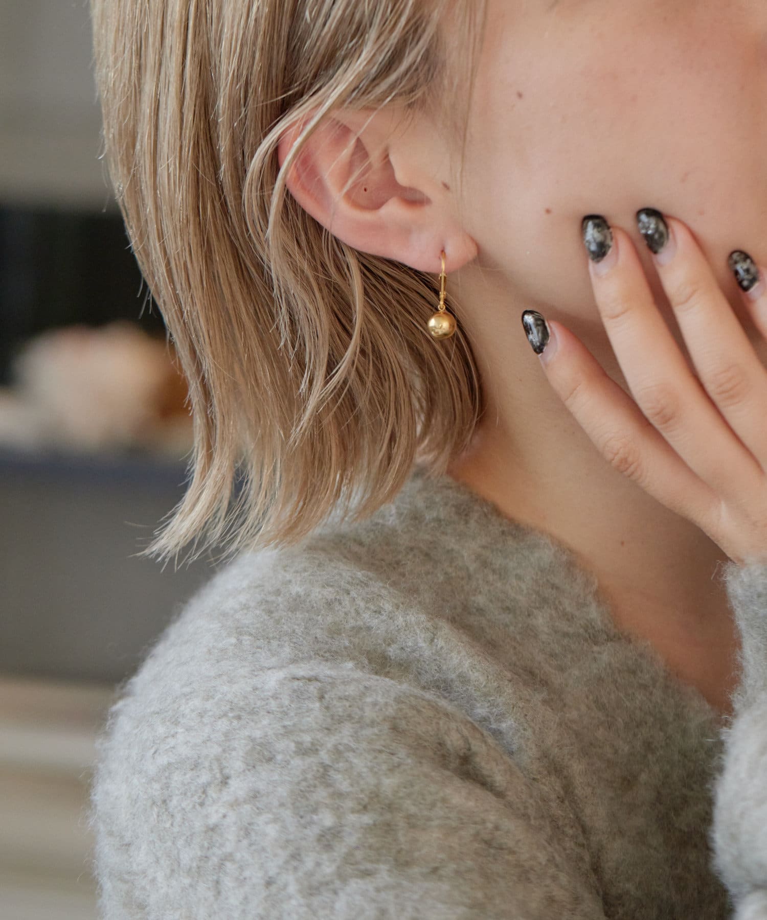 ・耳元で揺れるメタルボールがお顔周り艶めきをプラス