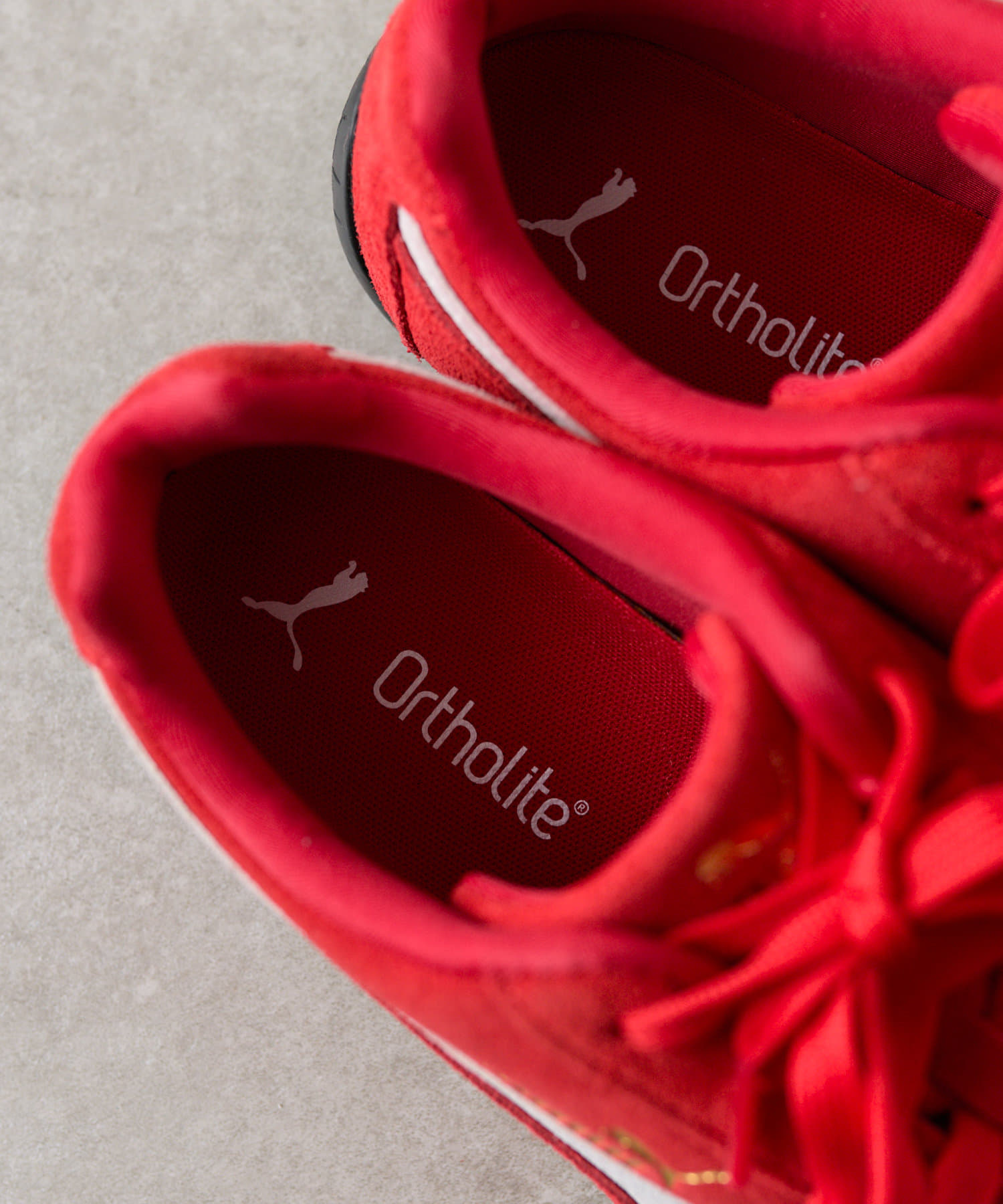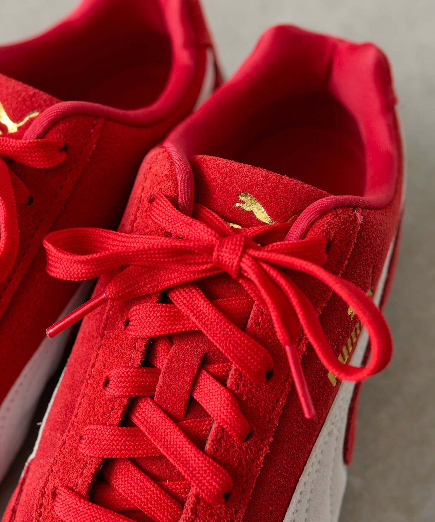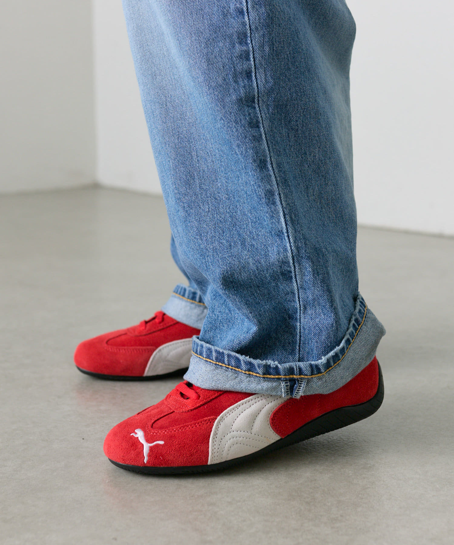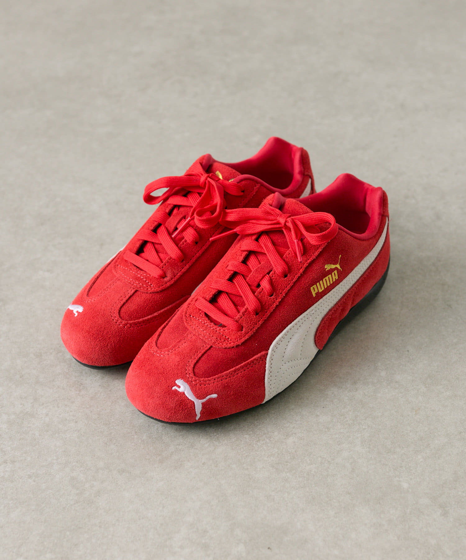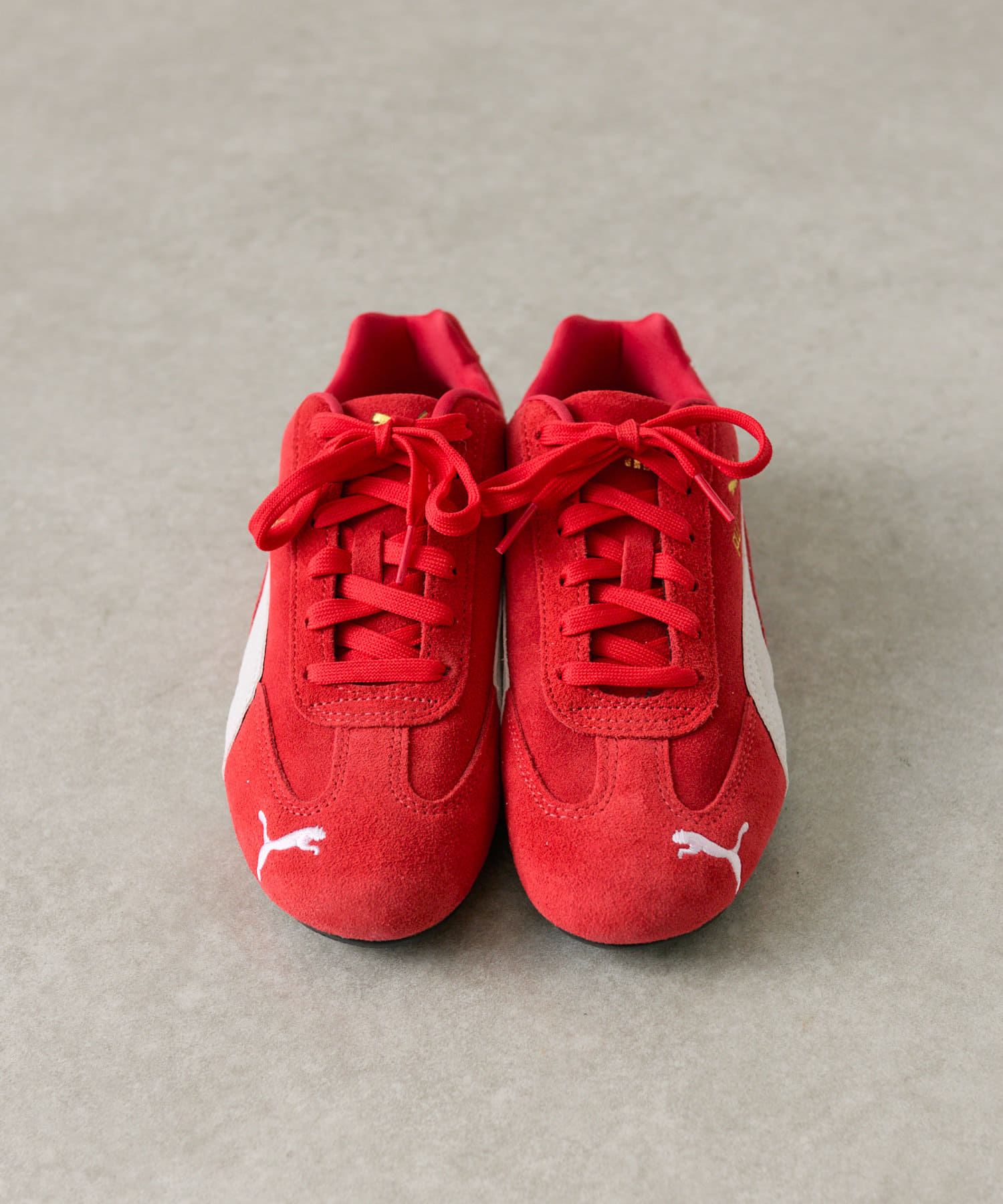 そのSPEEDCATが今再び柔らかいスエードと高級レザーを用い、オリジナルの赤と黒のカラーウェイ、つま先の PUMA キャットロゴを備えて登場します。
