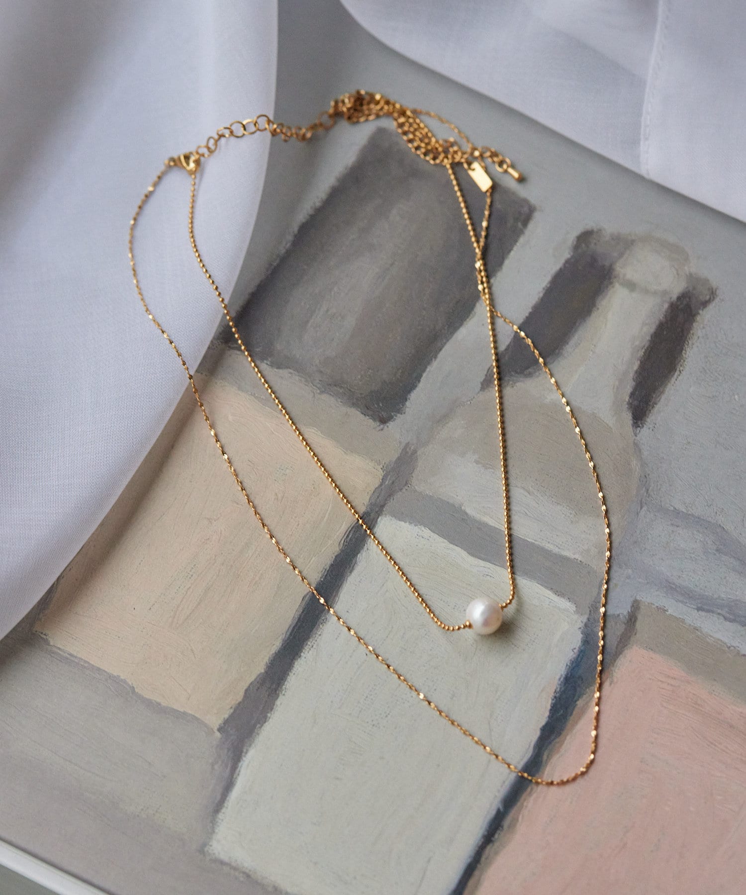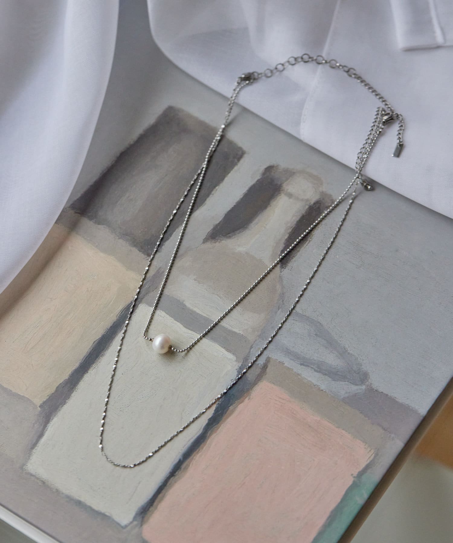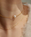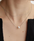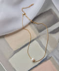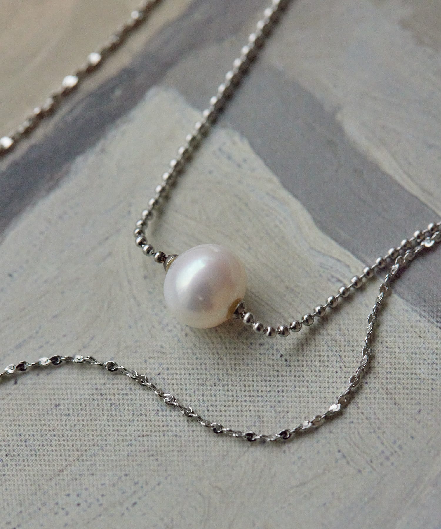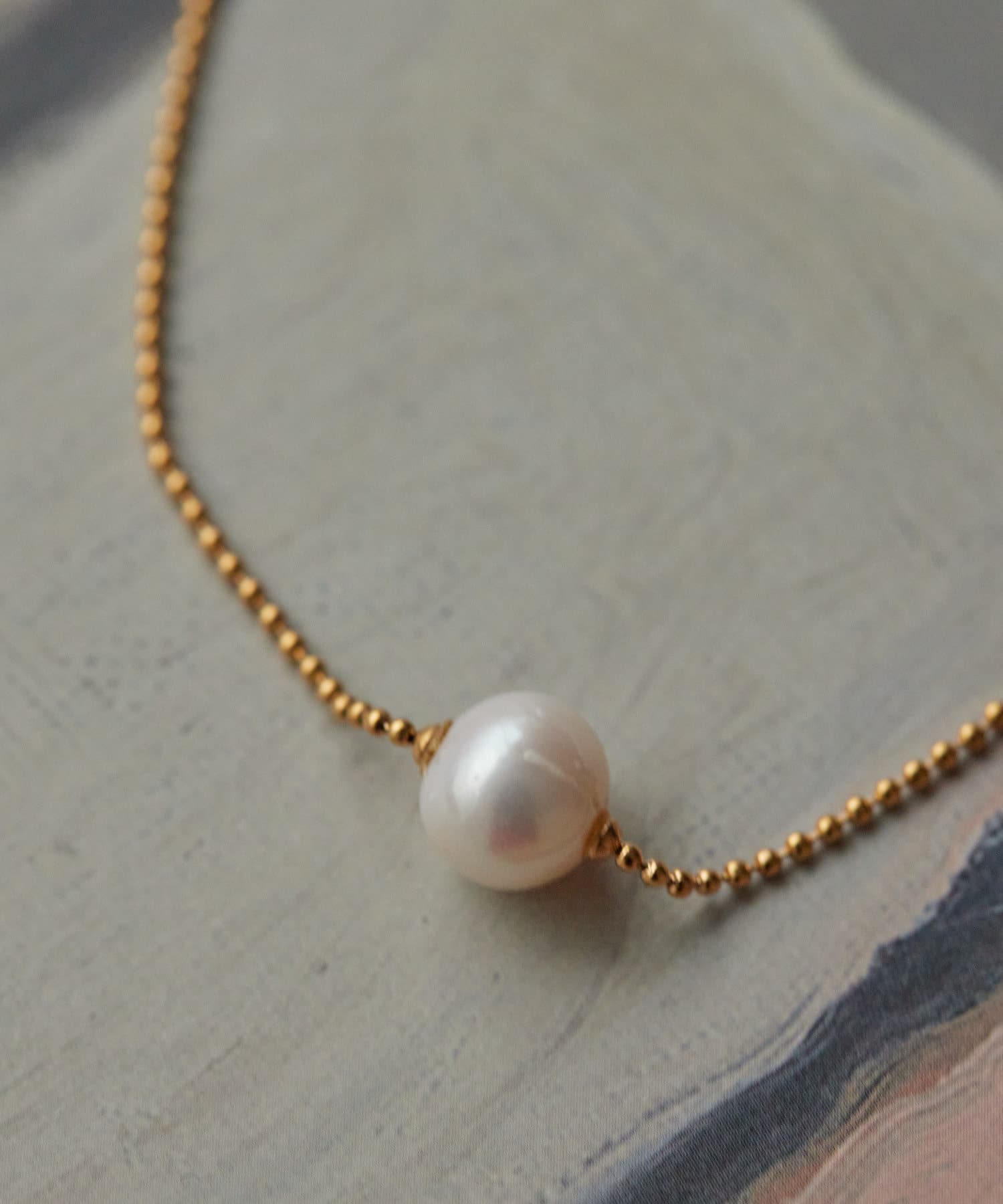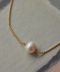 ボールチェーンに一粒の淡水パールを合わせたネックレスと