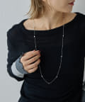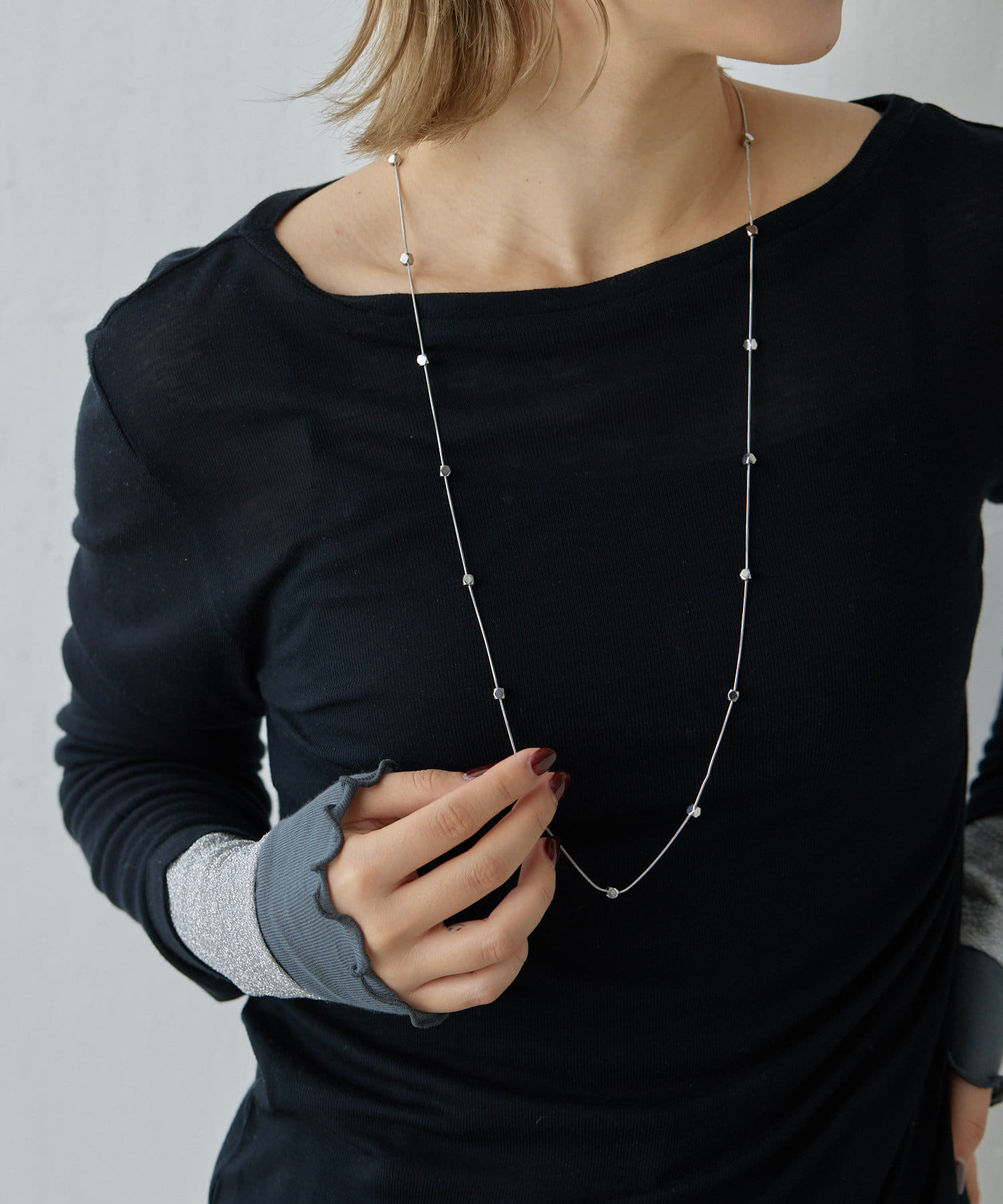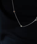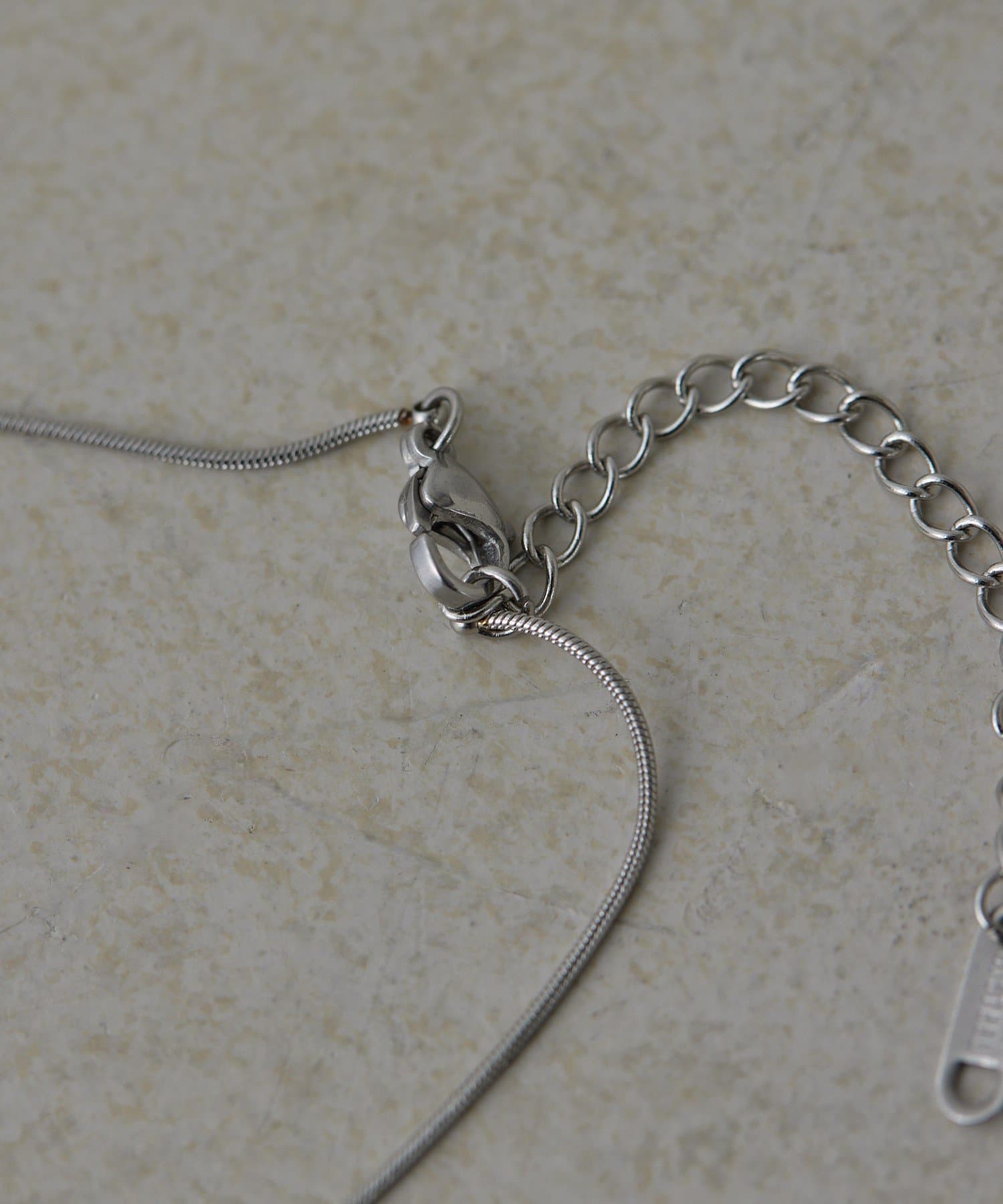 滑らかな輝きをみせるスネークチェーンと組み合わせることで