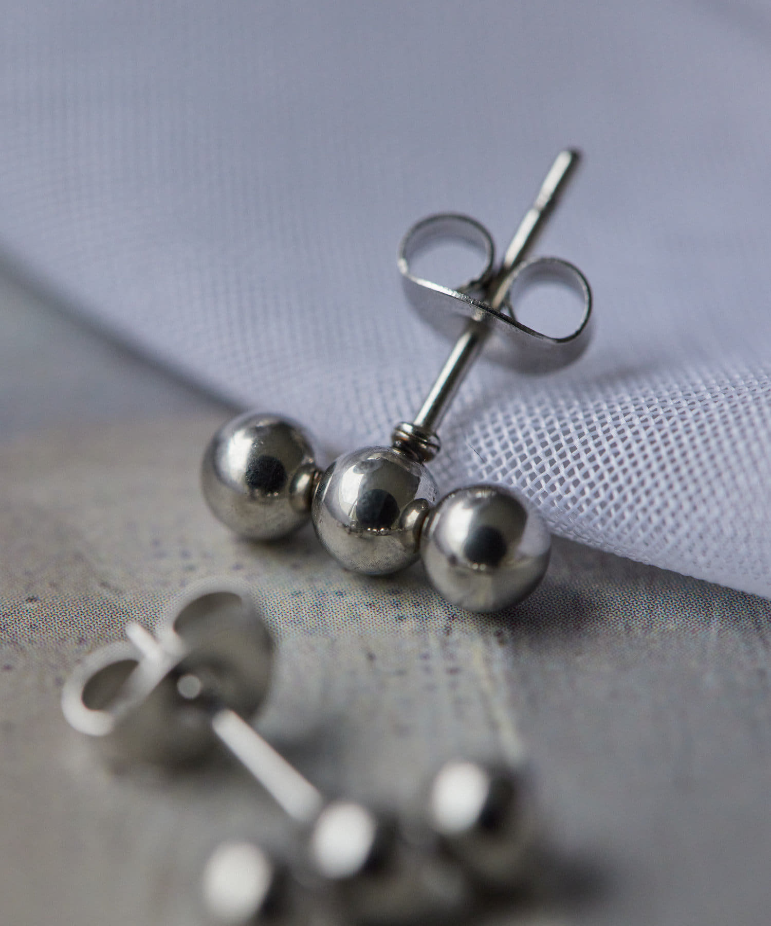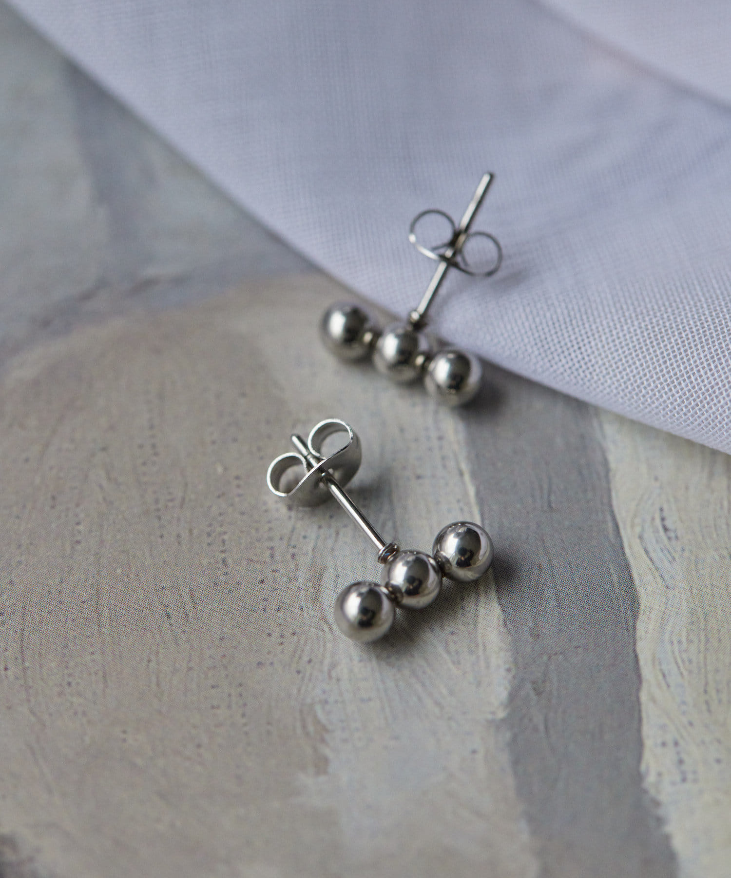 艶やかなメタルボールが3つ並んだデザインのピアス。